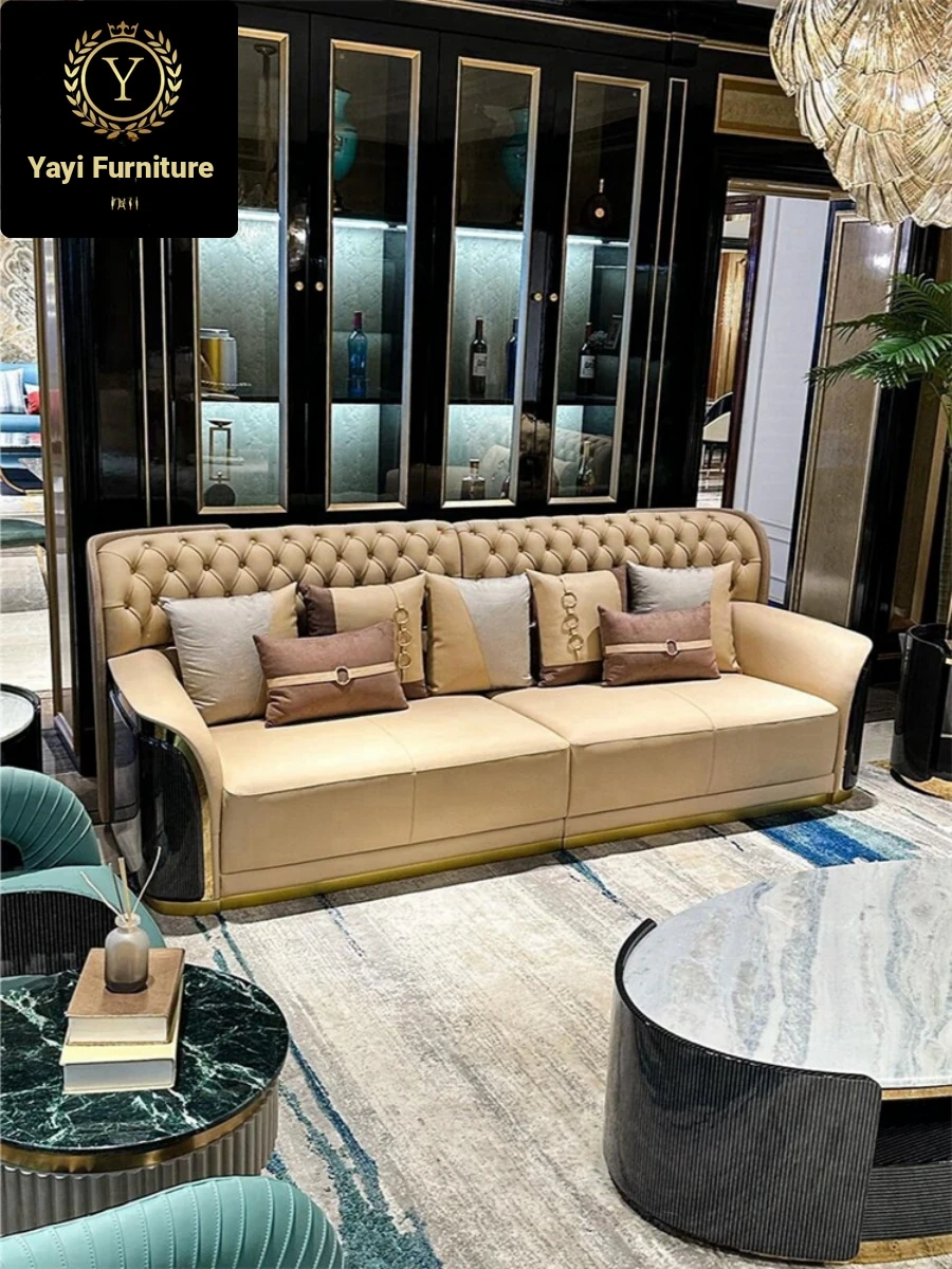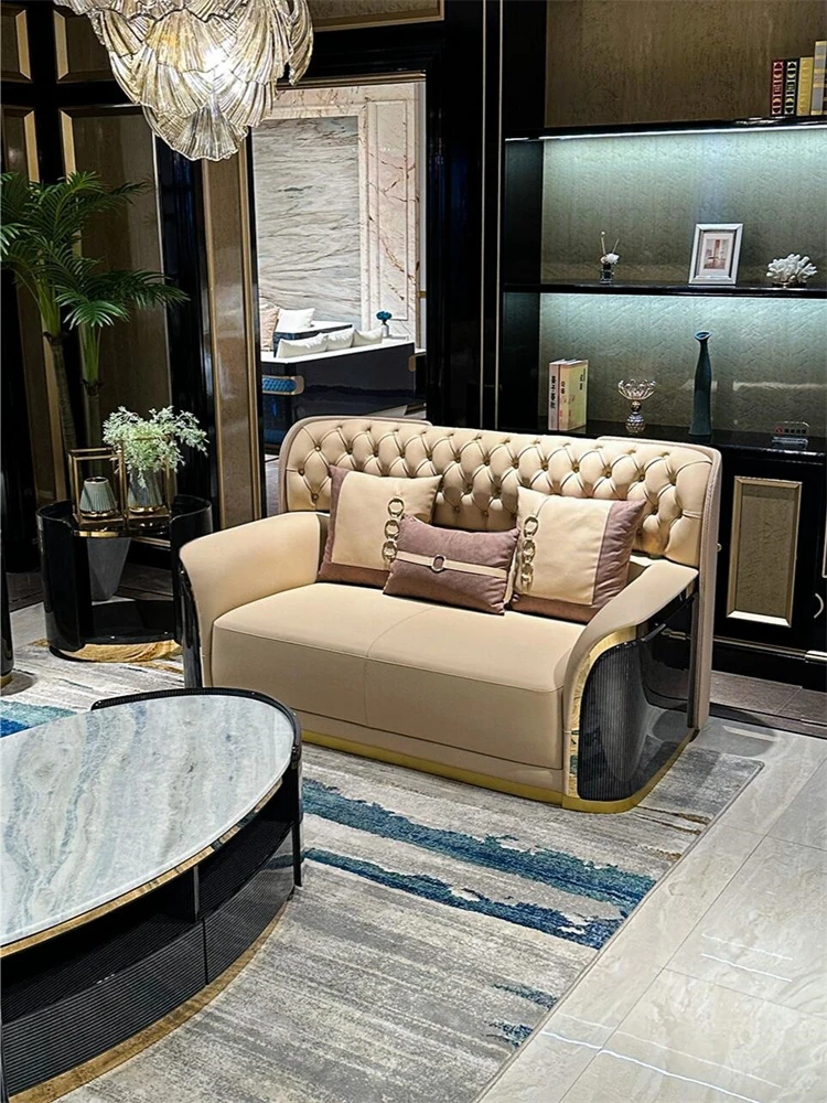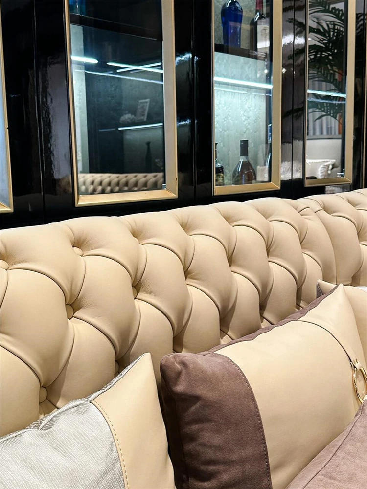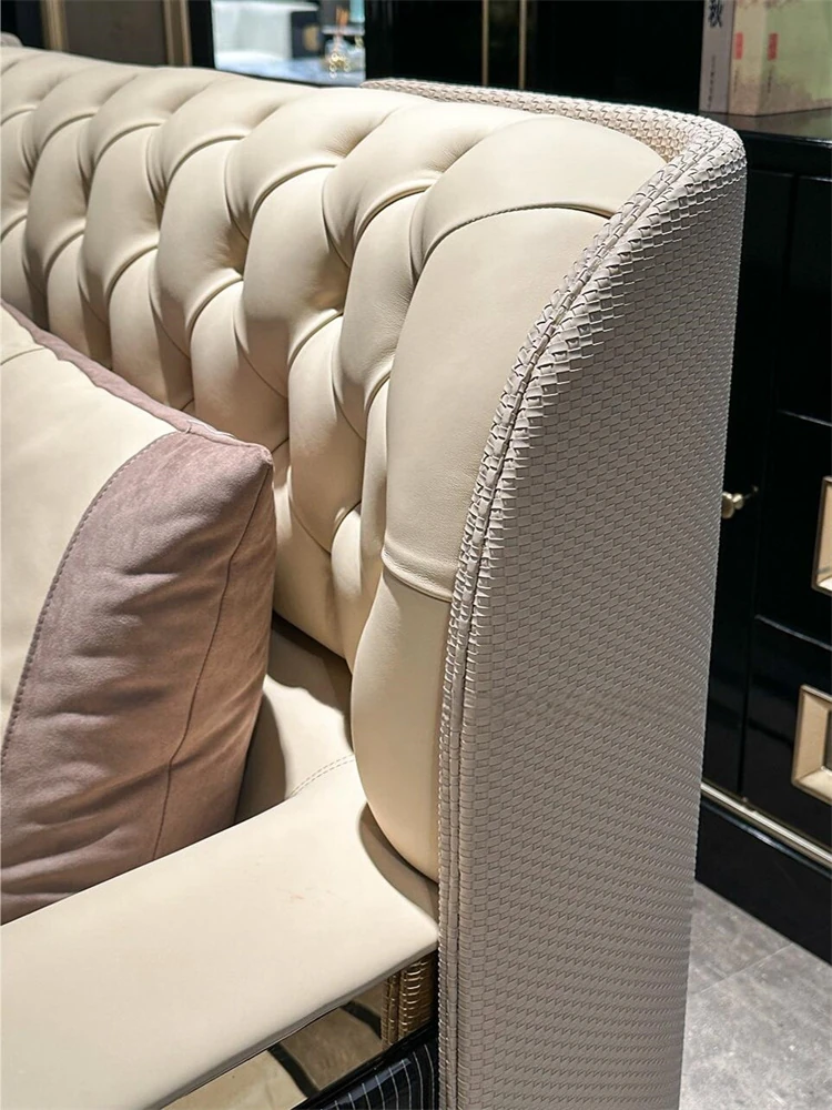 Italian Luxury High-Back Genuine Leather Sofa Set - Modern Design for Villas and Apartments, Exquisite Bentley-Inspired Comfort and Elegance