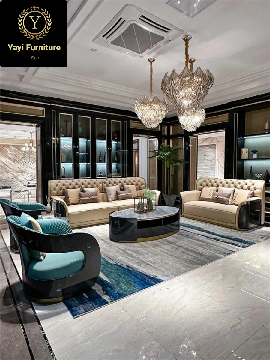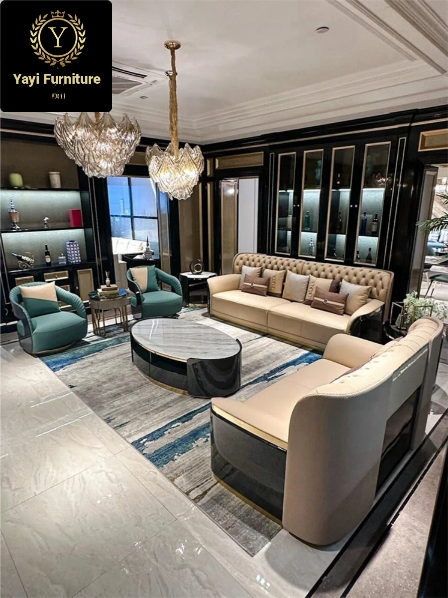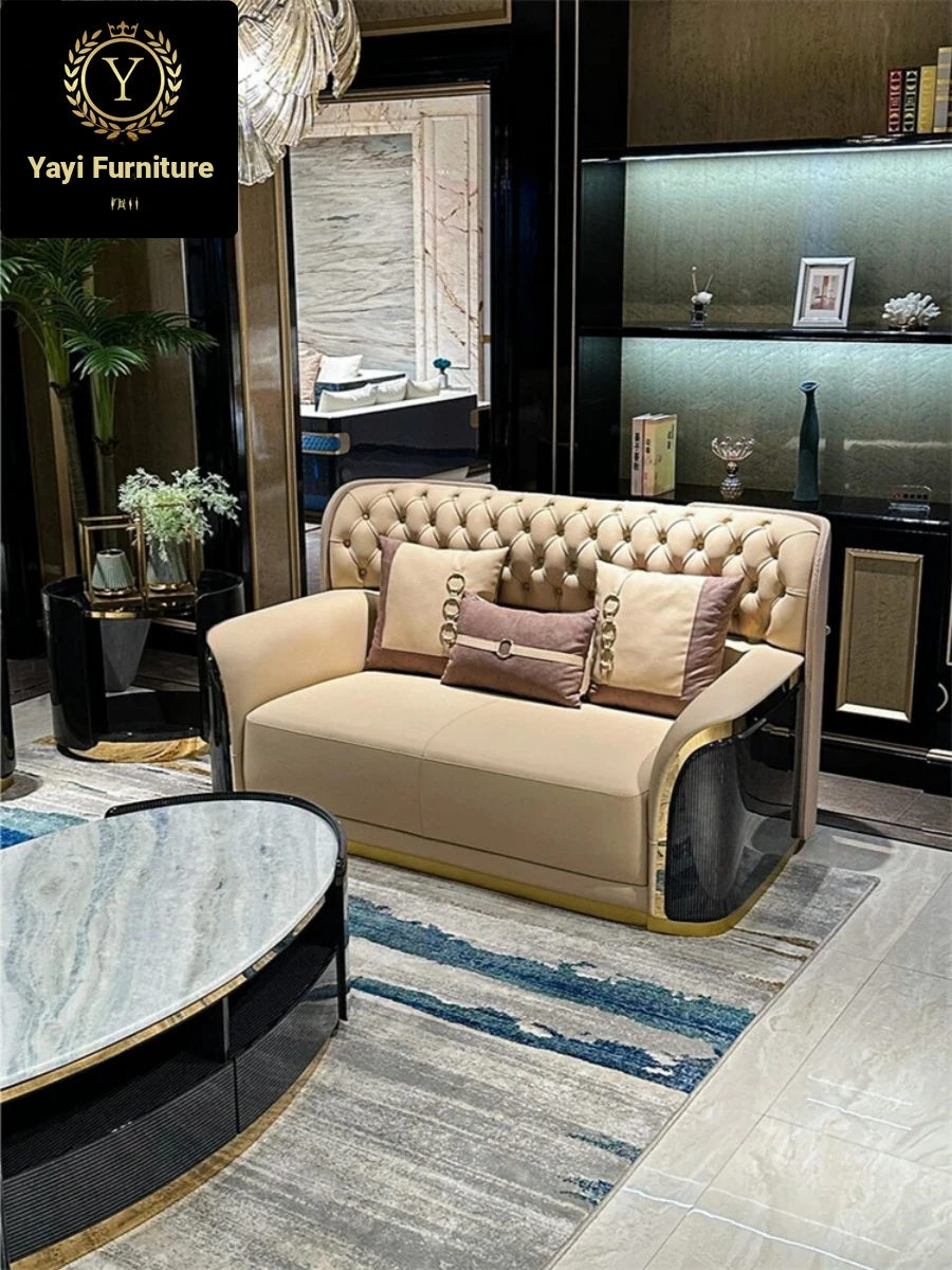 Italian Luxury High-Back Genuine Leather Sofa Set - Modern Design for Villas and Apartments, Exquisite Bentley-Inspired Comfort and Elegance