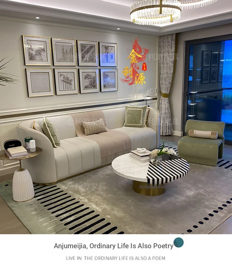 Italian Luxury Living Room Sofa Set with Round Coffee Table - Creative Nordic Designer Folding Curved Lounge Chairs for a Stylish Touch