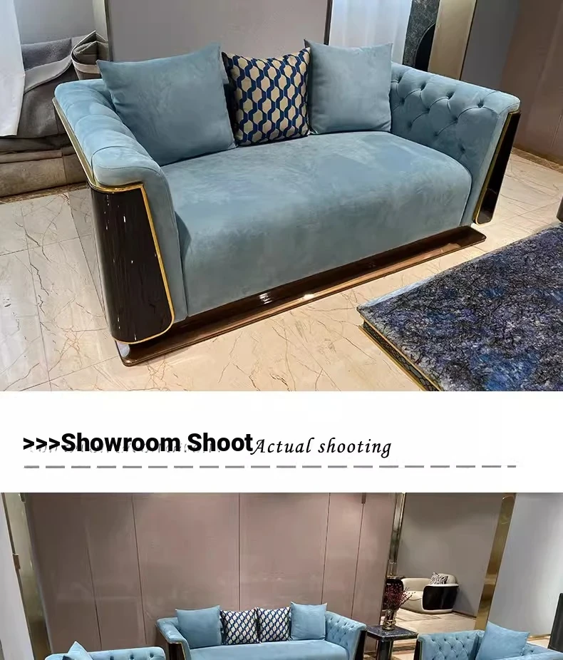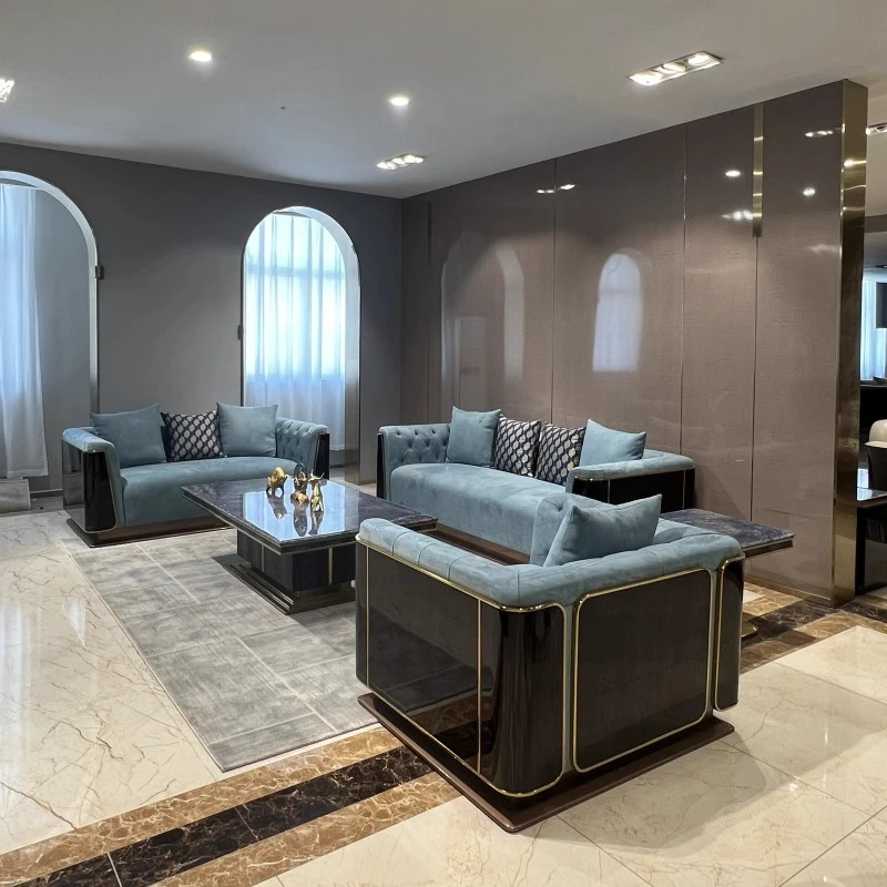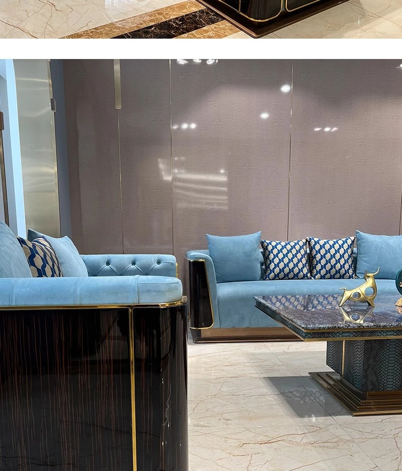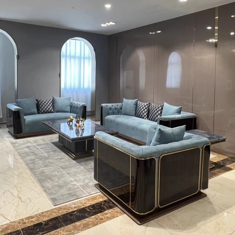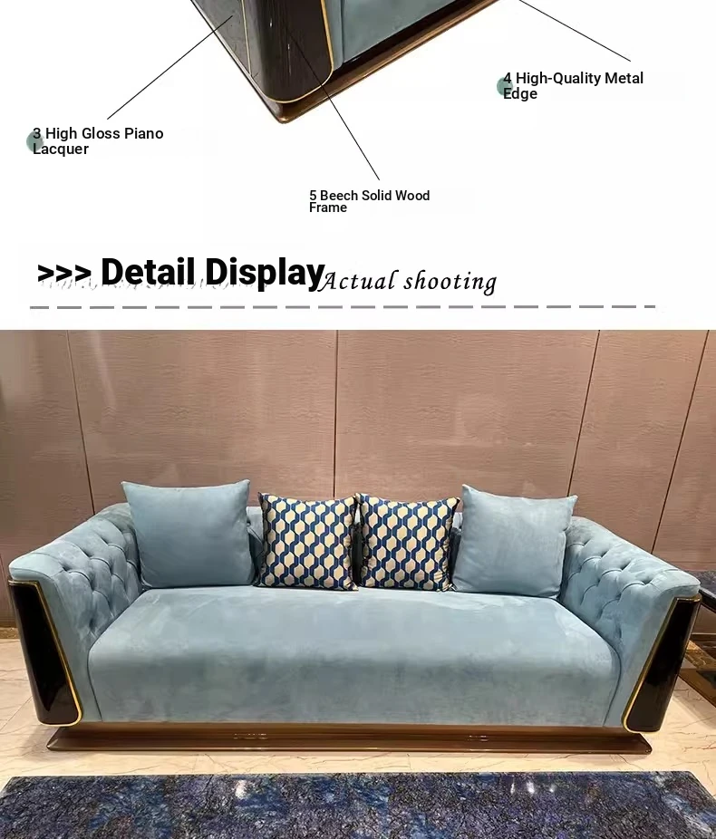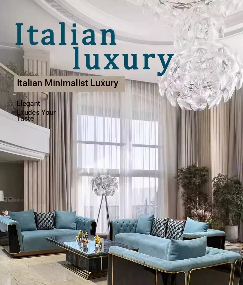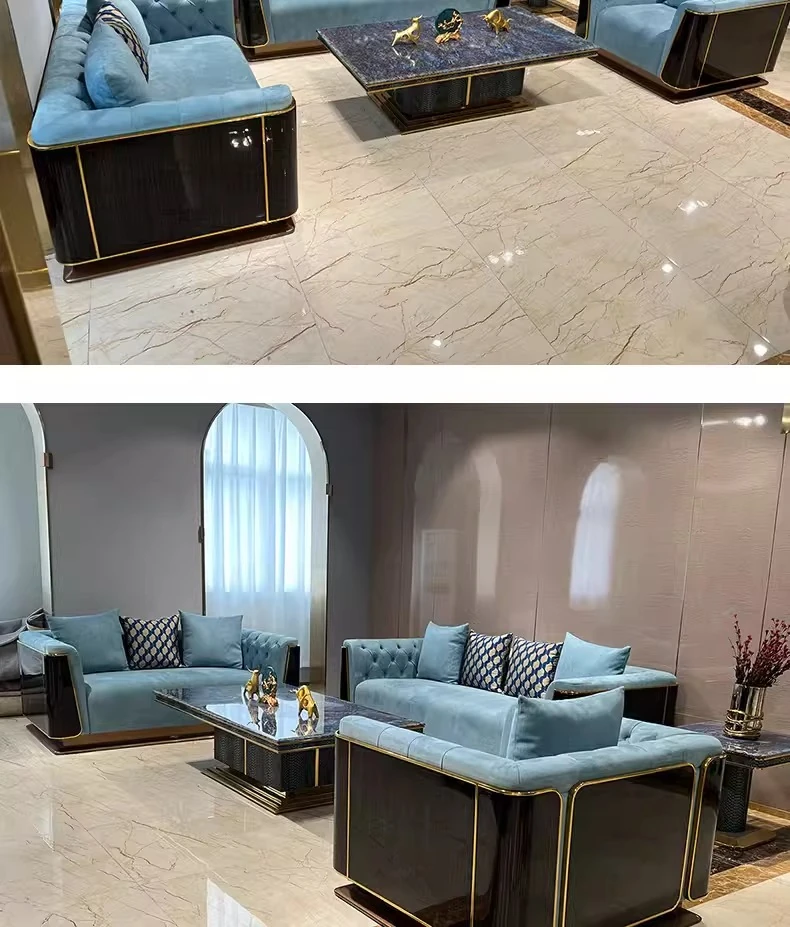 Italian Luxury Velvet Leather Sofa Set - Modern High-End Living Room Furniture for Spacious Villas and Large Homes - Stylish and Elegant Design by Basha Furniture