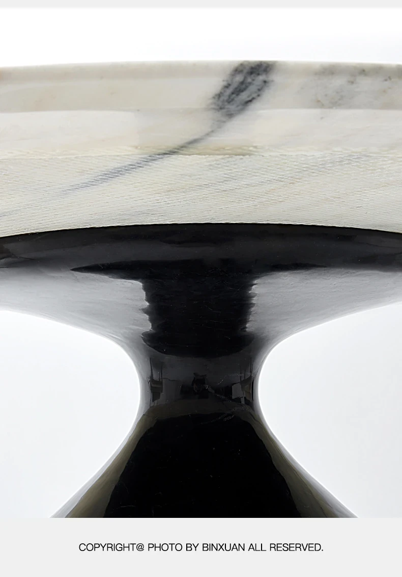 Italian Minimalist Fuji White Natural Marble Dining Table - Designer Villa Creative Rock Castle Water Drop Table Set