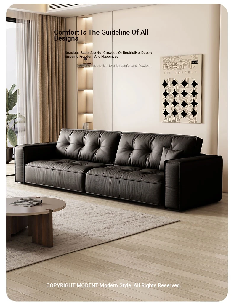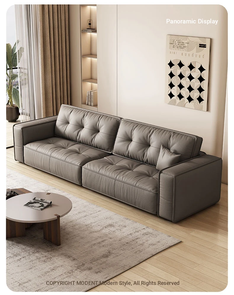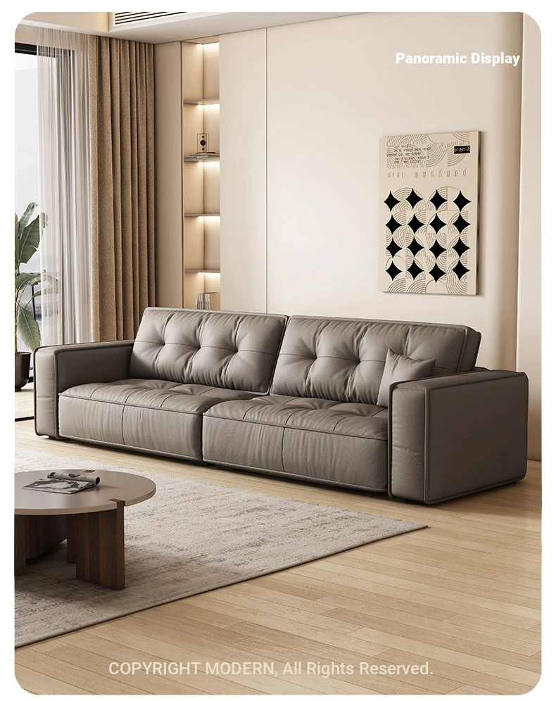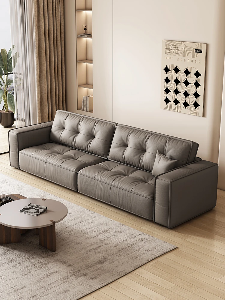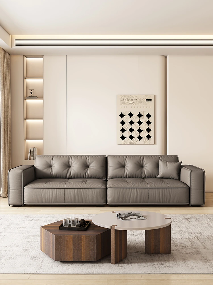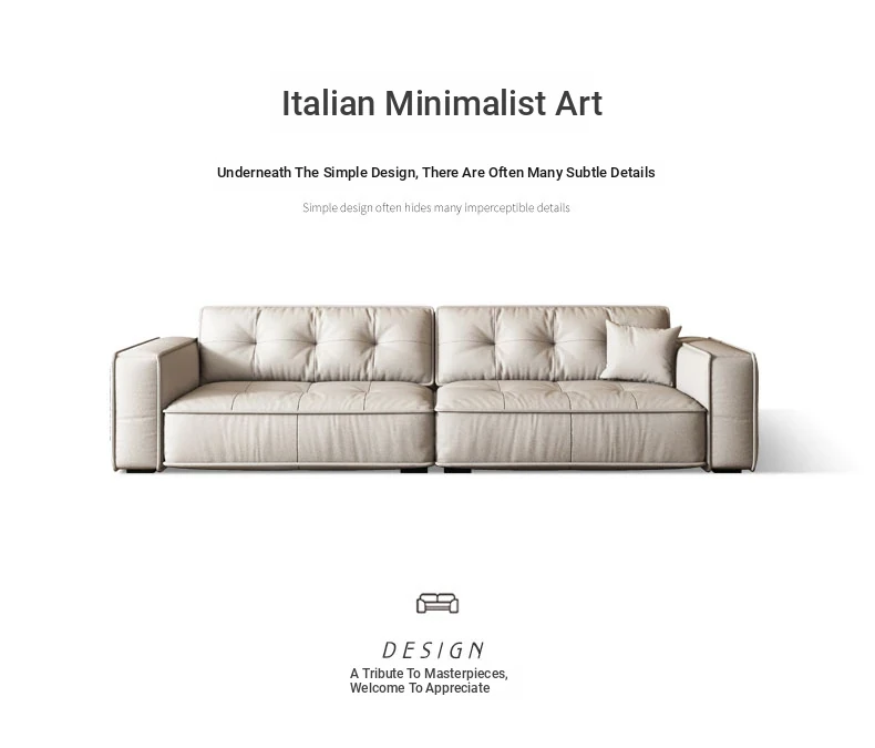 Italian Minimalist Genuine Leather Sofa - Modern Designer Living Room Couch with Unique Block Design, Perfect for Stylish Spaces.