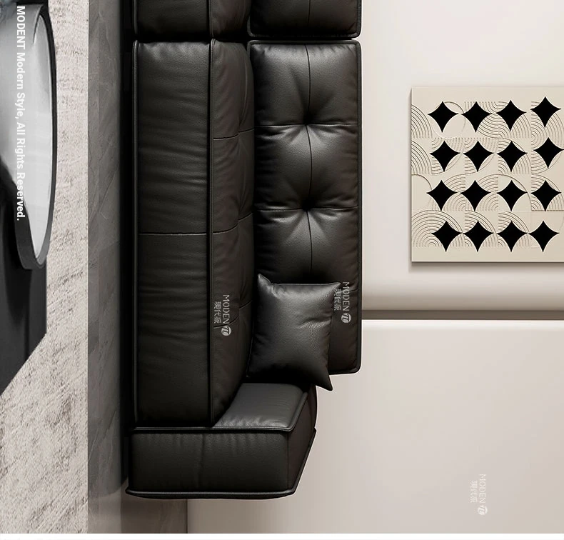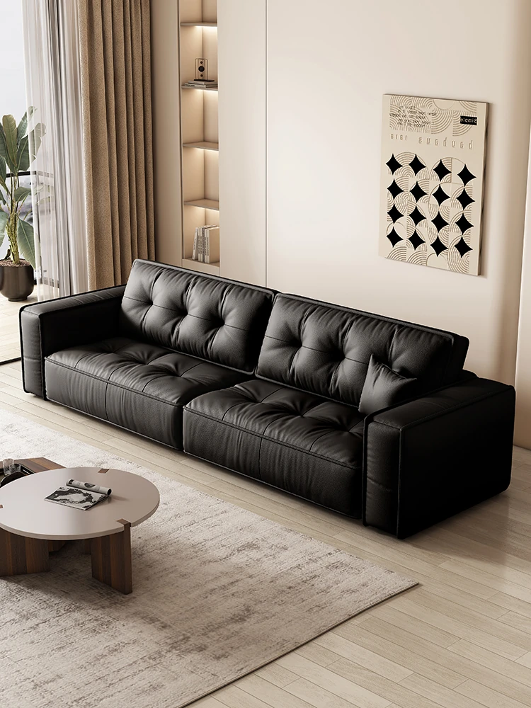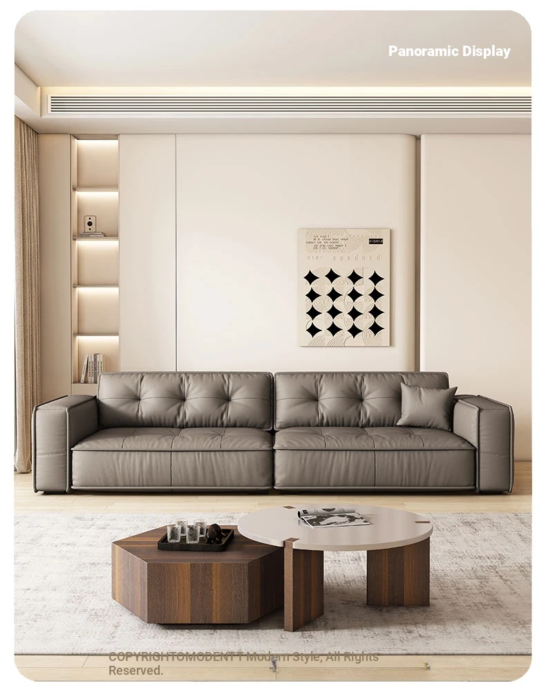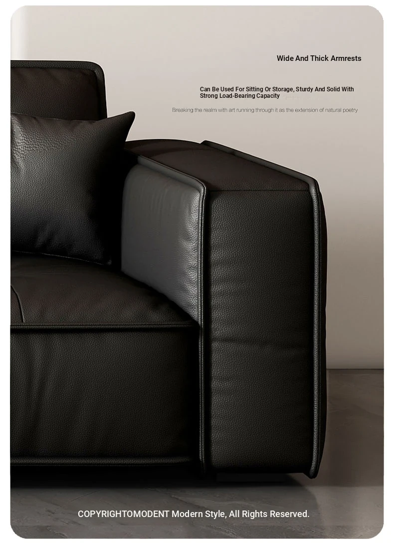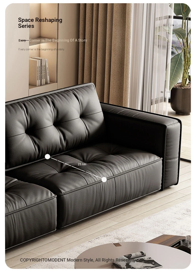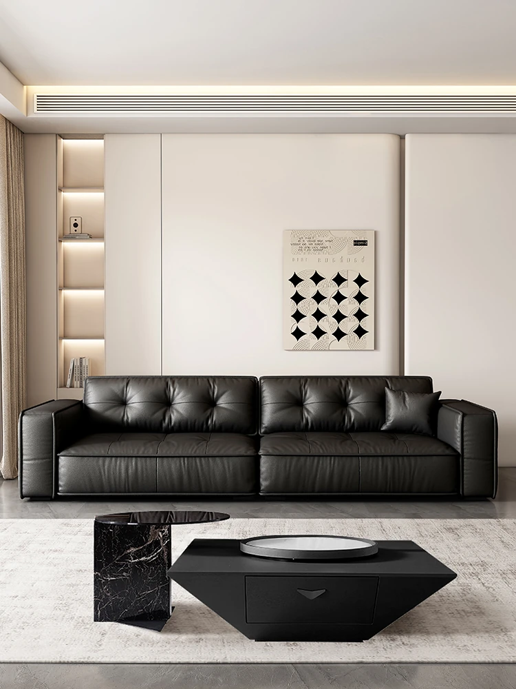 Italian Minimalist Genuine Leather Sofa - Modern Designer Living Room Couch with Unique Block Design, Perfect for Stylish Spaces.