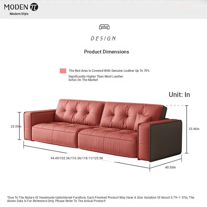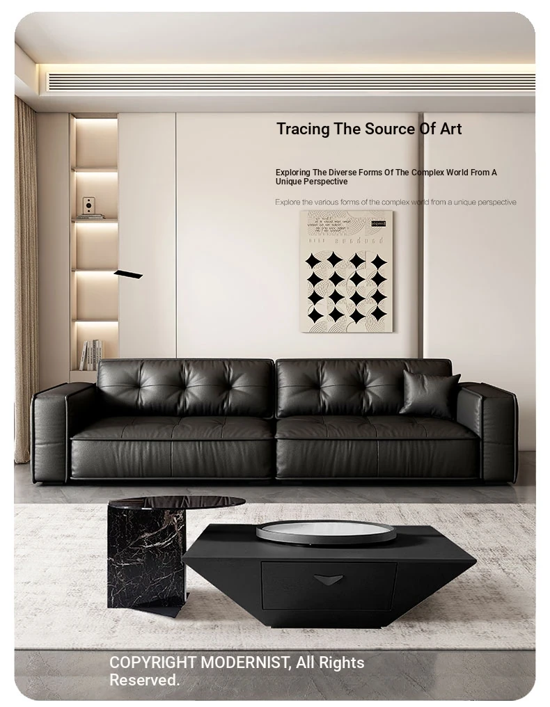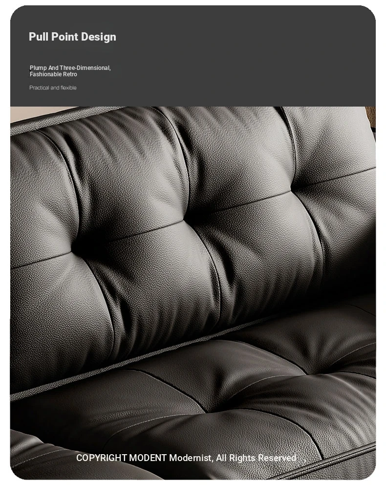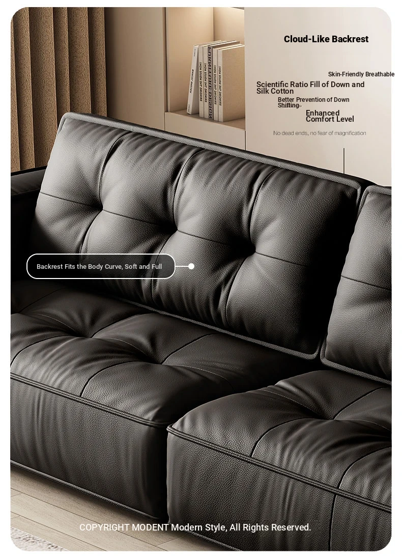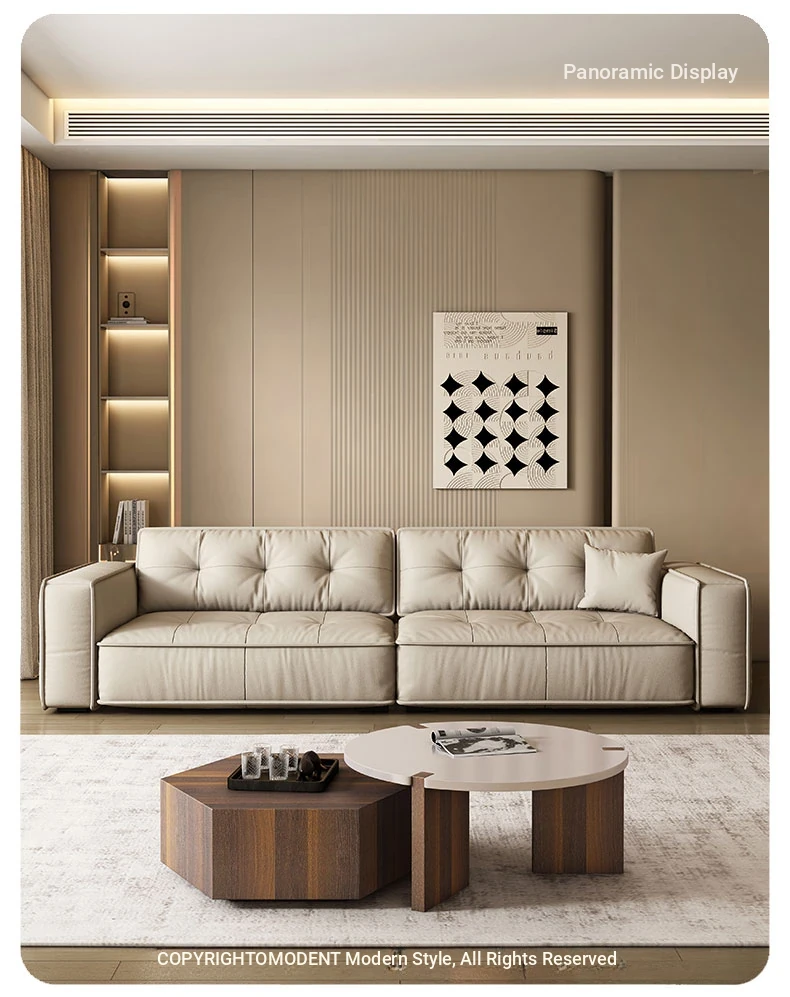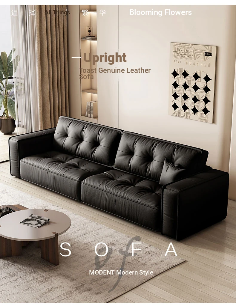 Italian Minimalist Genuine Leather Sofa - Modern Designer Living Room Couch with Unique Block Design, Perfect for Stylish Spaces.