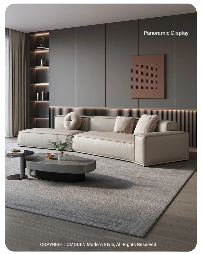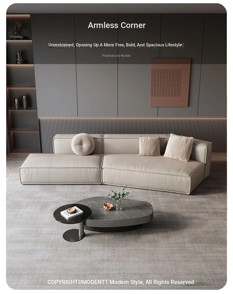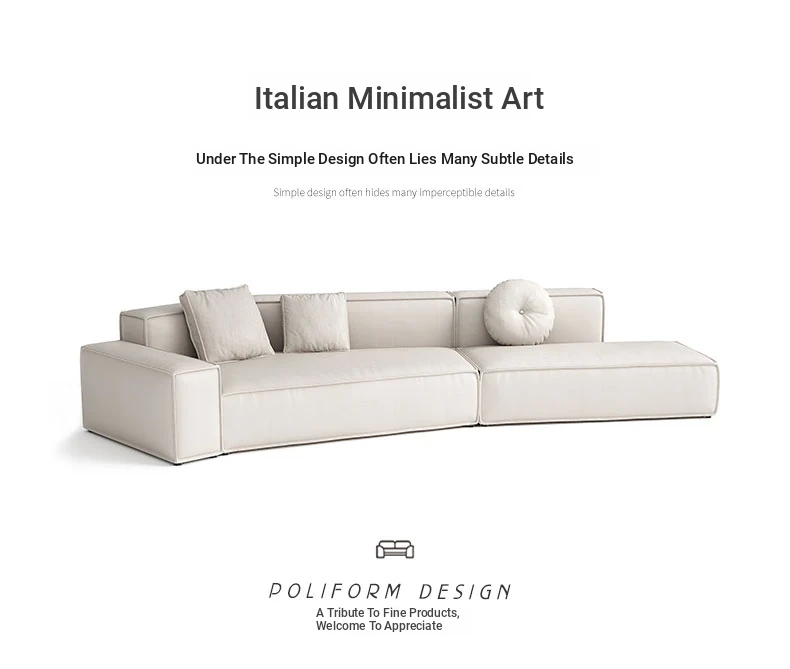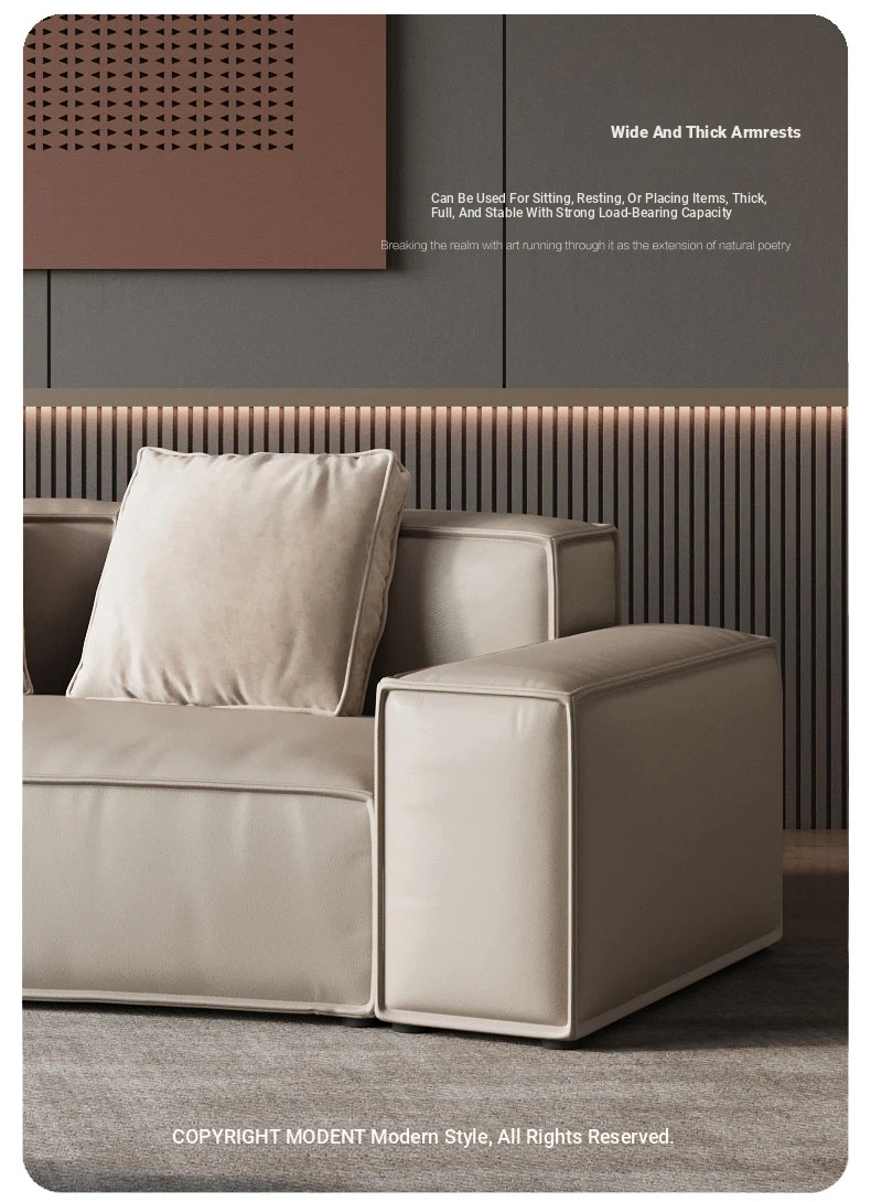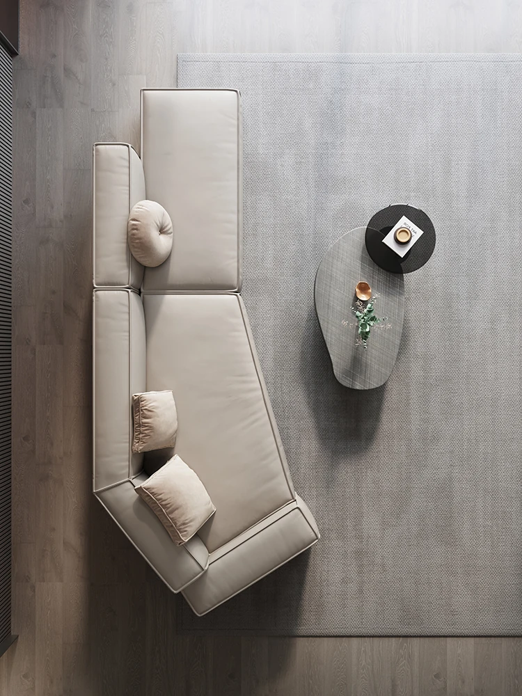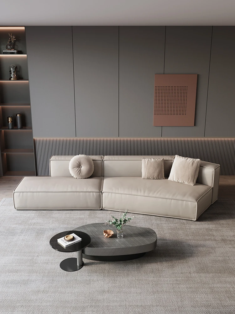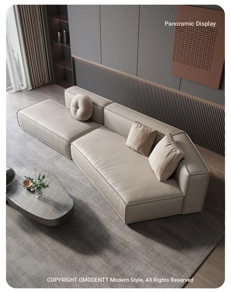 Italian Minimalist Genuine Leather Sofa - Modern Simplistic Design for Living Room, Unique Angular Sectional with Straight and Slanted Blocks, Perfect for Casual Gatherings and Stylish Interiors.