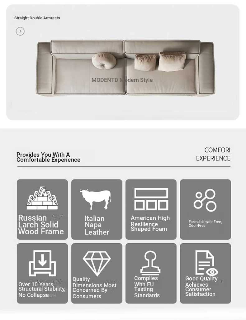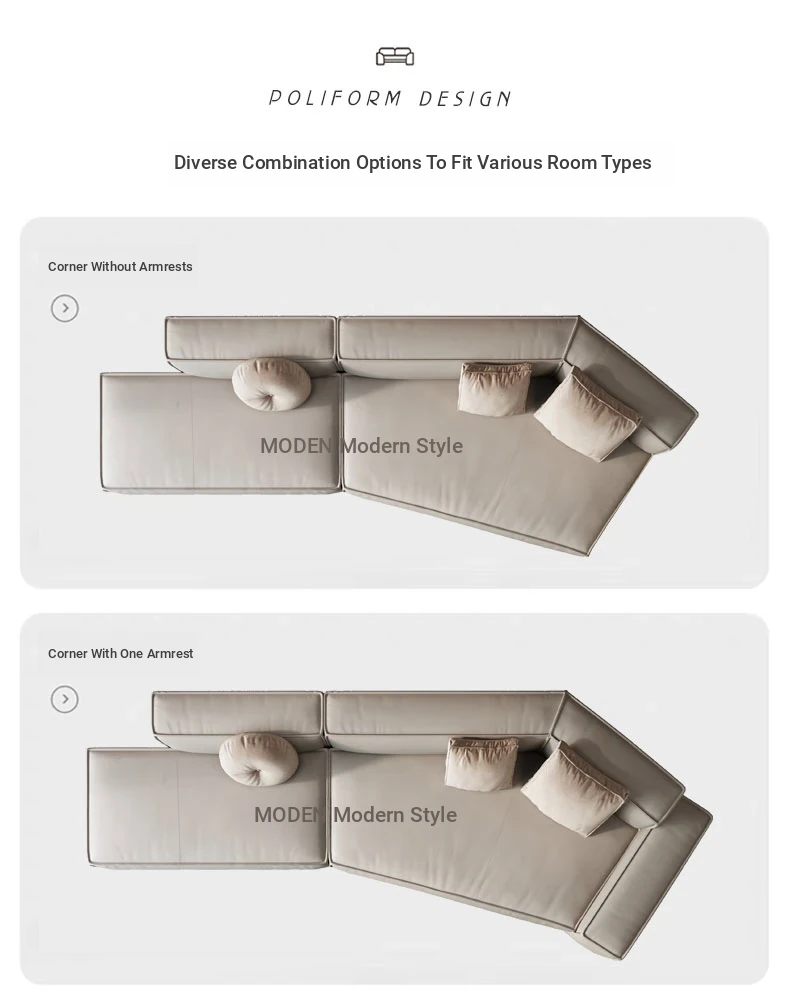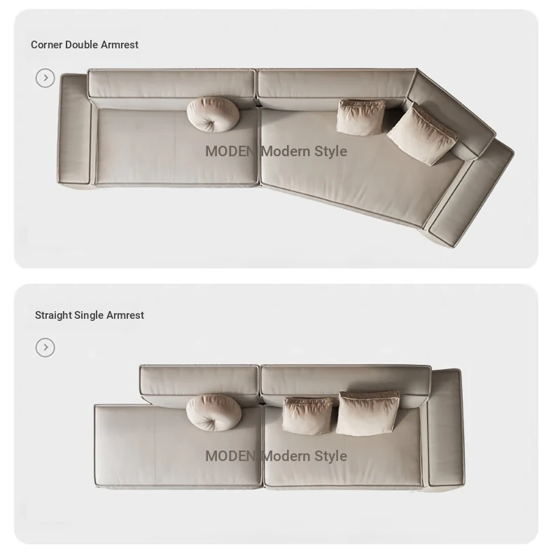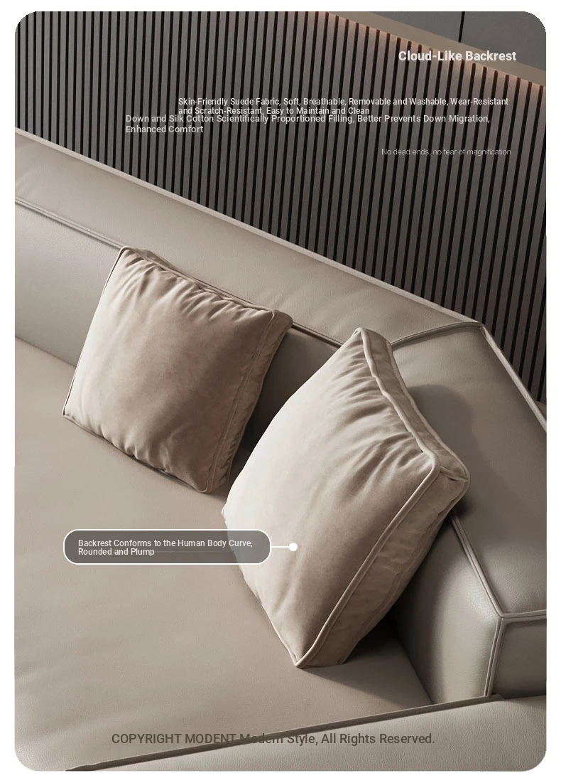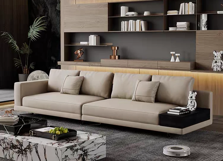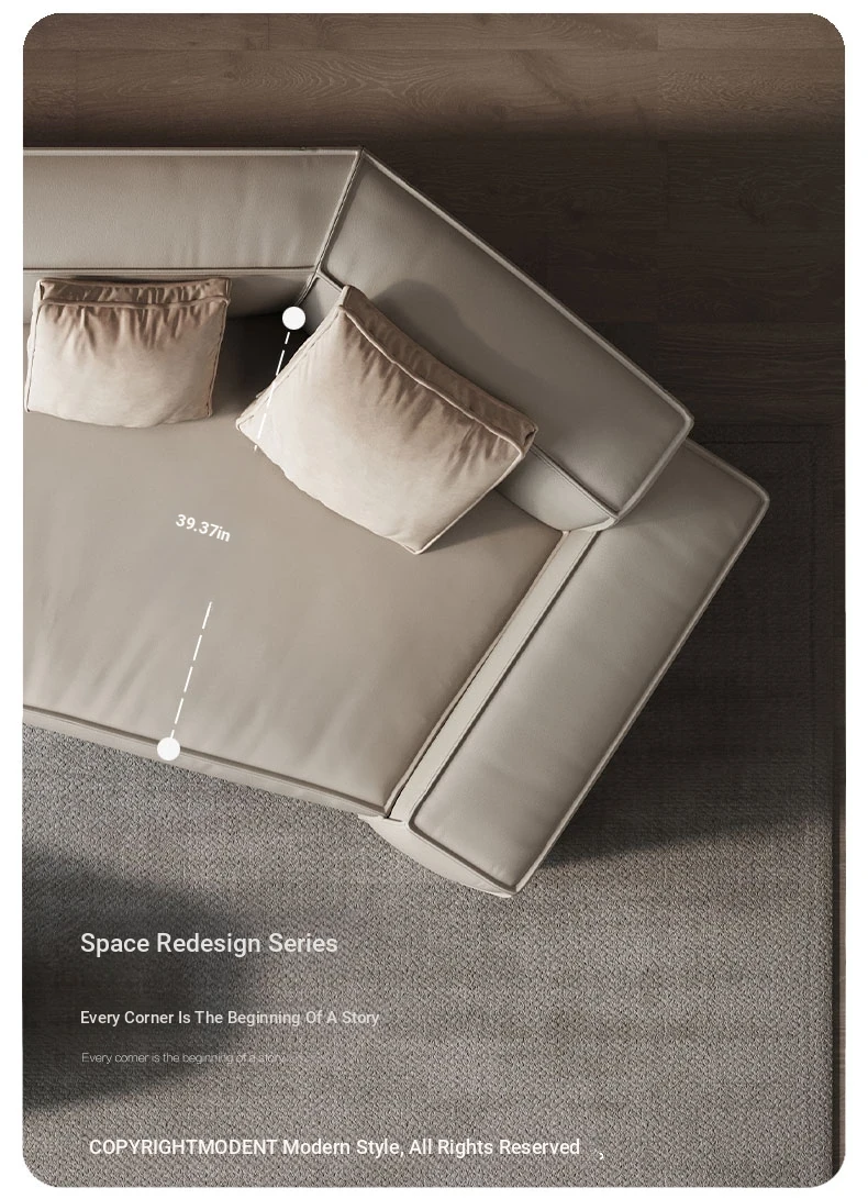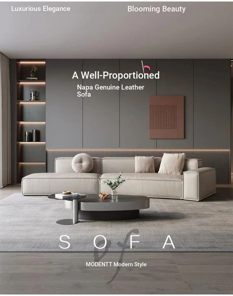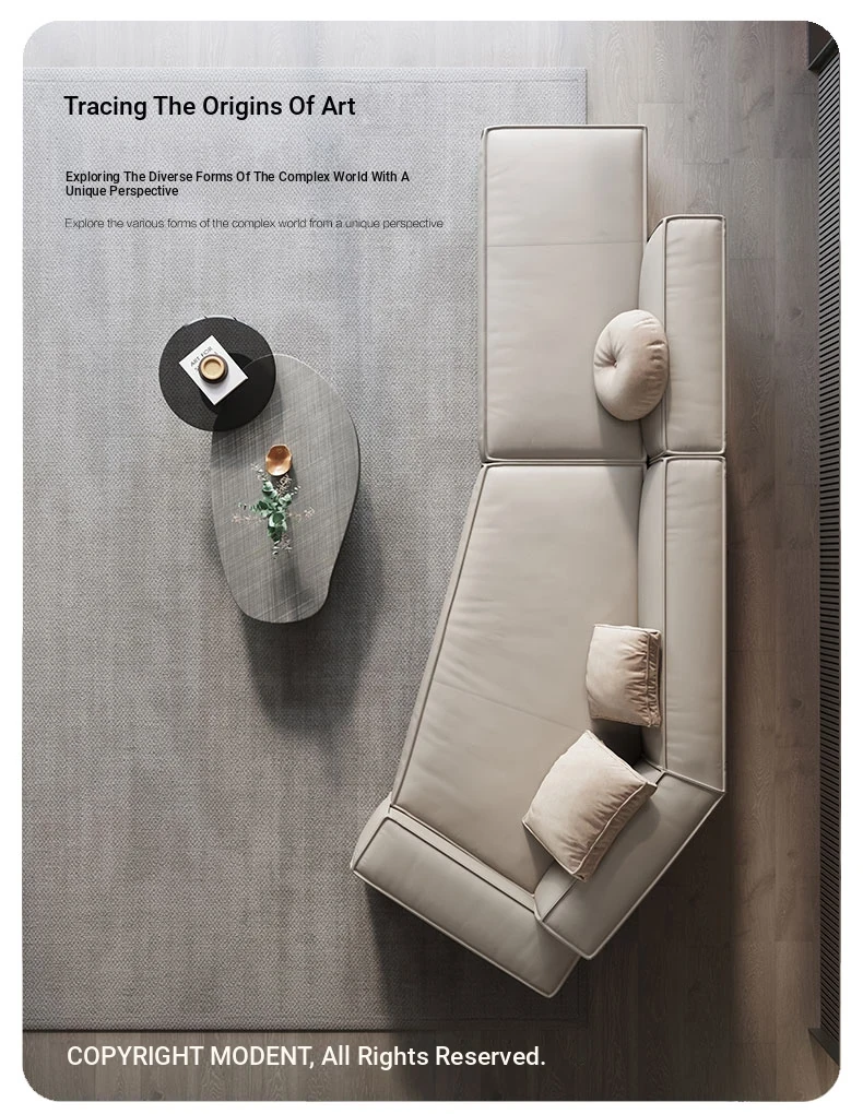 Italian Minimalist Genuine Leather Sofa - Modern Simplistic Design for Living Room, Unique Angular Sectional with Straight and Slanted Blocks, Perfect for Casual Gatherings and Stylish Interiors.