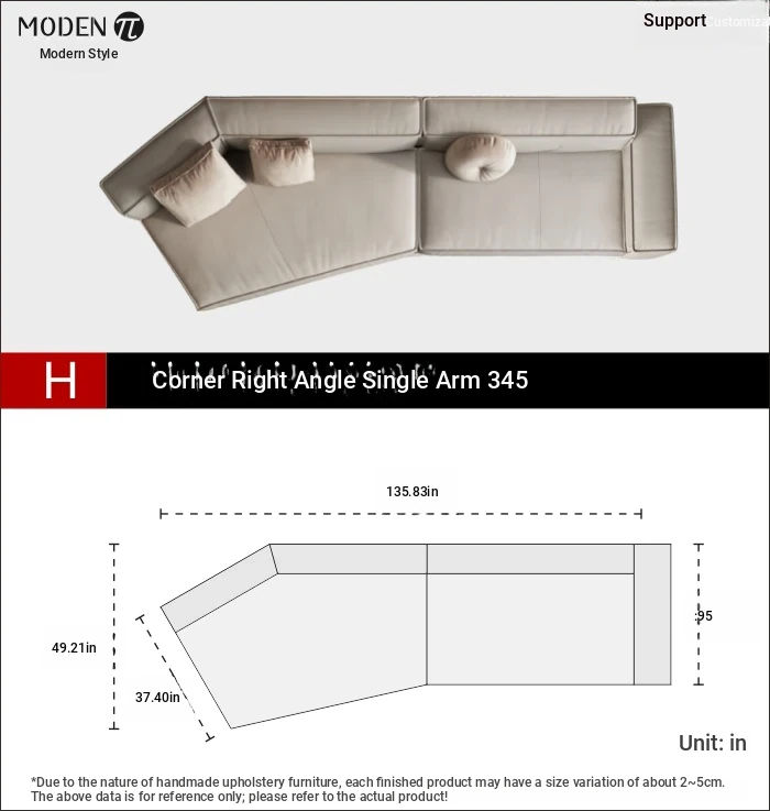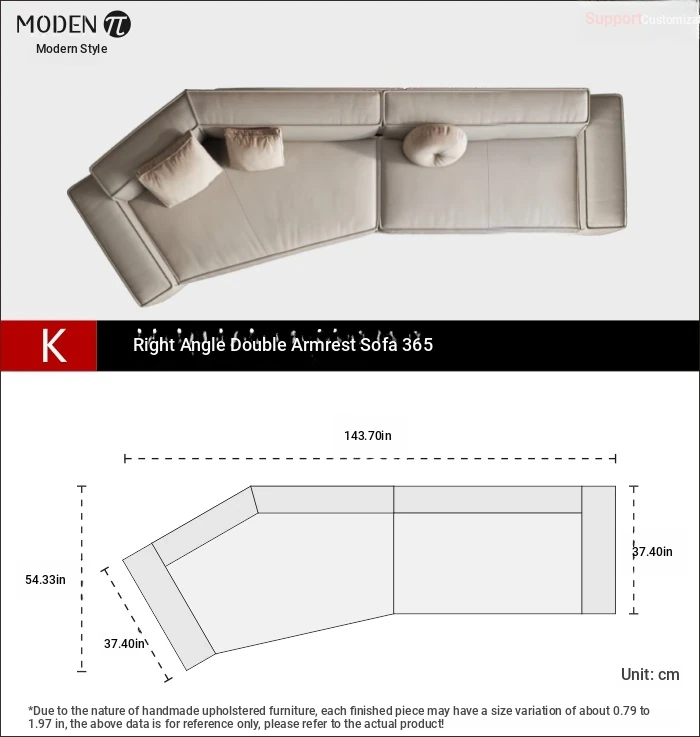 [K1] corner right angle double armrest 345