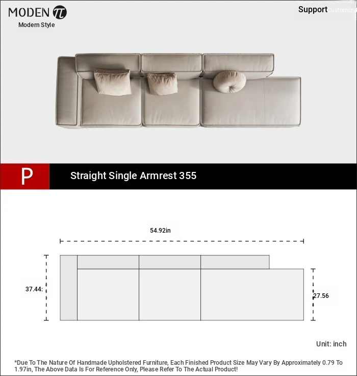 [P] straight single armrest 355