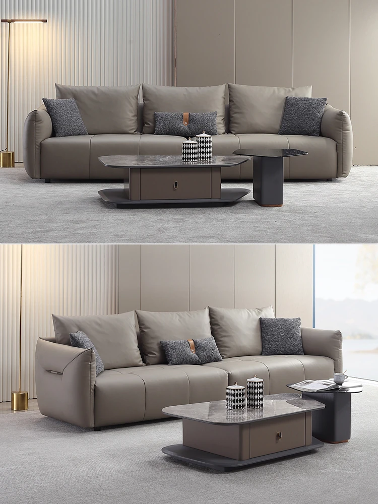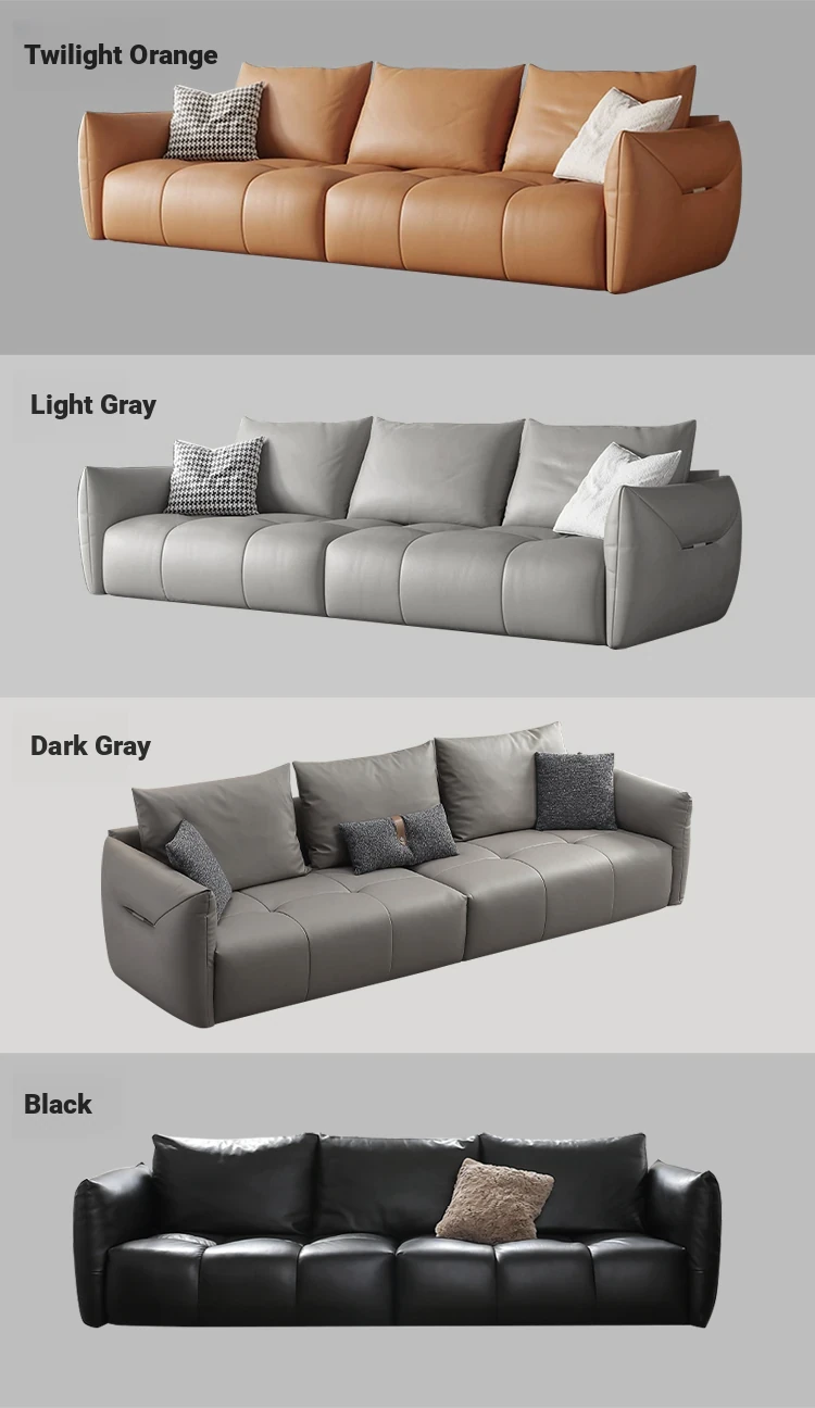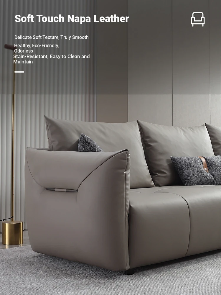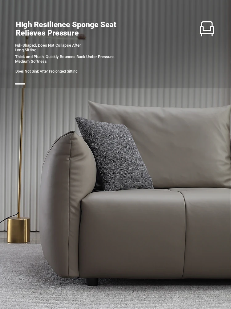 Italian Minimalist Leather Sofa with Pull Tab - Modern Cat Scratch Resistant Cowhide Designer Retro Black Bean Couch for Stylish Living Rooms