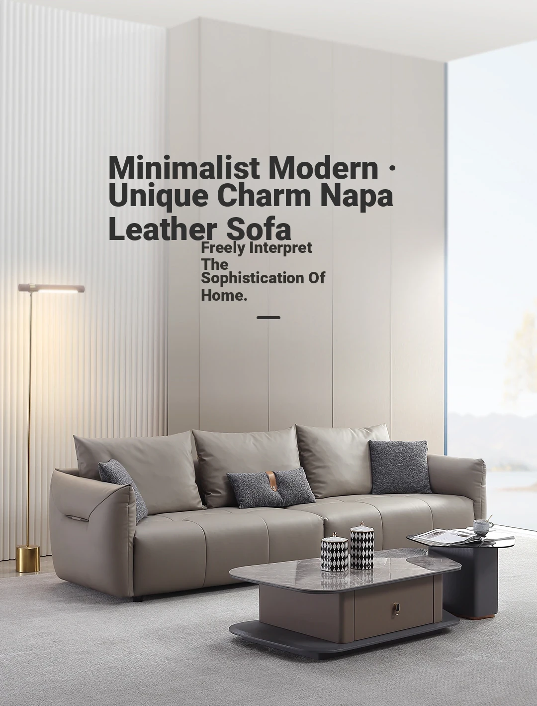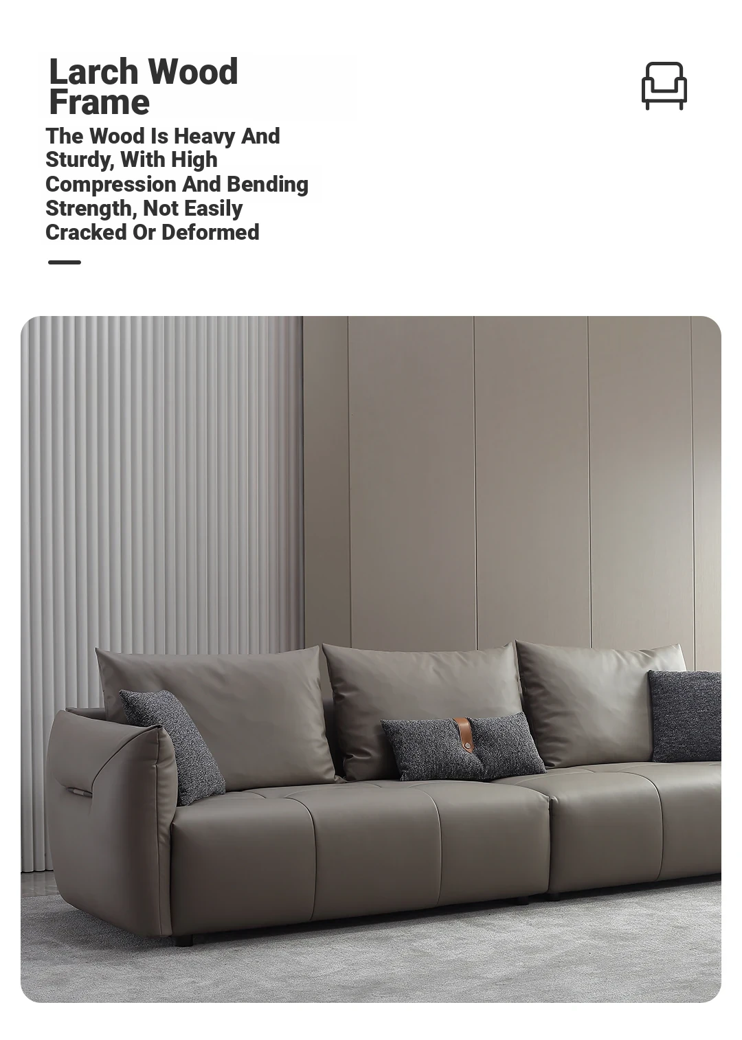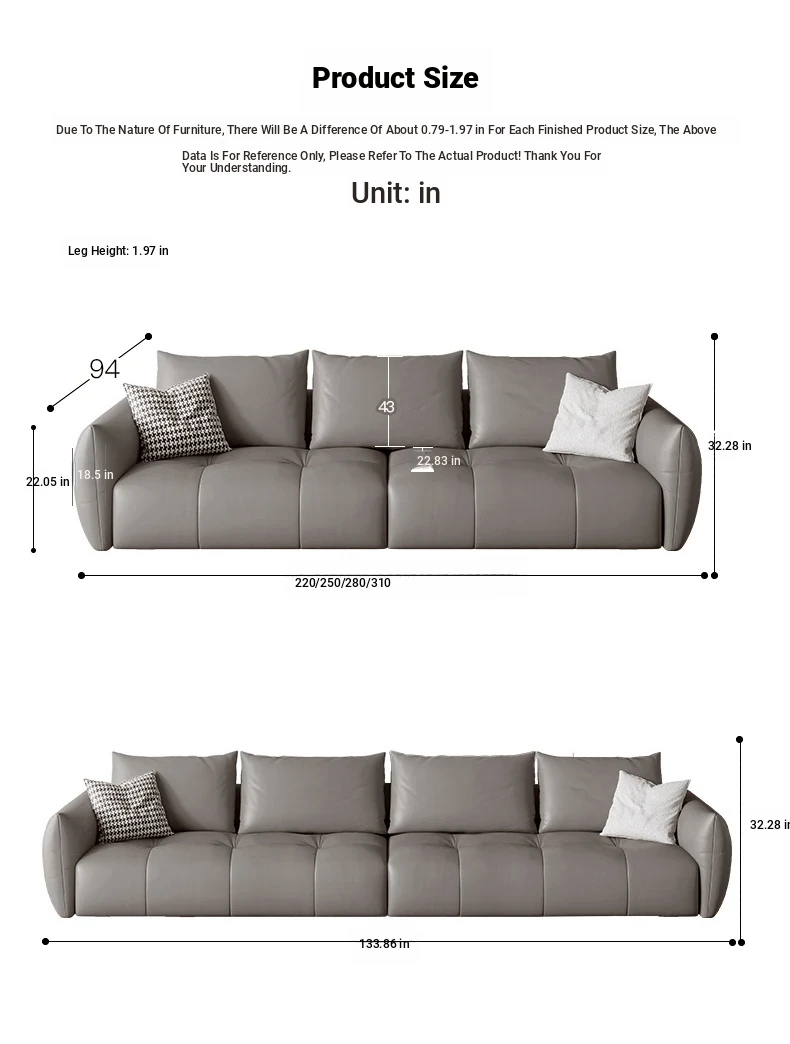 Italian Minimalist Leather Sofa with Pull Tab - Modern Cat Scratch Resistant Cowhide Designer Retro Black Bean Couch for Stylish Living Rooms