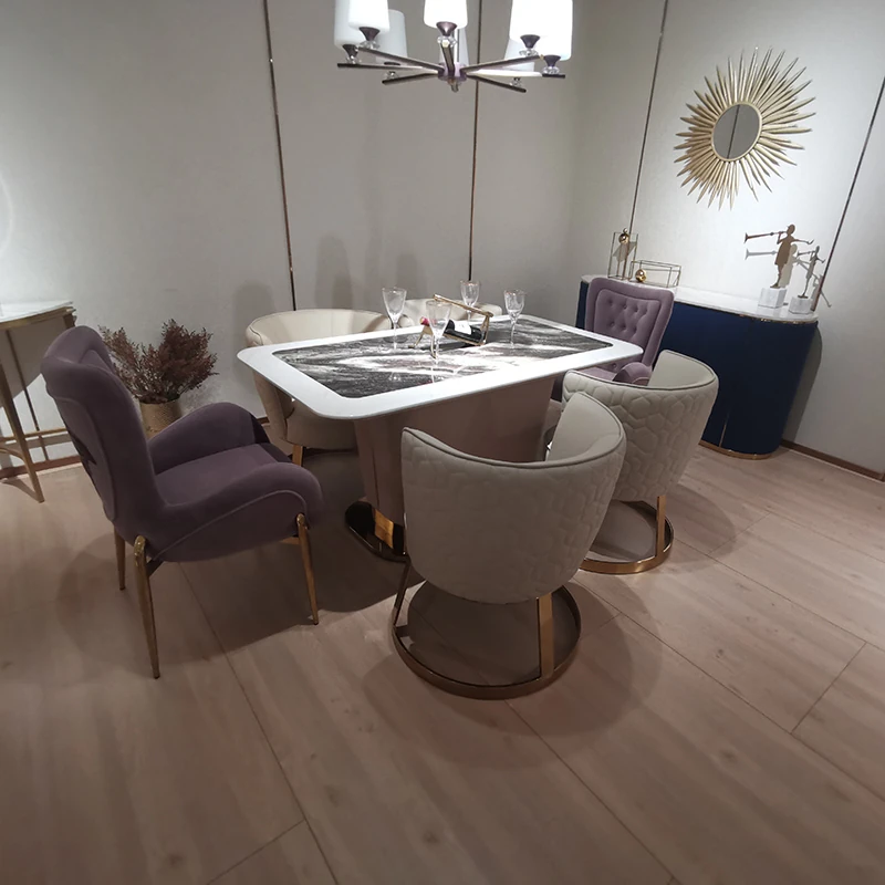 Italian Postmodern Light Luxury Dining Table and Chair Set - Modern Minimalist Stainless Steel and Marble Top for Home Dining Room