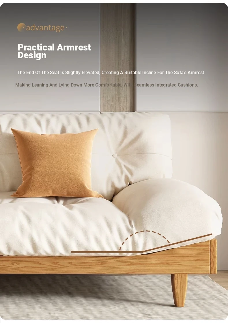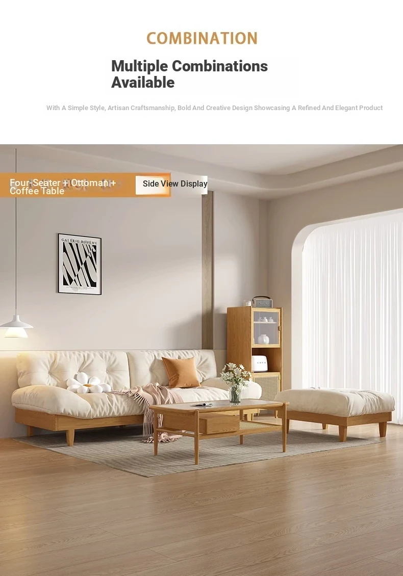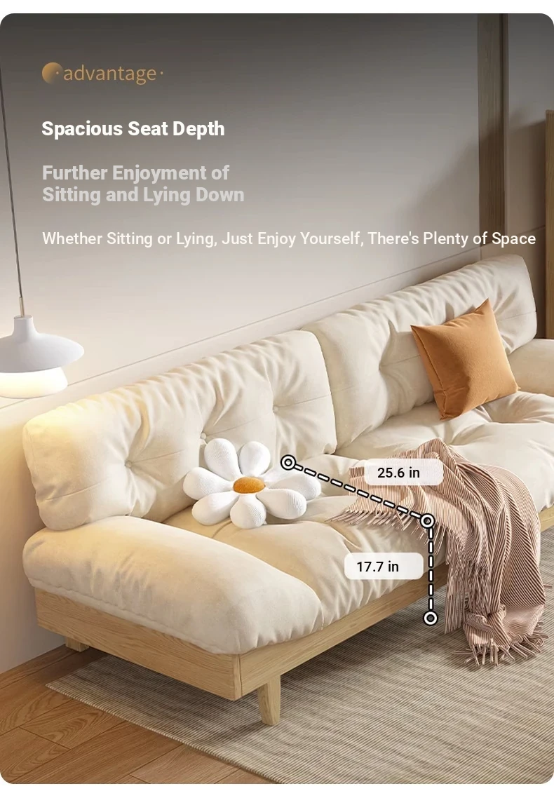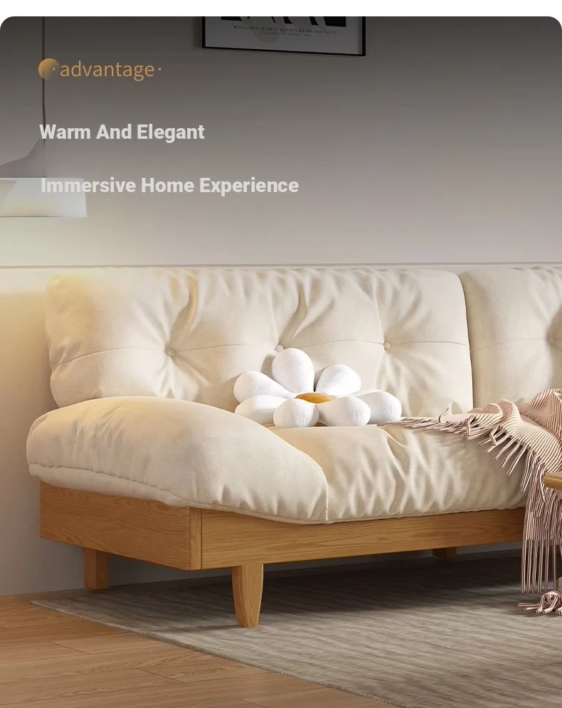 Japanese Wabi-Sabi Style White Ash Cloud Sofa - Soft Creamy Fabric with Wood Grain Technology, Perfect for Cozy Living Spaces