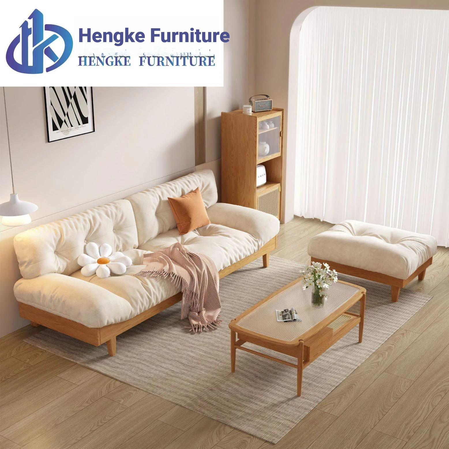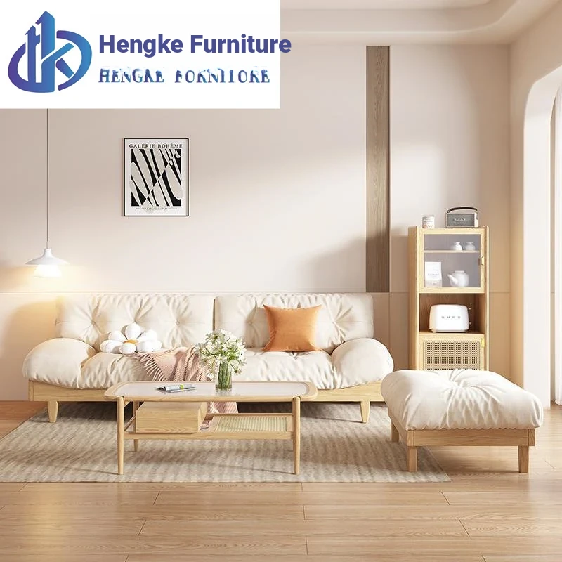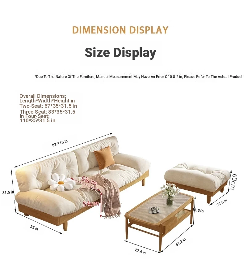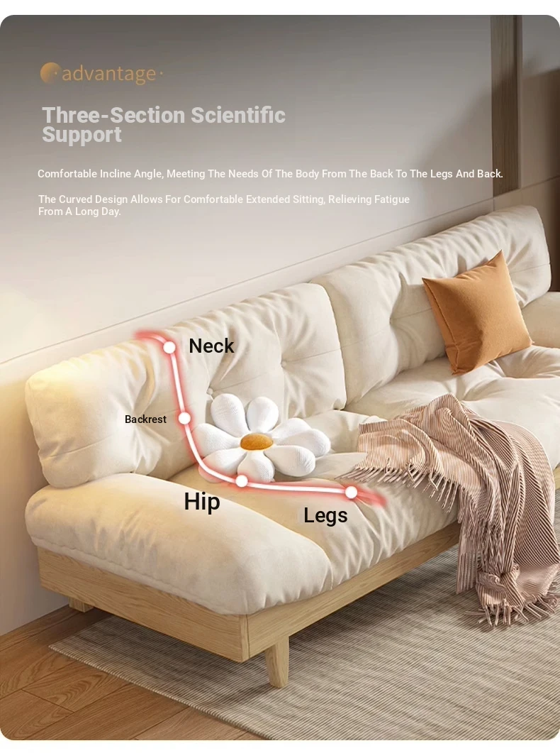 Japanese Wabi-Sabi Style White Ash Cloud Sofa - Soft Creamy Fabric with Wood Grain Technology, Perfect for Cozy Living Spaces