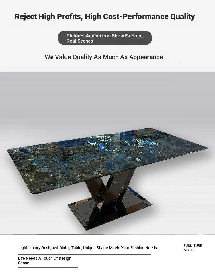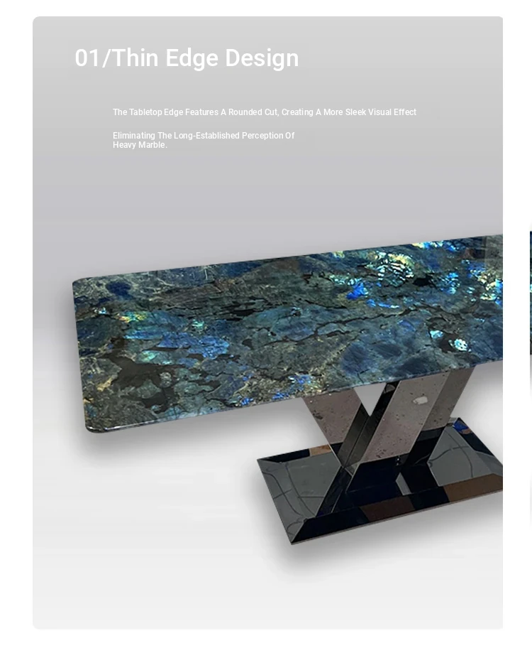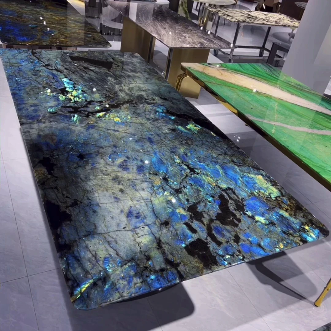 Luxury Blue Jade Marble Dining Table - Imported Natural Stone, High-End Designer Piece for Elegant Homes, Exuding Sophistication and Modern Luxury.