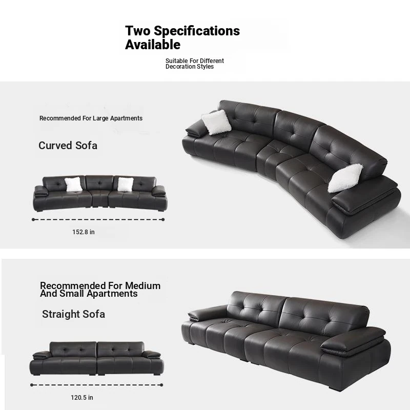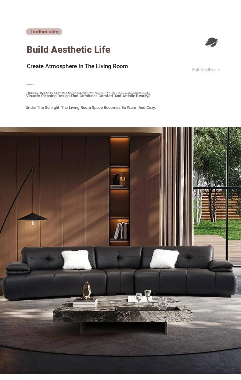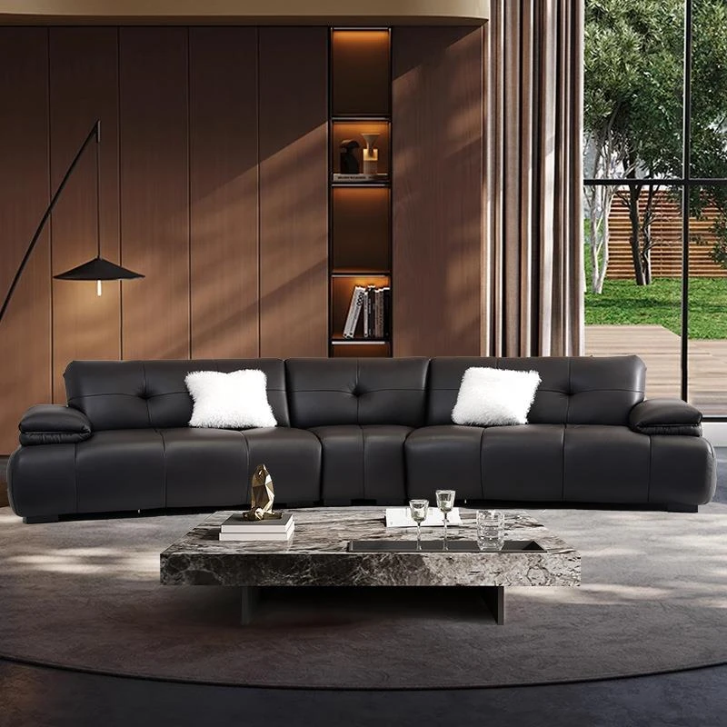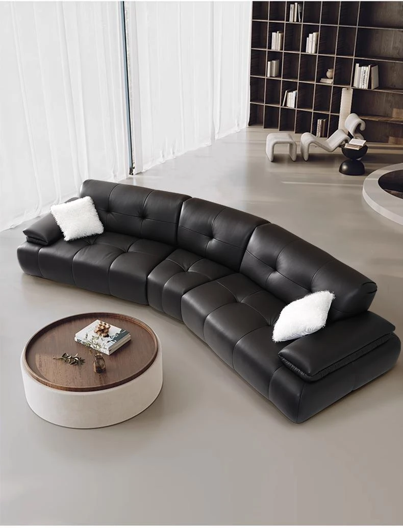 Luxury Curved Sofa in Top-Grain Leather - Italian Minimalist Design for Spacious Villa Living Rooms - Unique Shaped Sofa for Modern Interiors