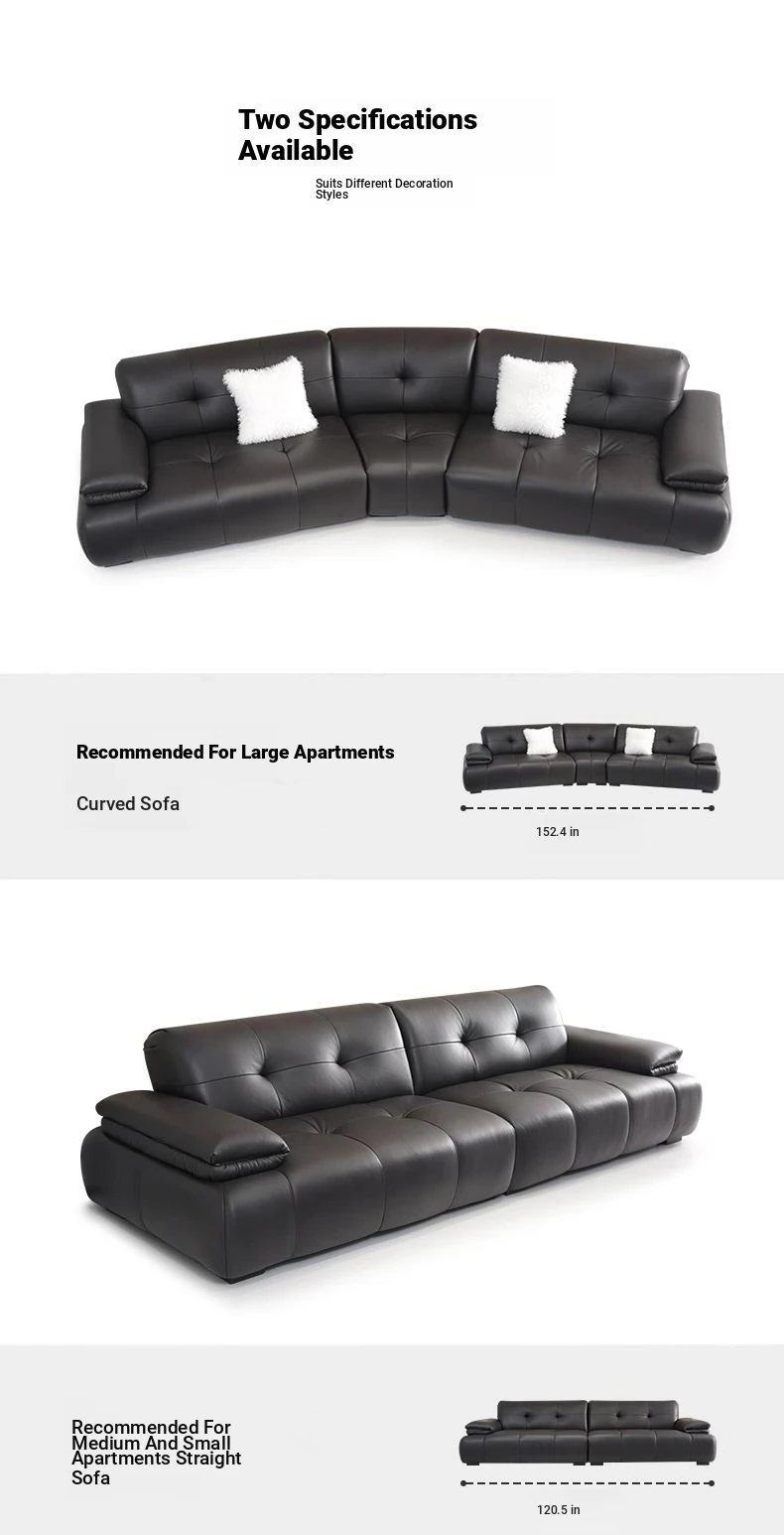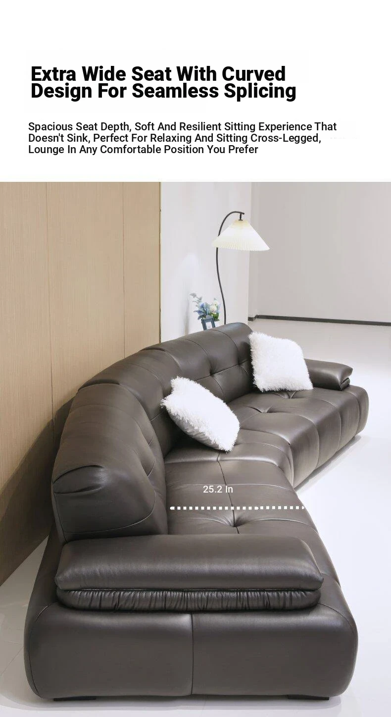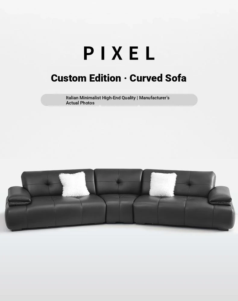Luxury Curved Sofa in Top-Grain Leather - Italian Minimalist Design for Spacious Villa Living Rooms - Unique Shaped Sofa for Modern Interiors