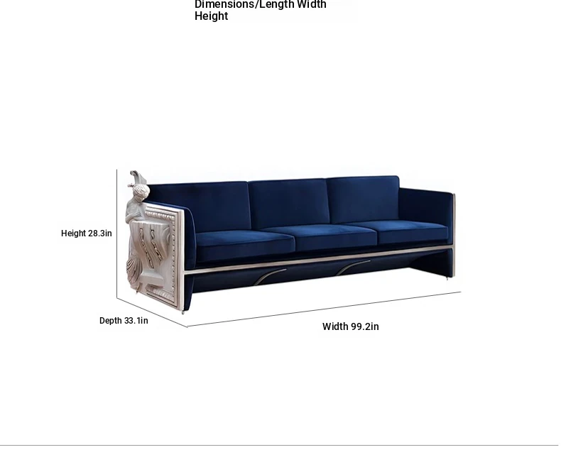 Three people blue sofa 99.21in*33.07in*28.35in