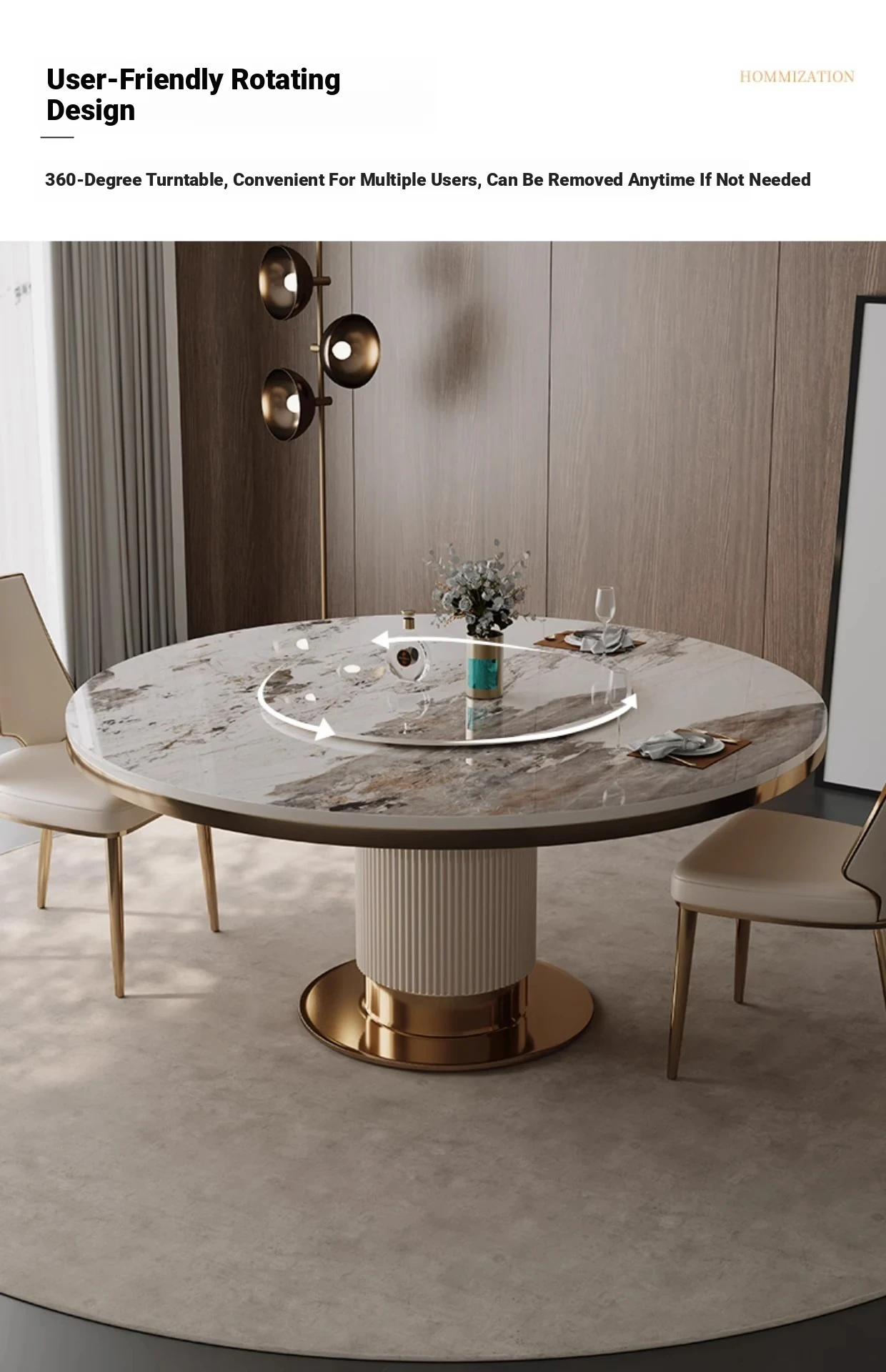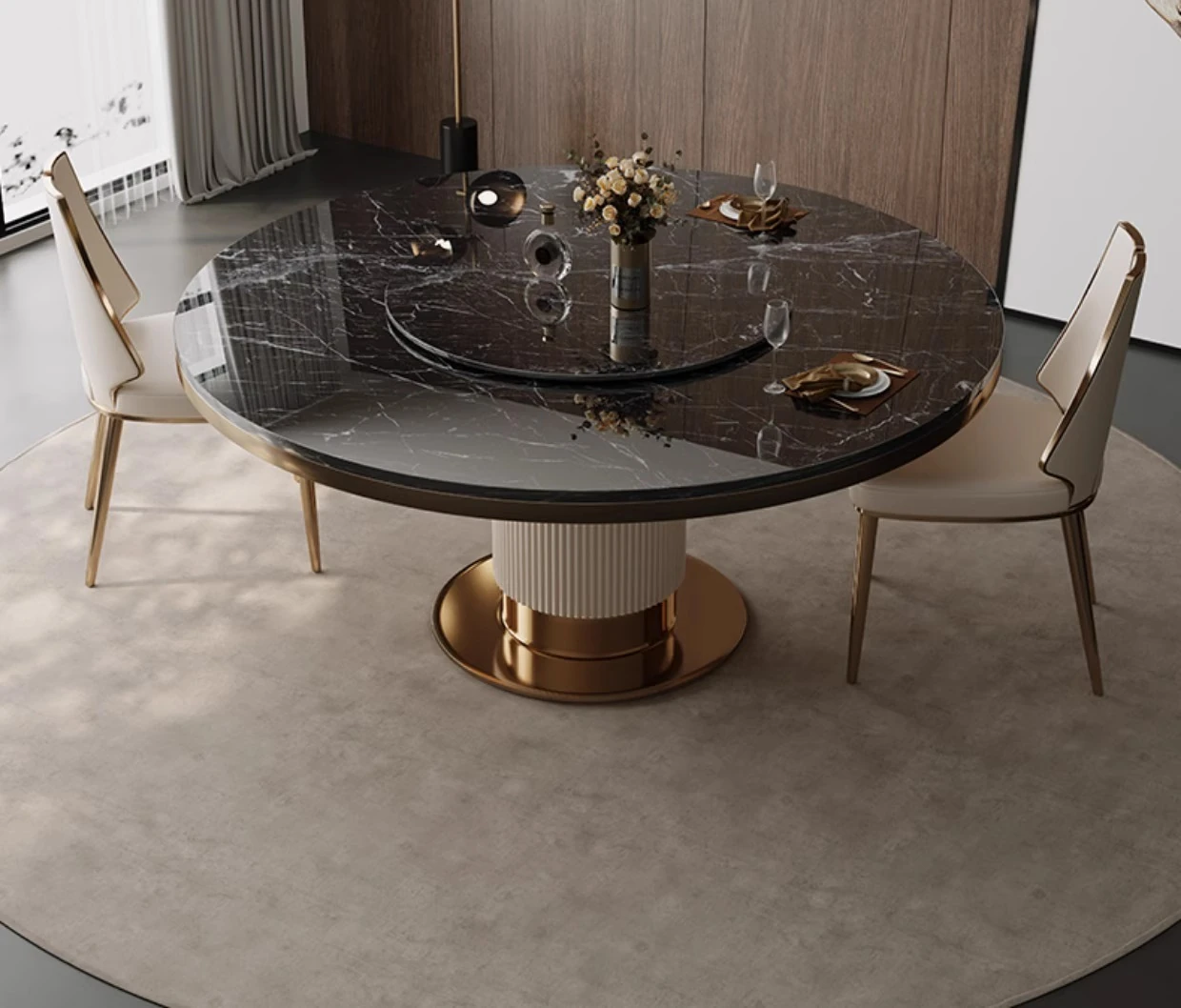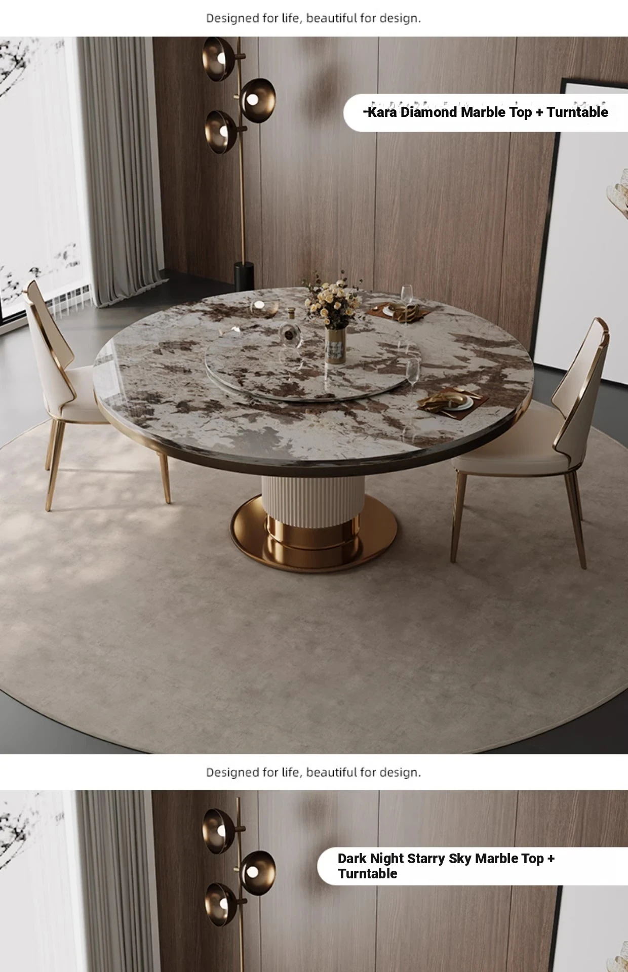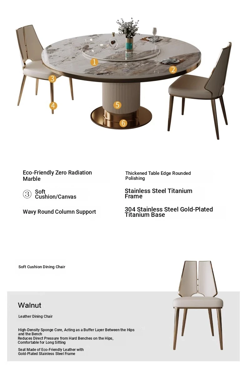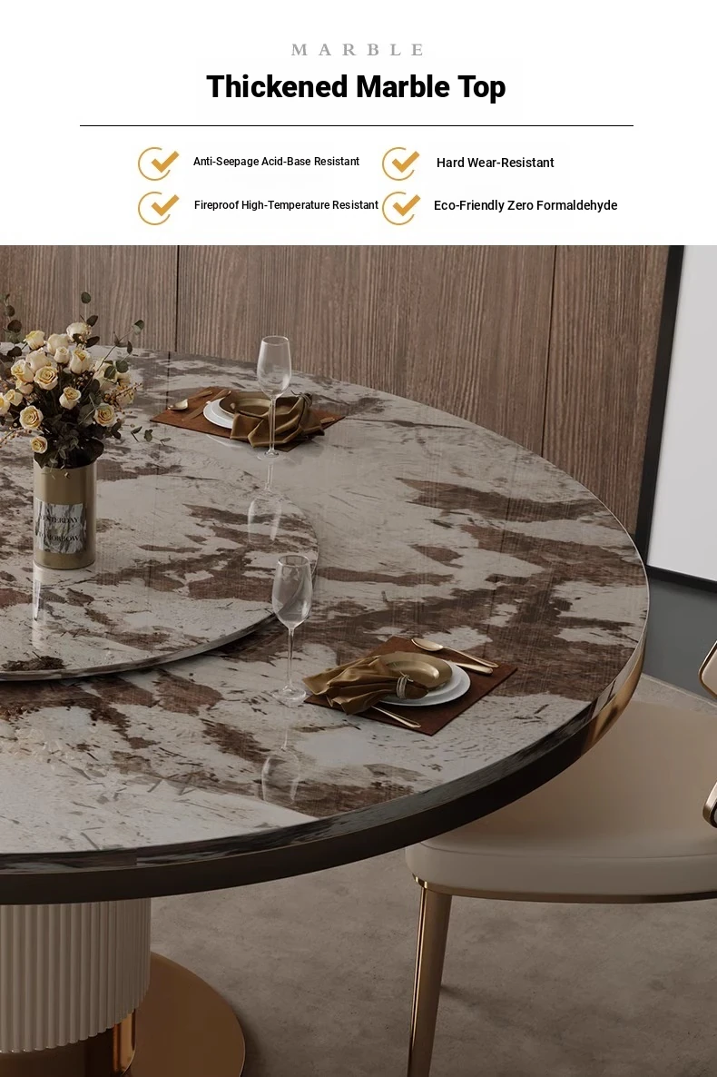 Luxury Marble Dining Table Set - Elegant Round Table and Chairs with Rotating Tray, Perfect for Sophisticated Dining Experiences. Ideal for Modern Living Spaces.