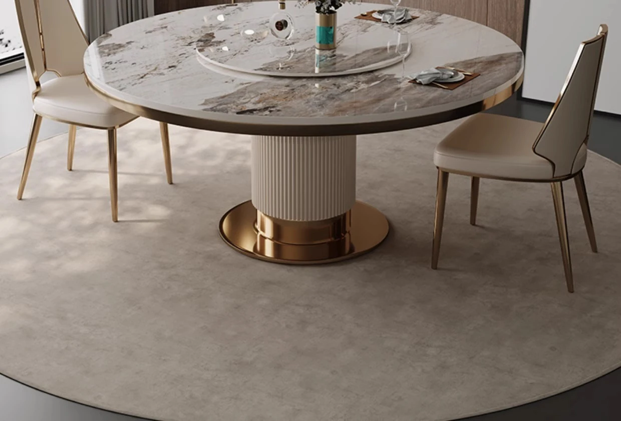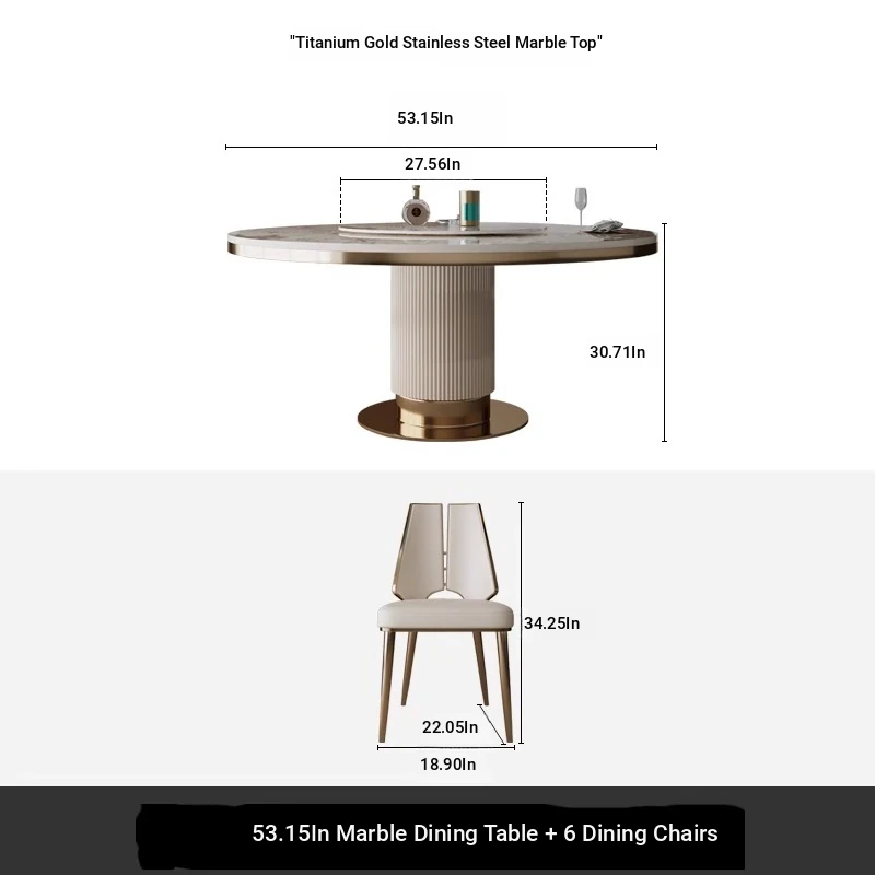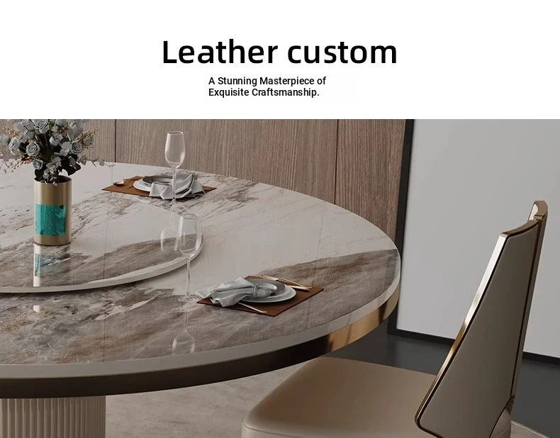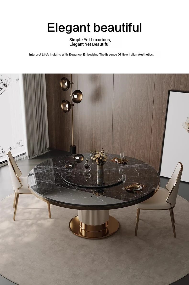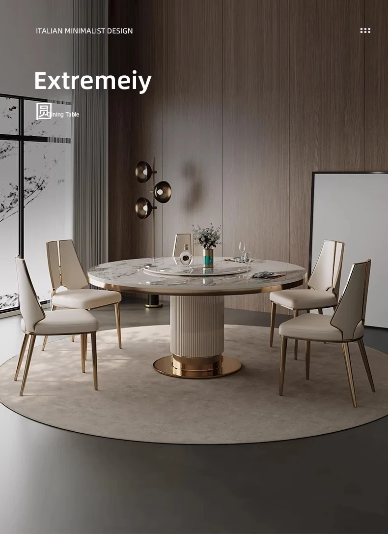 Luxury Marble Dining Table Set - Elegant Round Table and Chairs with Rotating Tray, Perfect for Sophisticated Dining Experiences. Ideal for Modern Living Spaces.