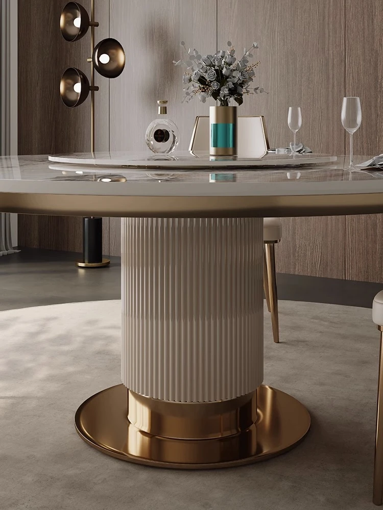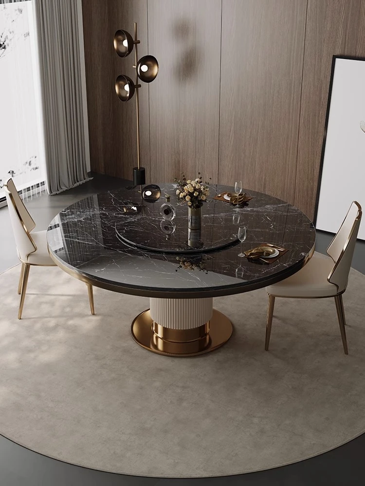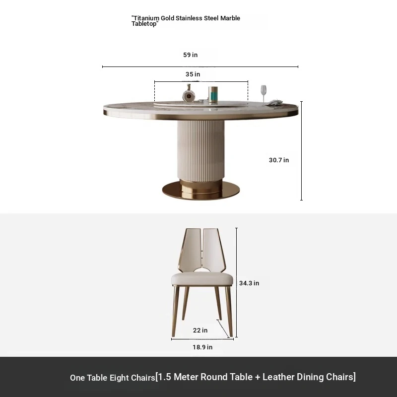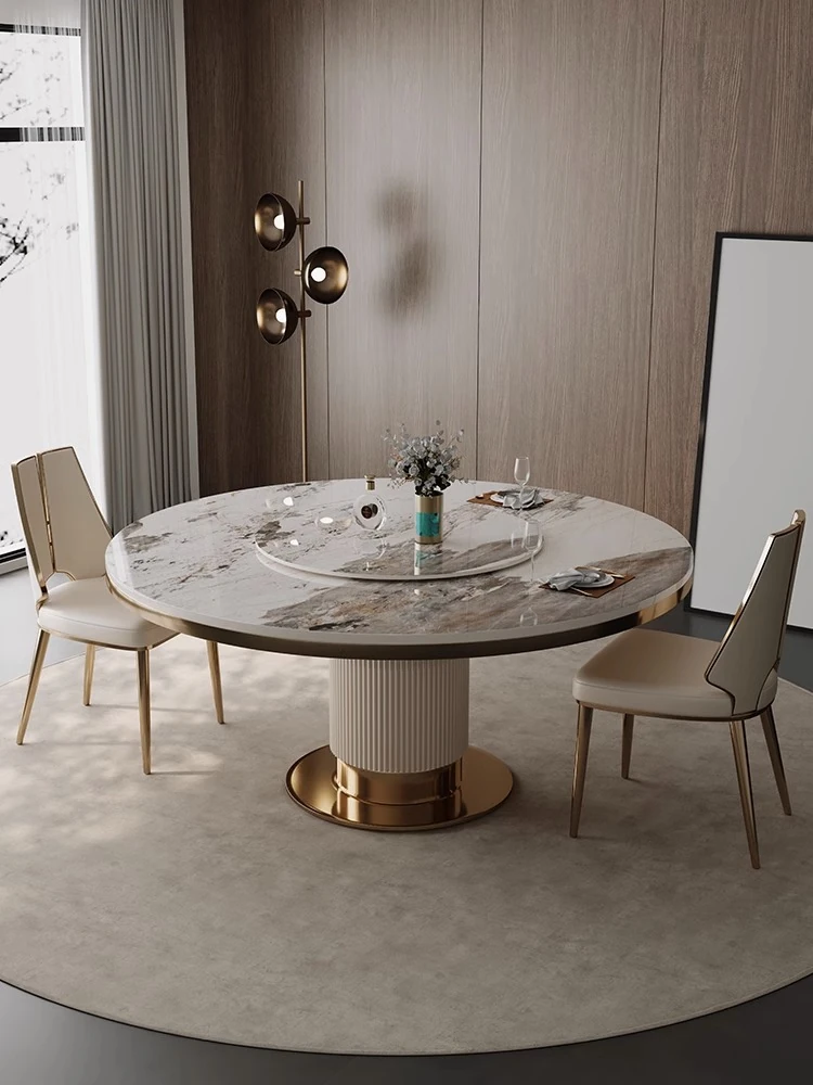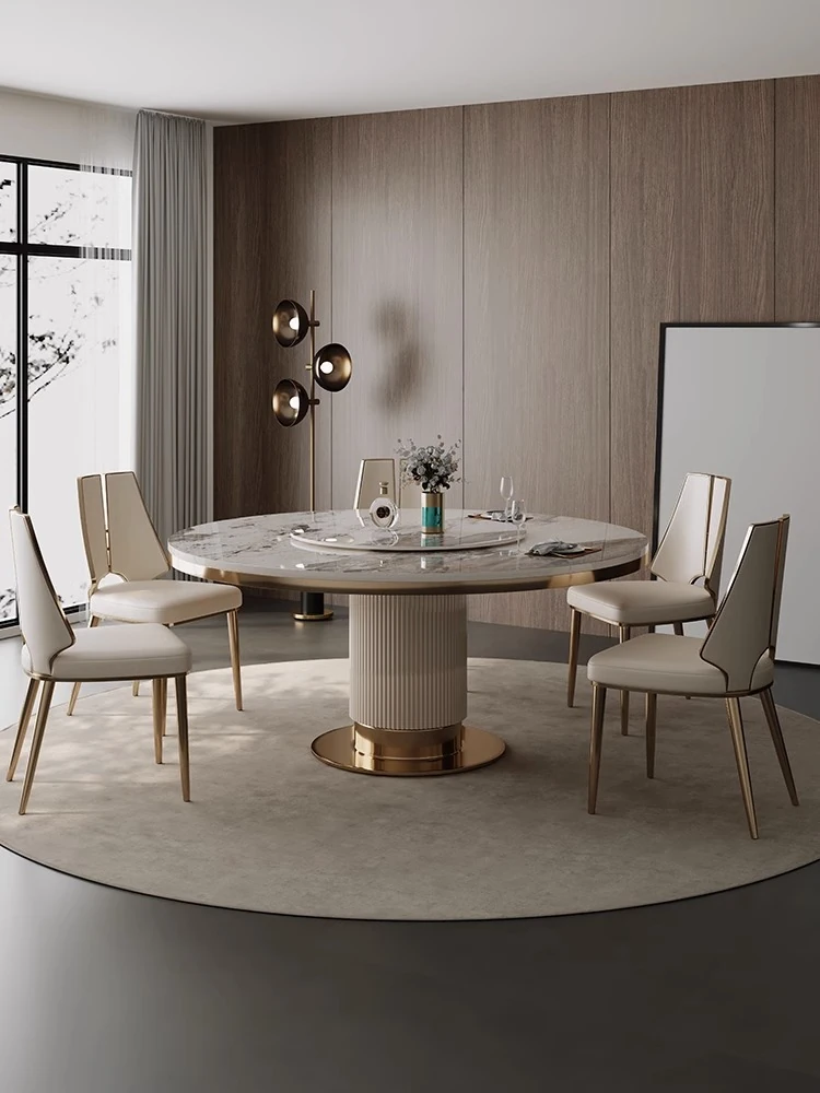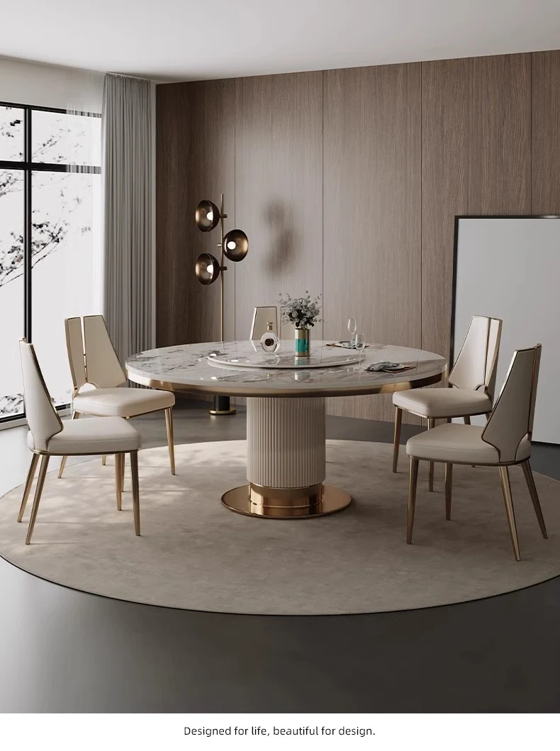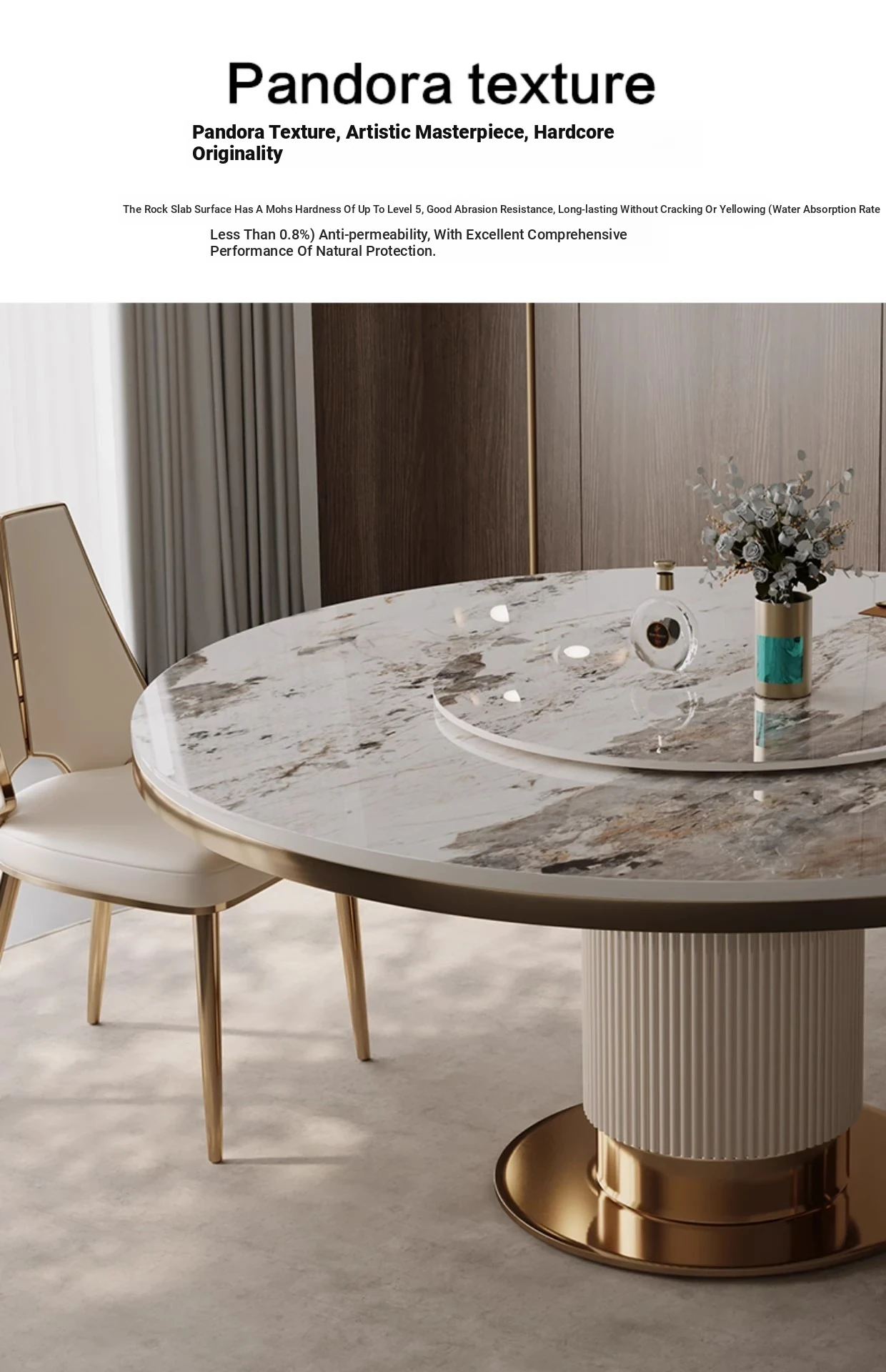 Luxury Marble Dining Table Set - Elegant Round Table and Chairs with Rotating Tray, Perfect for Sophisticated Dining Experiences. Ideal for Modern Living Spaces.