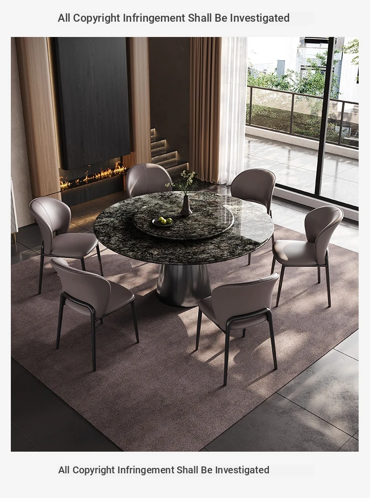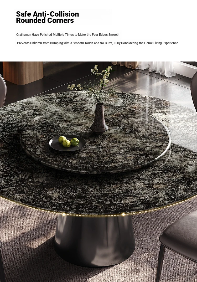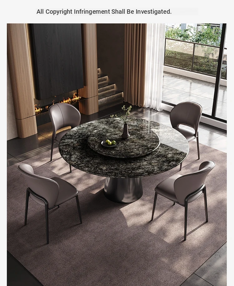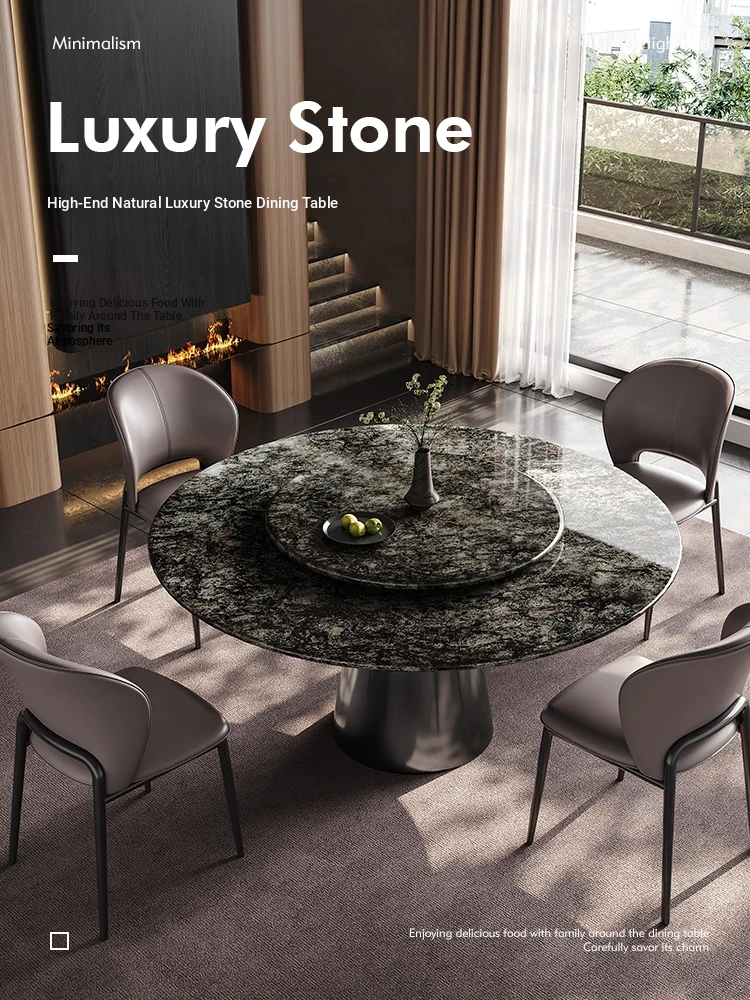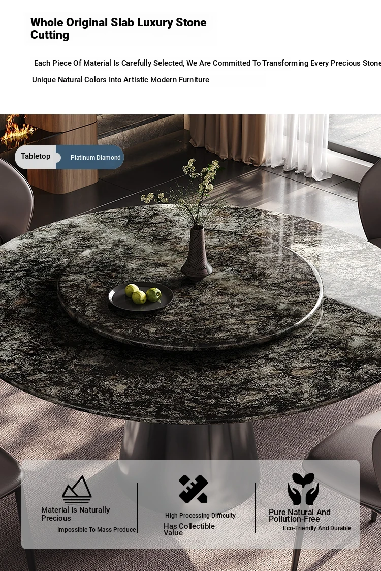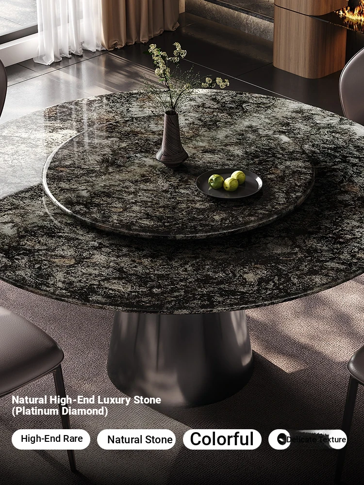 Luxury Round Dining Table Made of Natural Marble with Platinum Diamond Finish - 2024 New Collection, Elegant Dining Set for Home Use