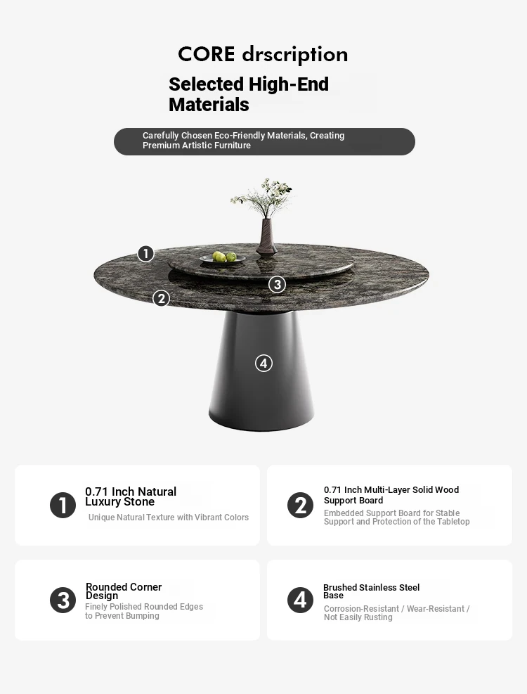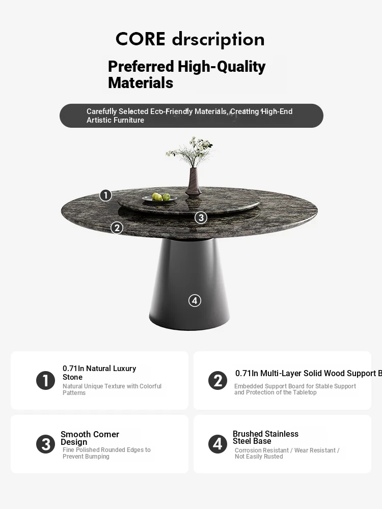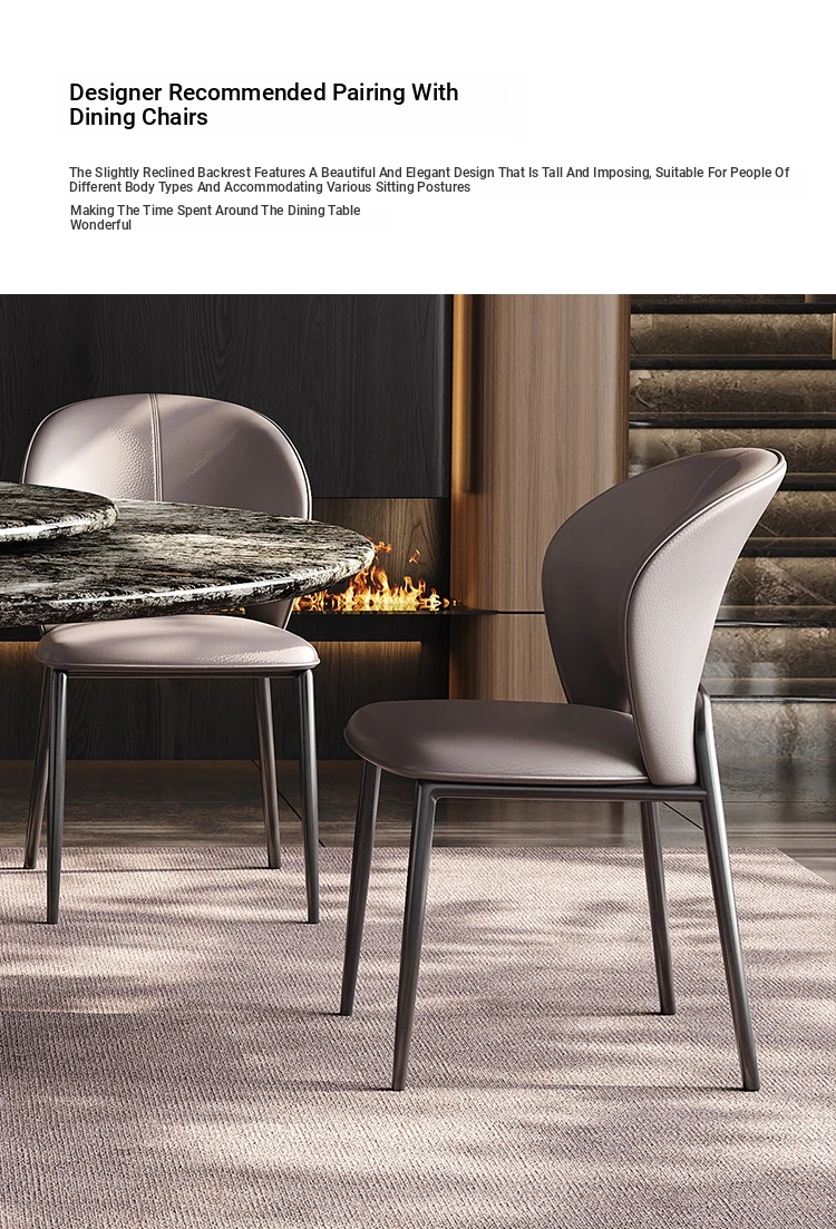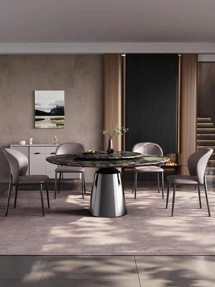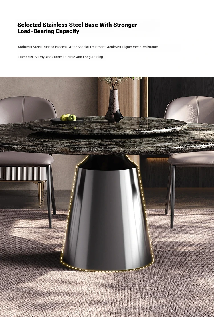Luxury Round Dining Table Made of Natural Marble with Platinum Diamond Finish - 2024 New Collection, Elegant Dining Set for Home Use