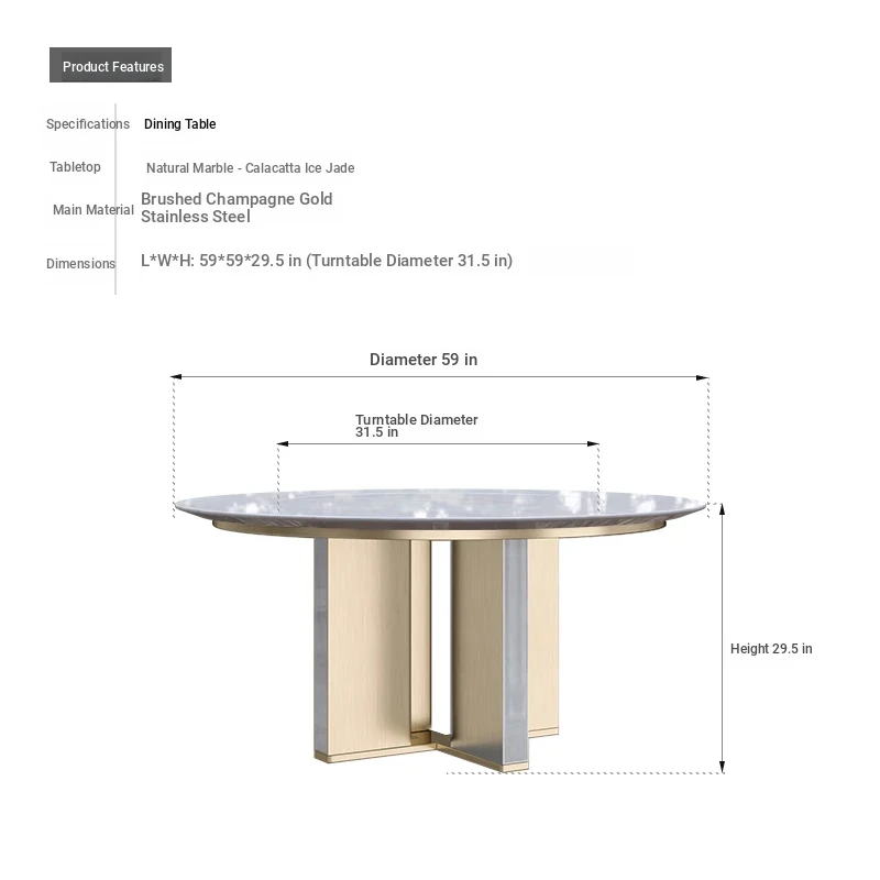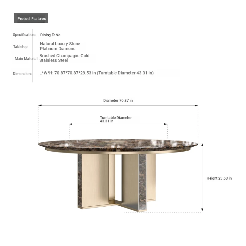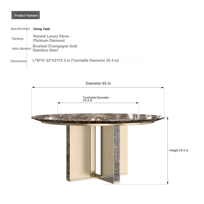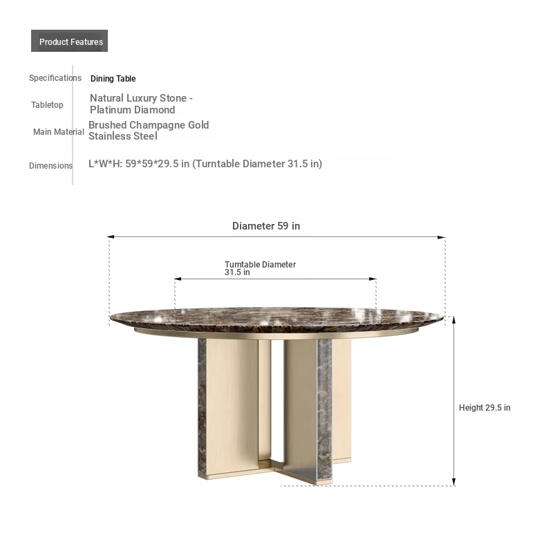 [Luxury stone-Platinum Diamond] 59.06in dining table(Champagne Gold)