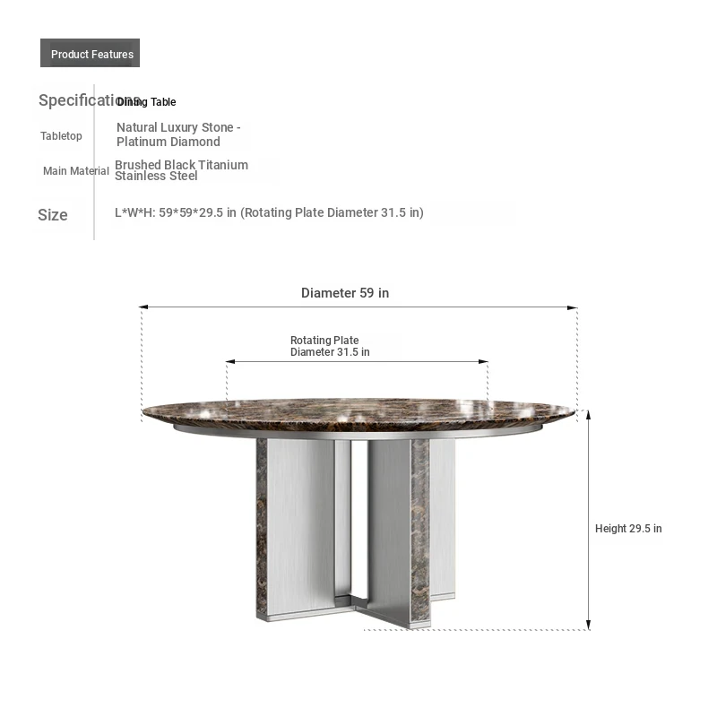 [Luxury stone-Platinum Diamond] 59.06in dining table(Black titanium gold)