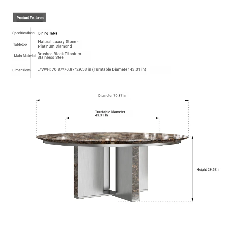 [Luxury Stone-Platinum Diamond] 70.87in Dining Table(Black titanium gold)