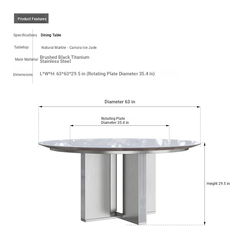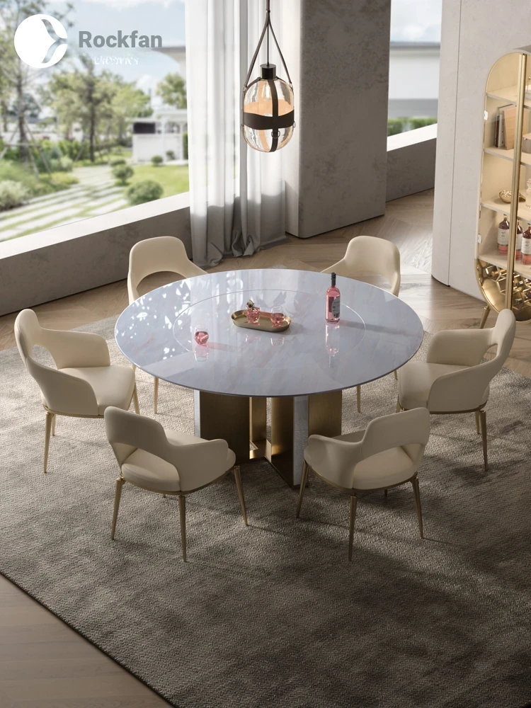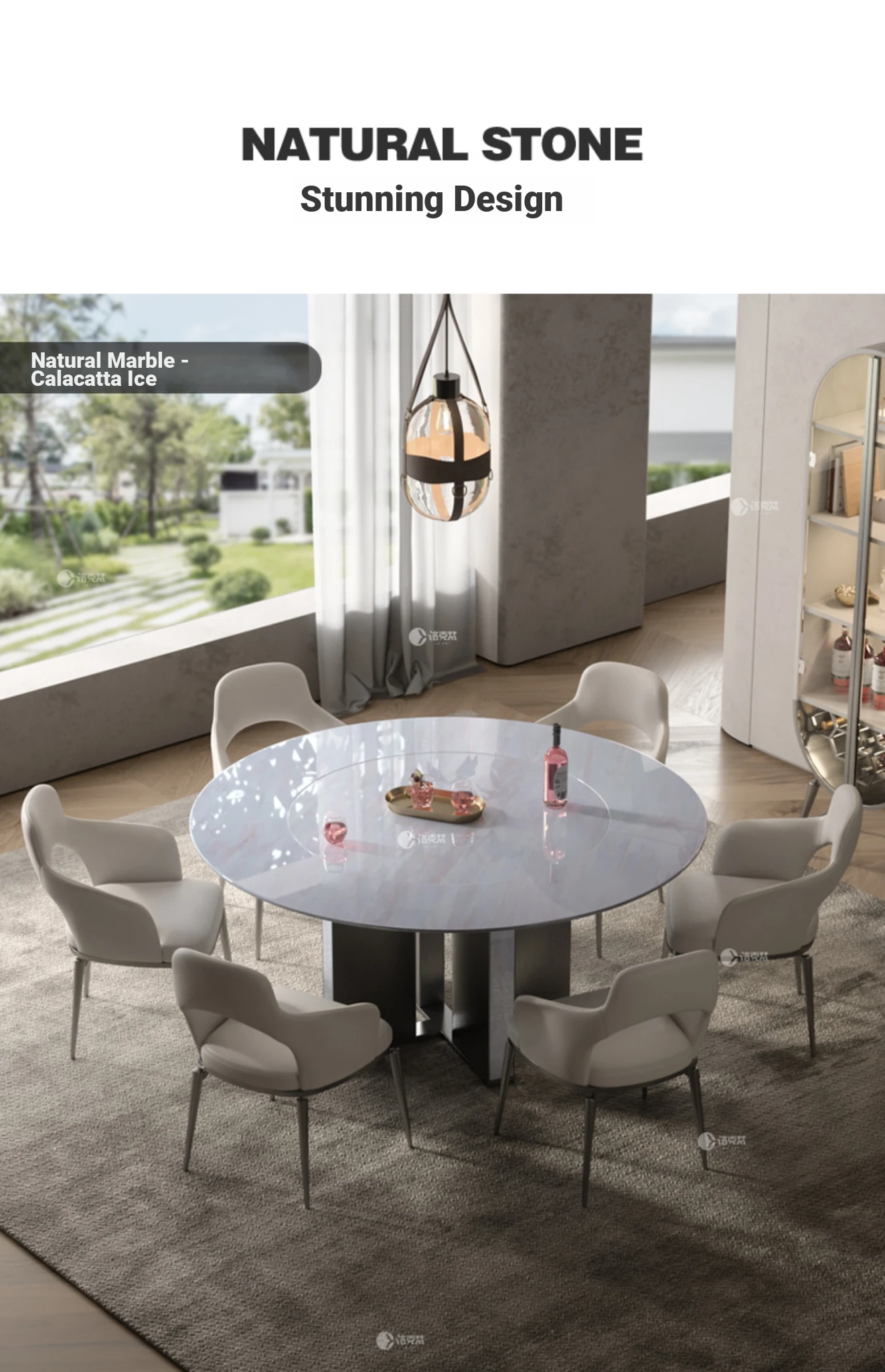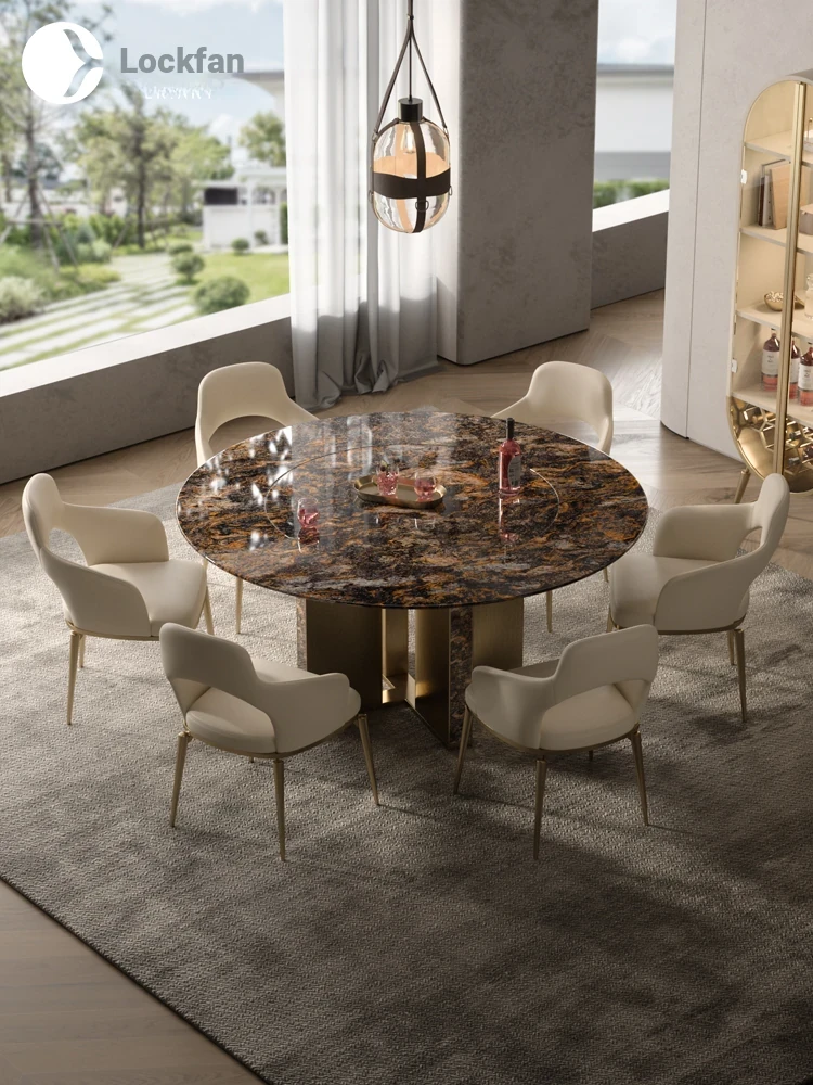 Luxury Round Dining Table with Embedded Turntable - Italian Modern Design in Natural Marble for High-End Villas and Home Use