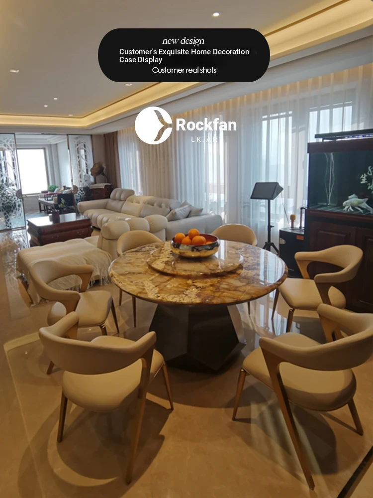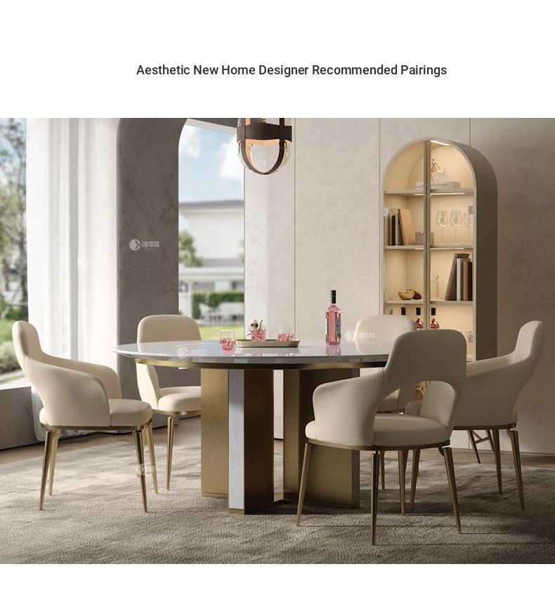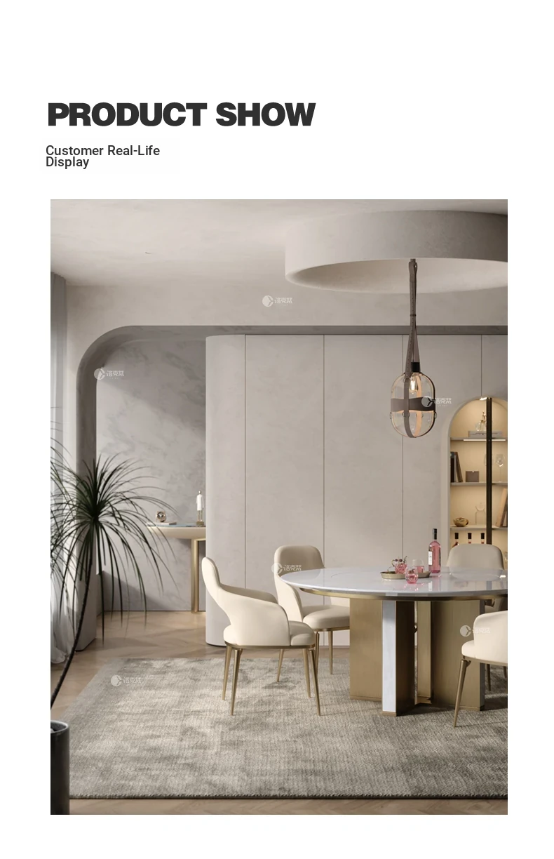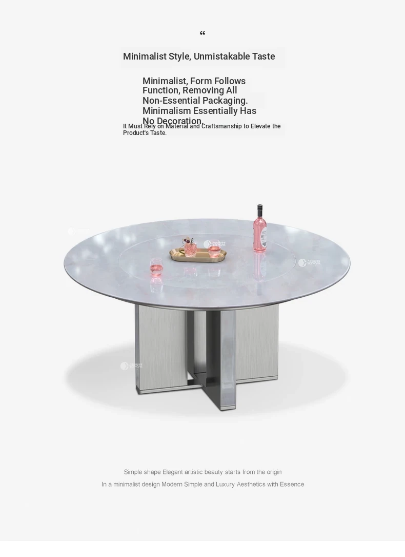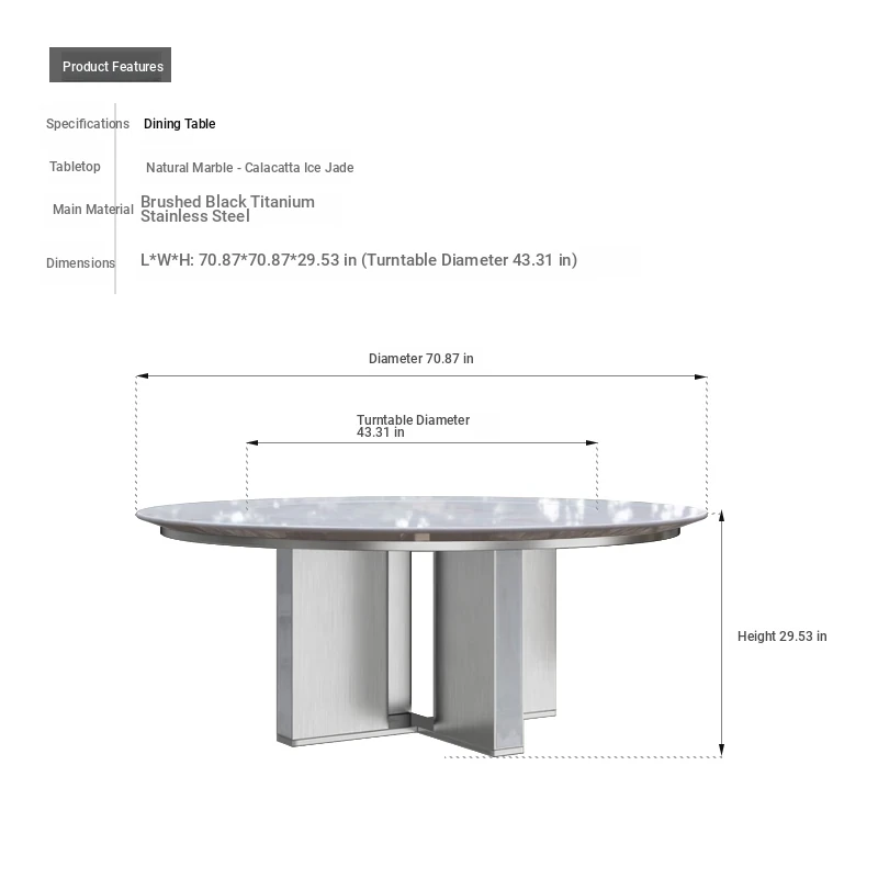 Luxury Round Dining Table with Embedded Turntable - Italian Modern Design in Natural Marble for High-End Villas and Home Use