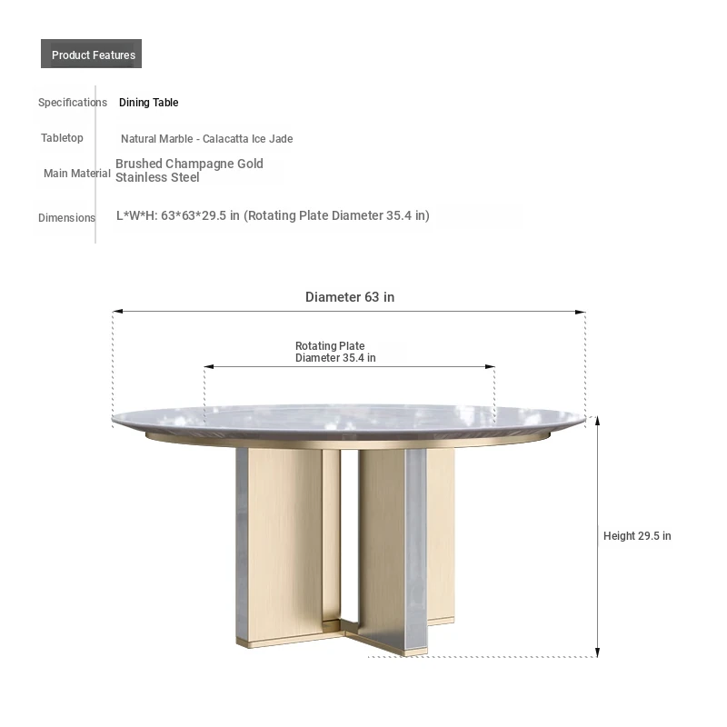 [Luxury stone-Platinum Diamond] 62.99in dining table(Champagne Gold)