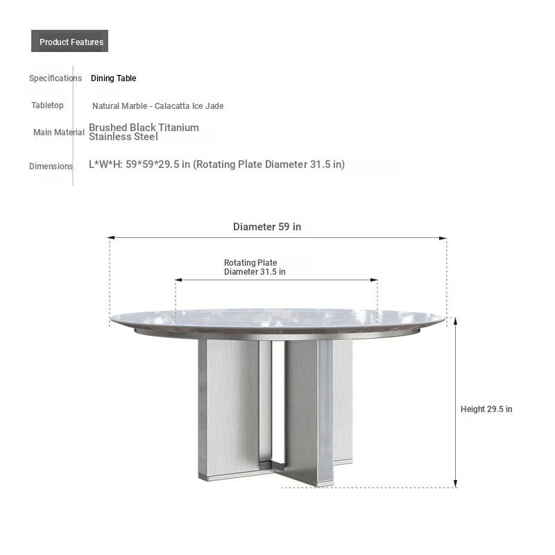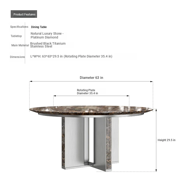[Luxury stone-Platinum Diamond] 62.99in dining table(Black titanium gold)