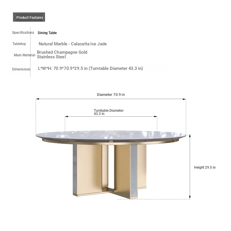 [Luxury Stone-Platinum Diamond] 70.87in Dining Table(Champagne Gold)