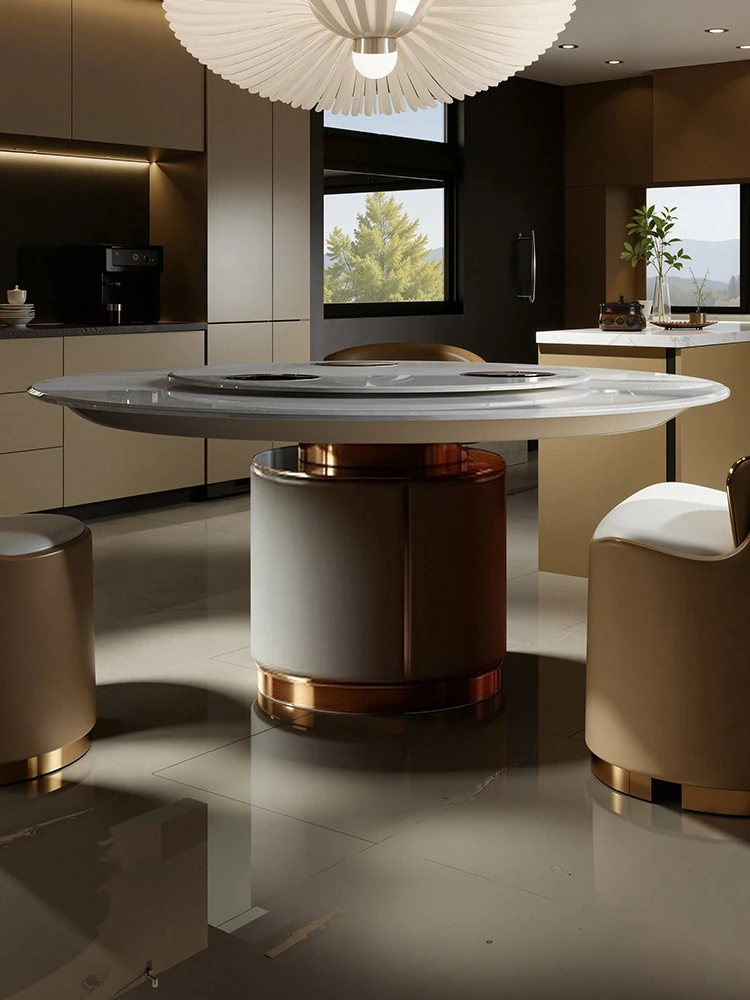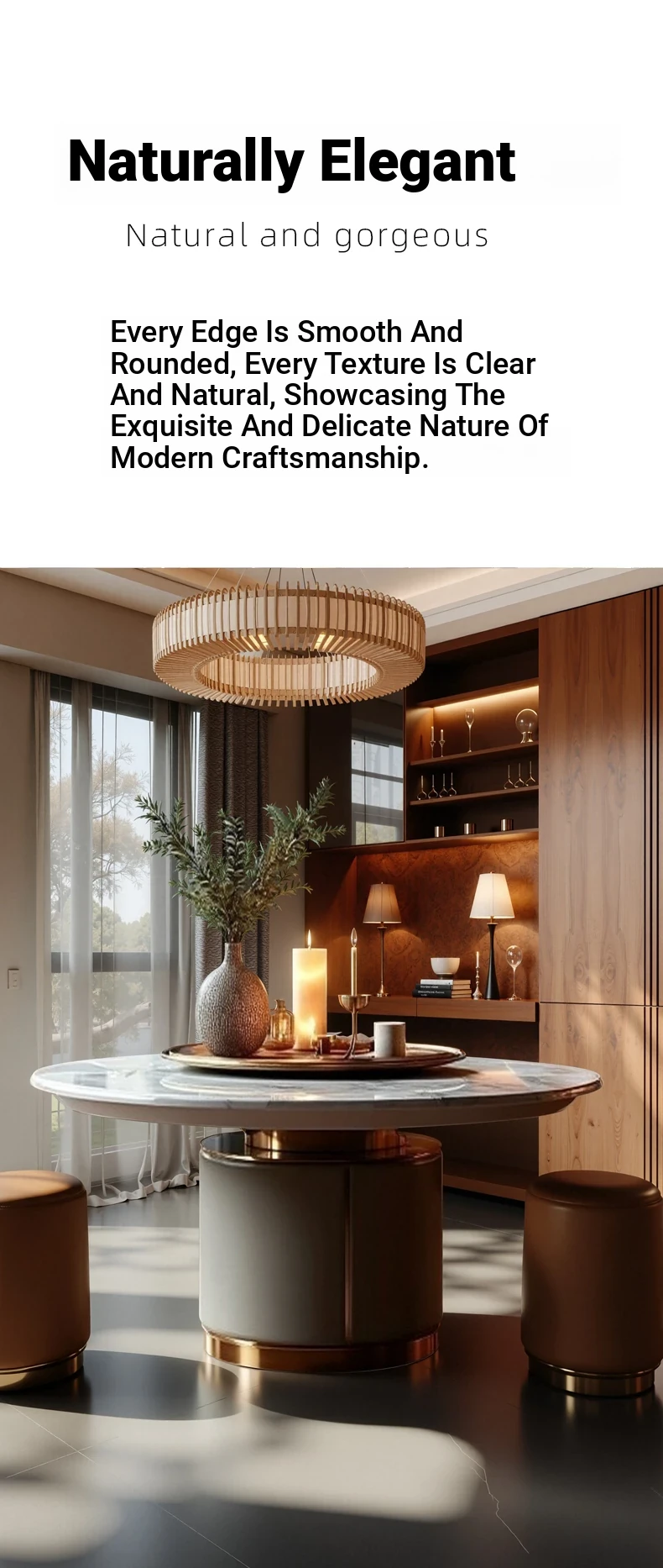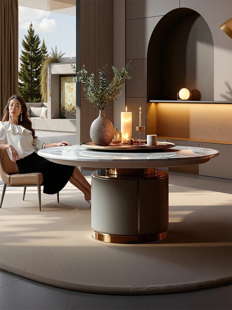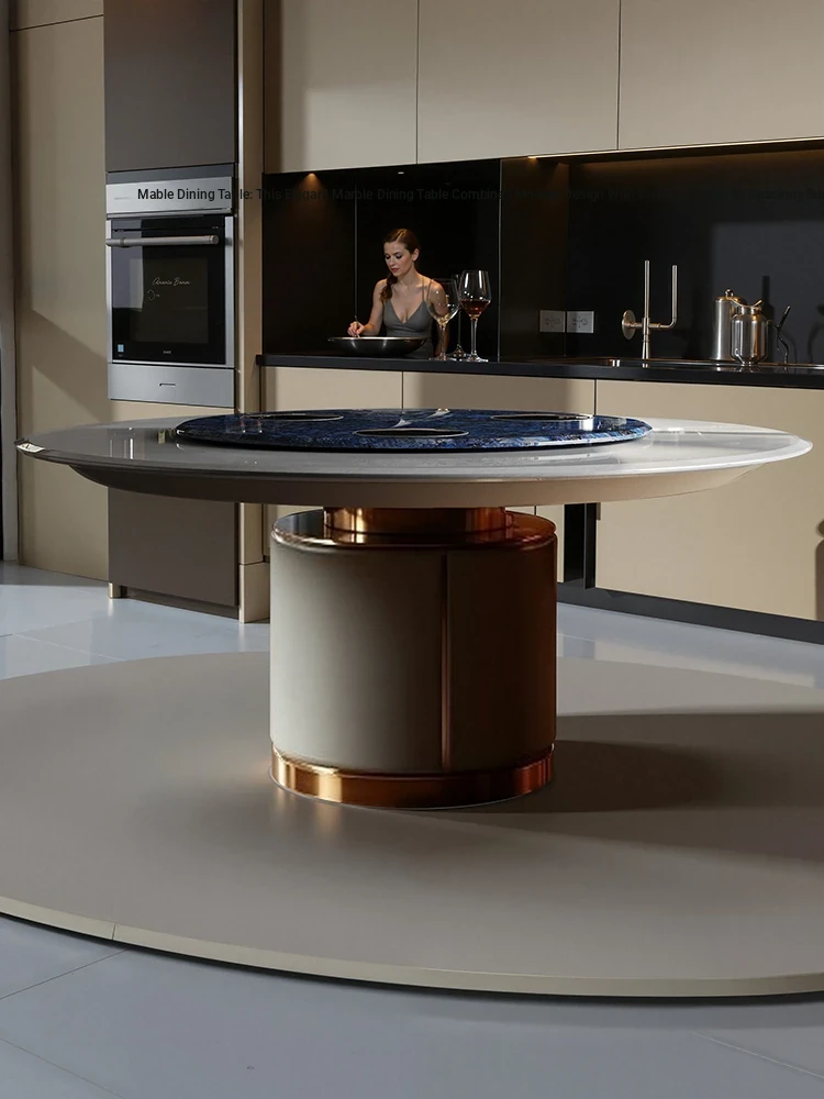 Luxury Round Natural Marble Dining Table with Built-in Rotating Turntable - Perfect for Villa Dining Rooms, Elevate Your Dining Experience with Elegant Design and Premium Quality.