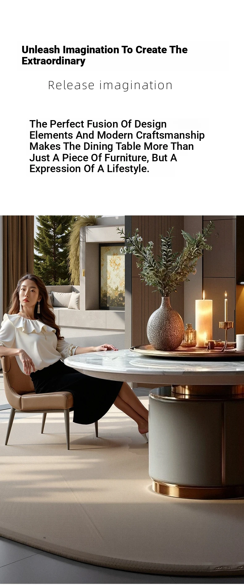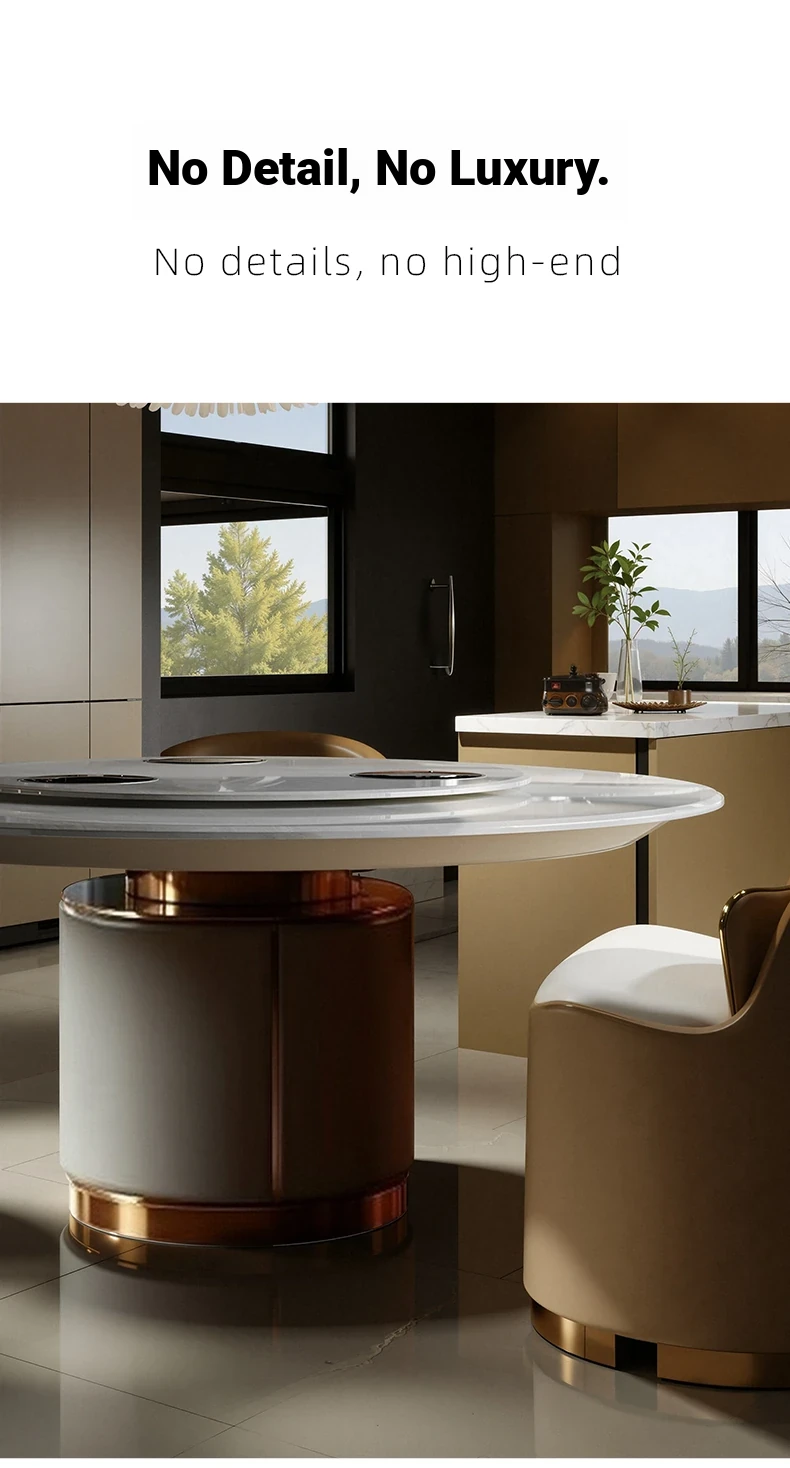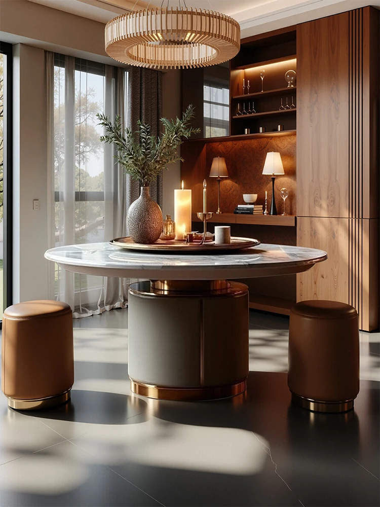 Luxury Round Natural Marble Dining Table with Built-in Rotating Turntable - Perfect for Villa Dining Rooms, Elevate Your Dining Experience with Elegant Design and Premium Quality.