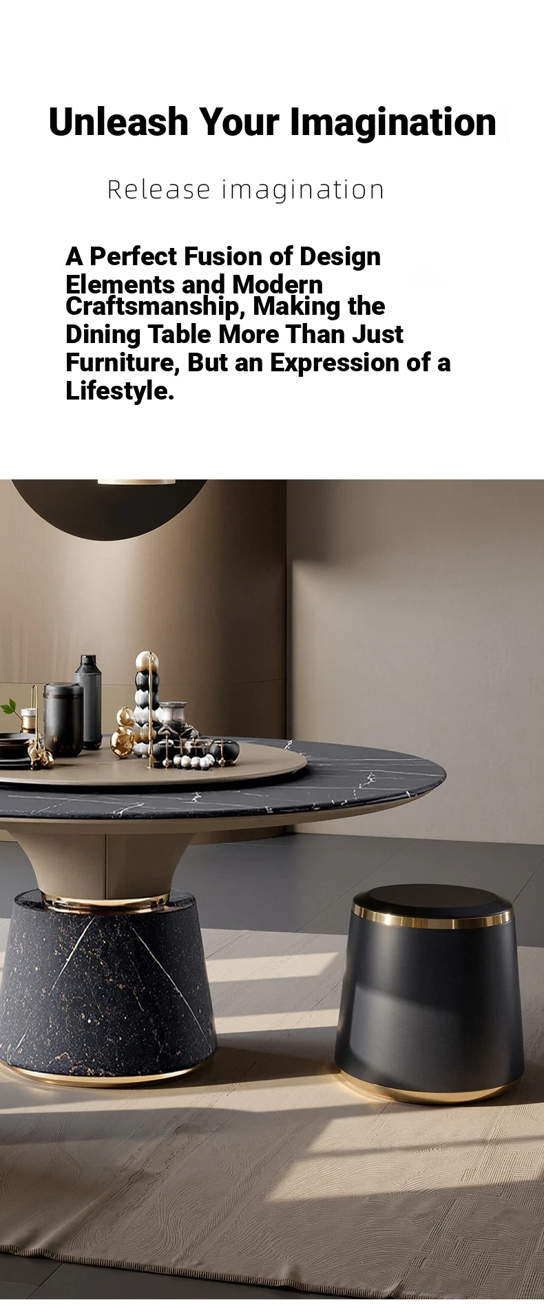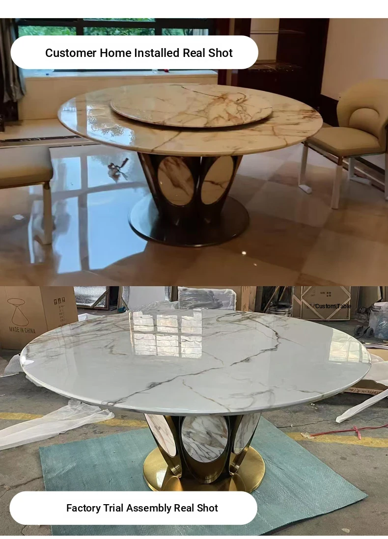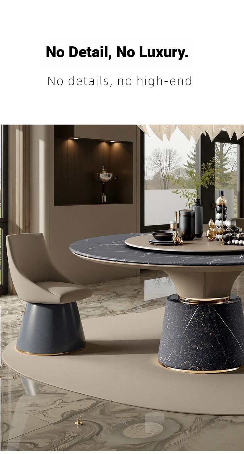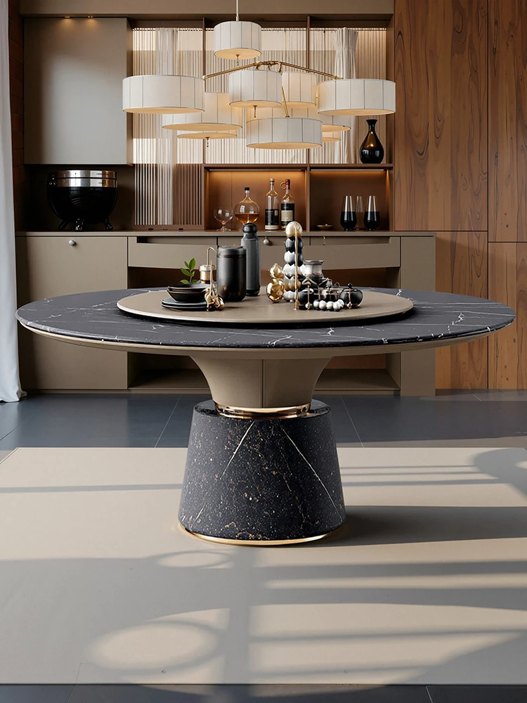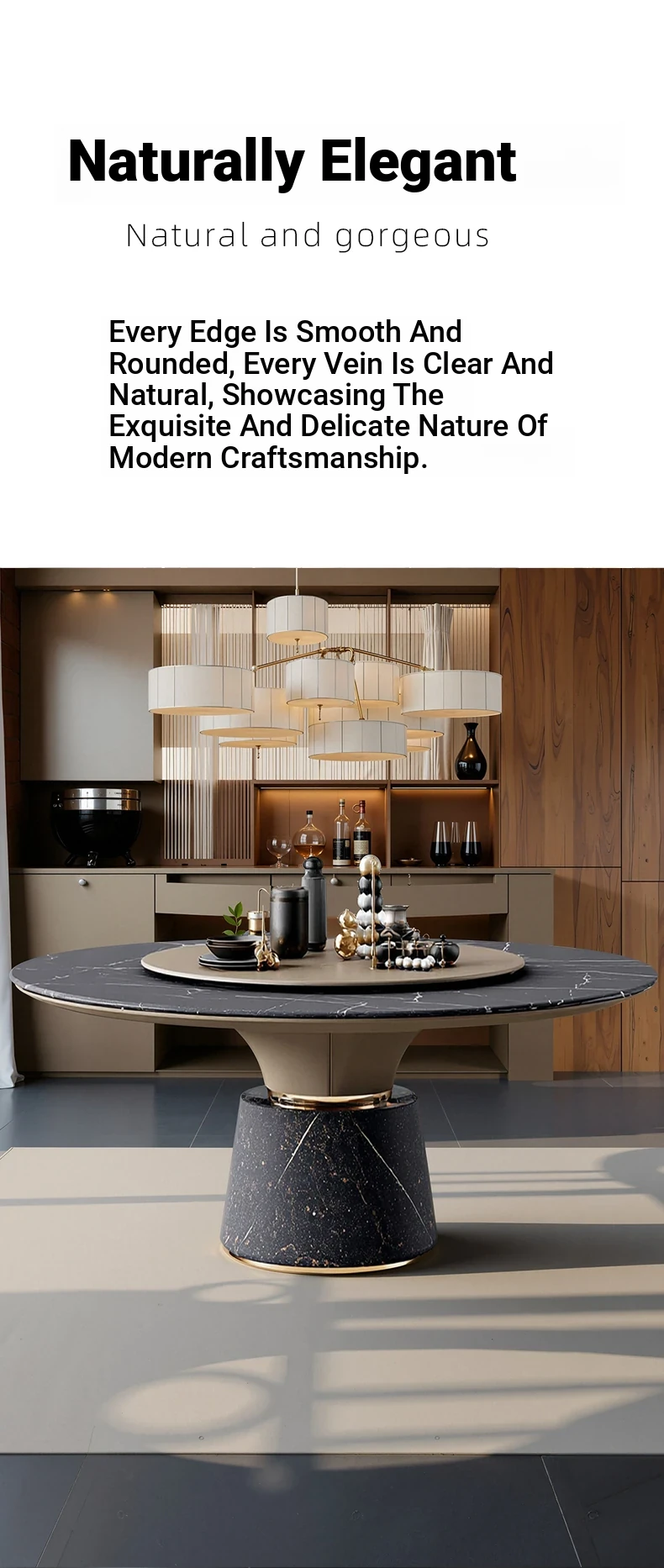 Luxury Round Natural Marble Dining Table with Rotating Lazy Susan - Elegant Design for Villa Restaurants, Perfect for Entertaining Guests and Enhancing Dining Experience