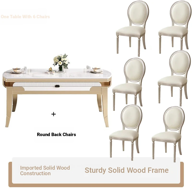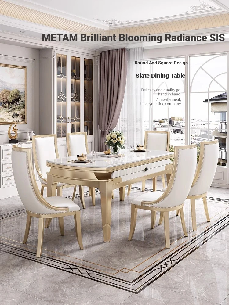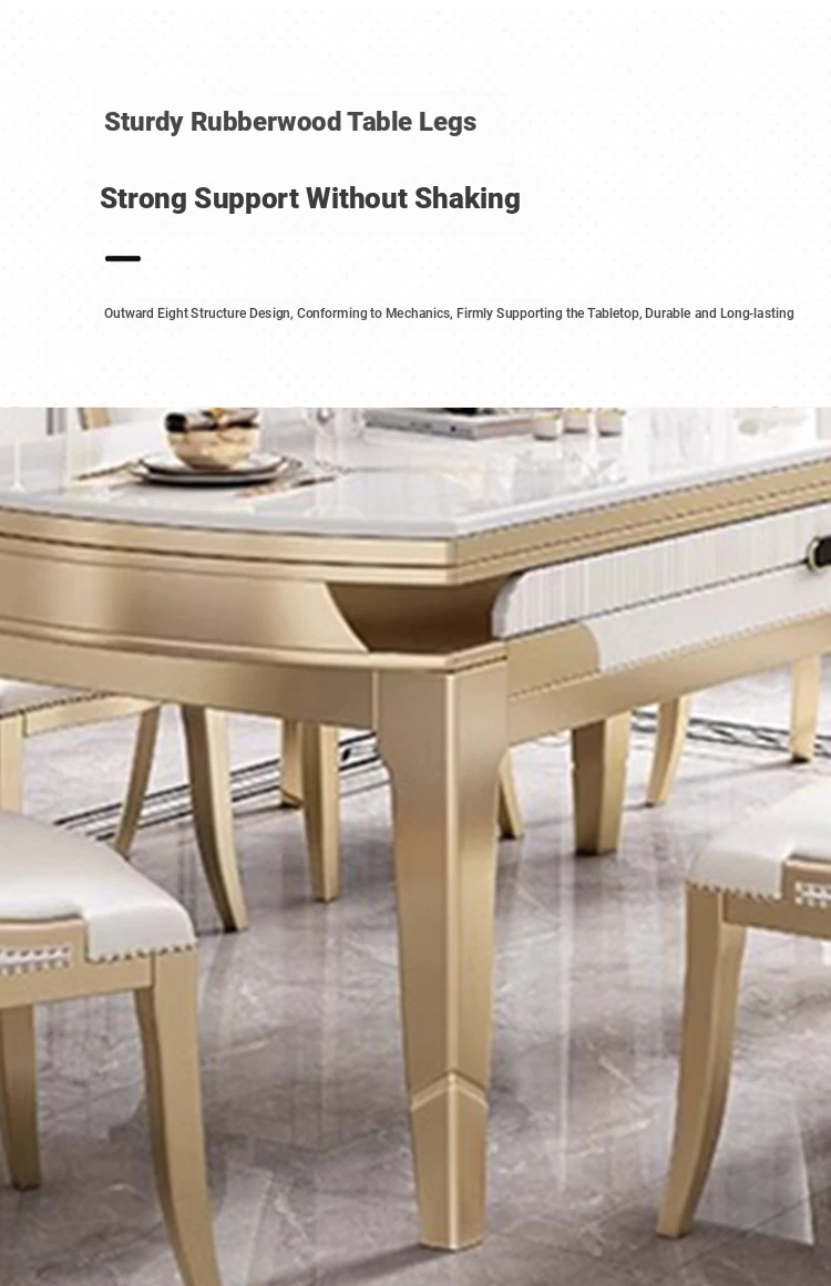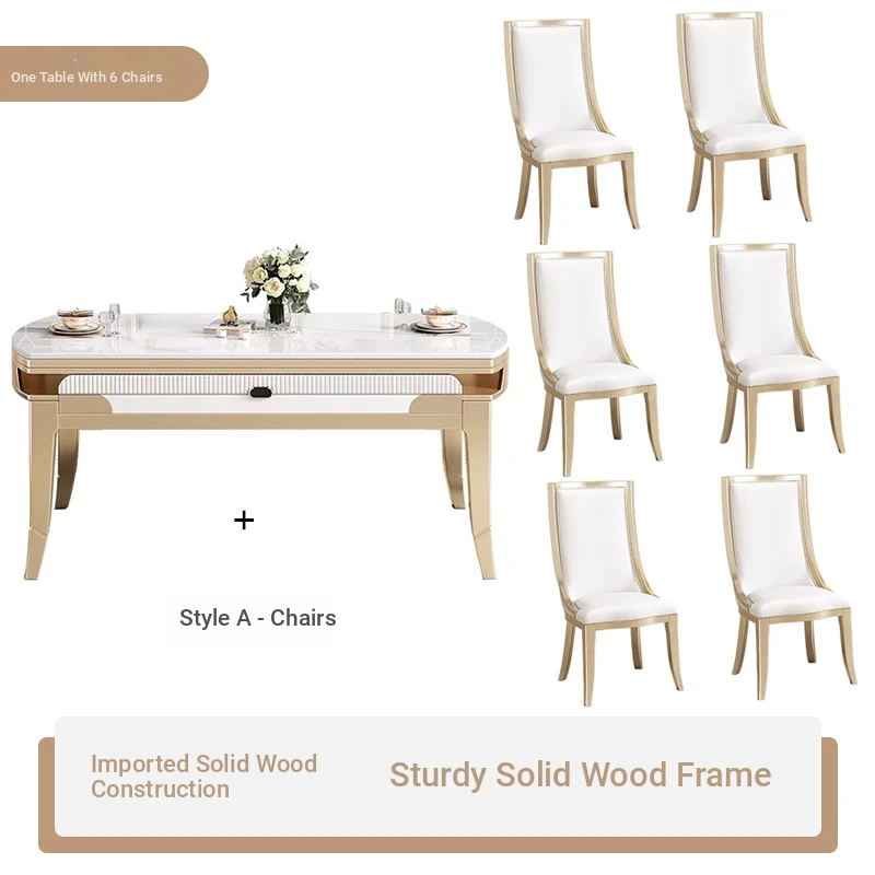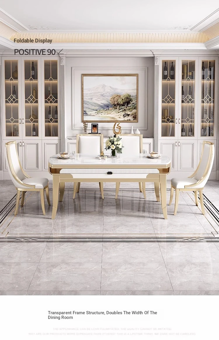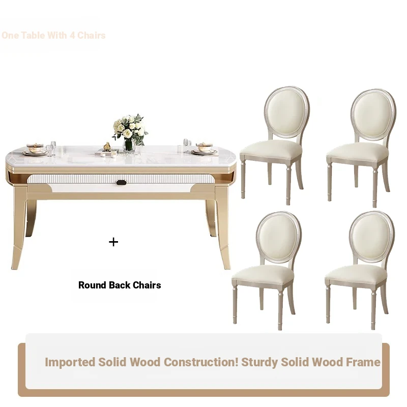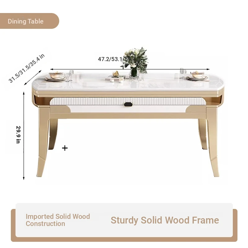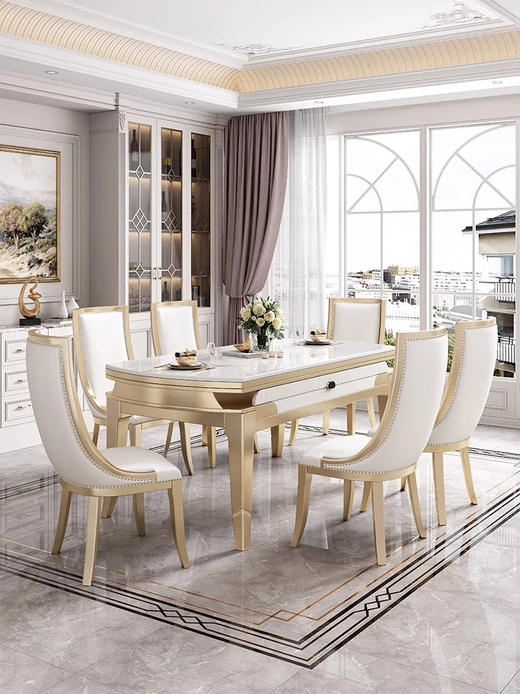 Modern American Luxury Solid Wood Folding Dining Table with Stone Top - Chic French Style Dining Set for a Minimalist Restaurant - Perfect for Small Spaces
