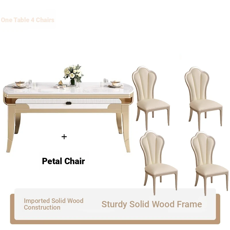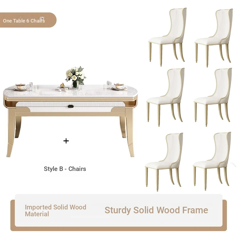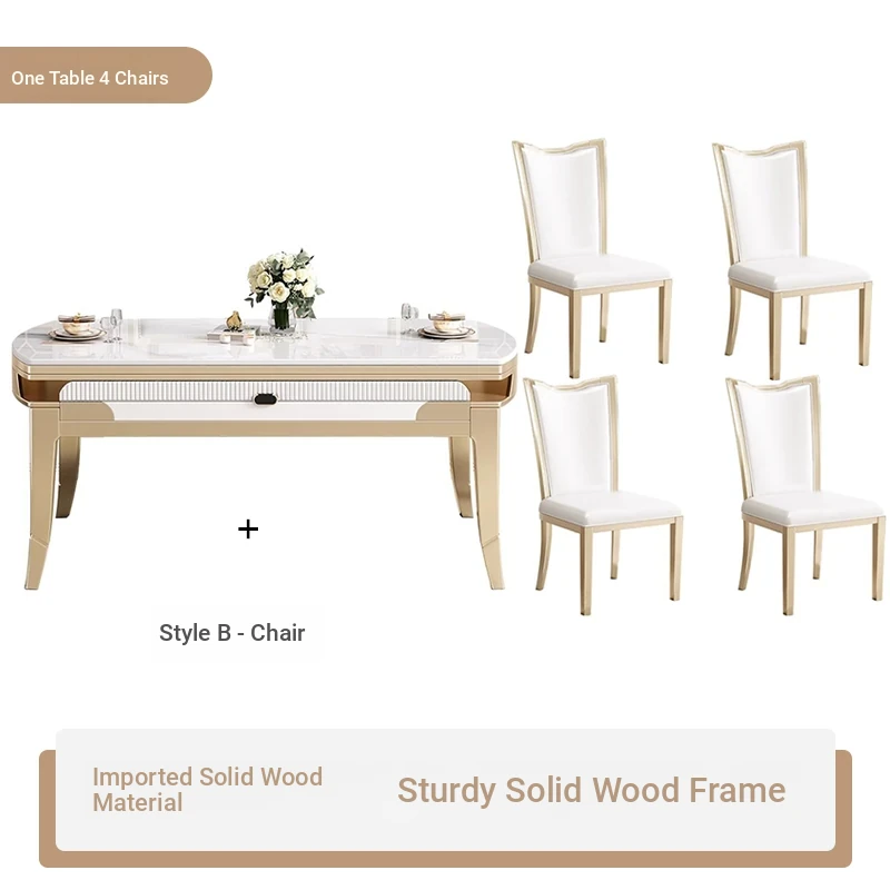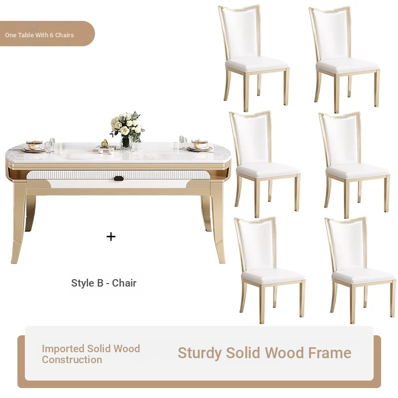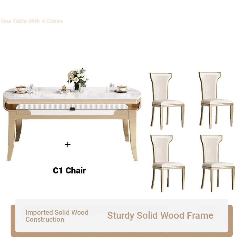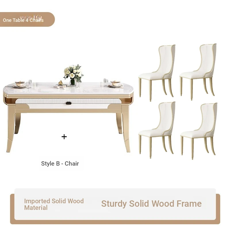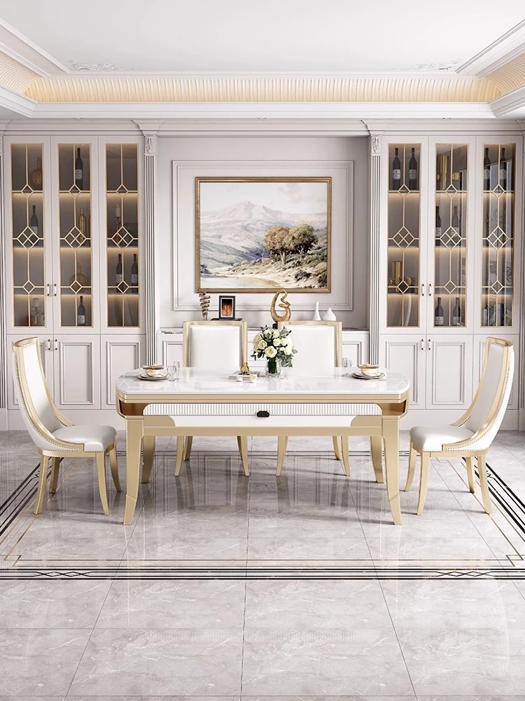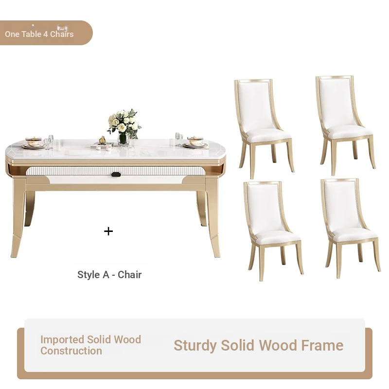 Modern American Luxury Solid Wood Folding Dining Table with Stone Top - Chic French Style Dining Set for a Minimalist Restaurant - Perfect for Small Spaces