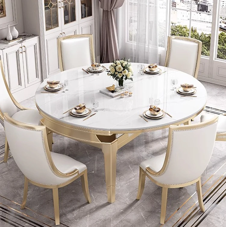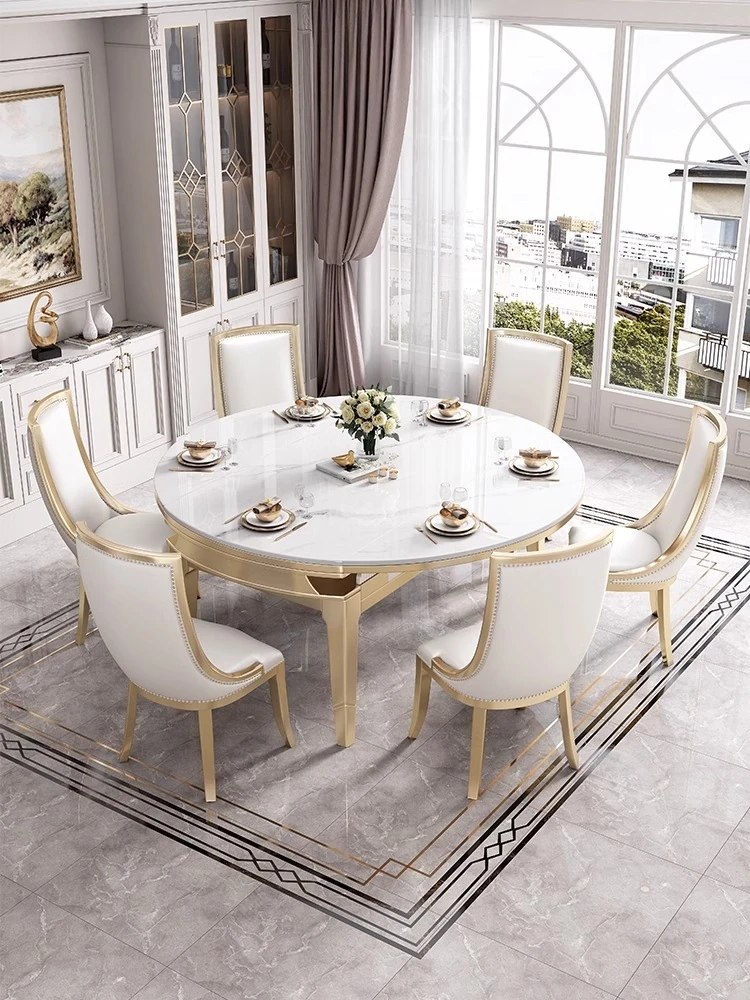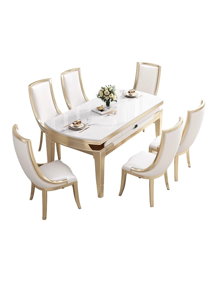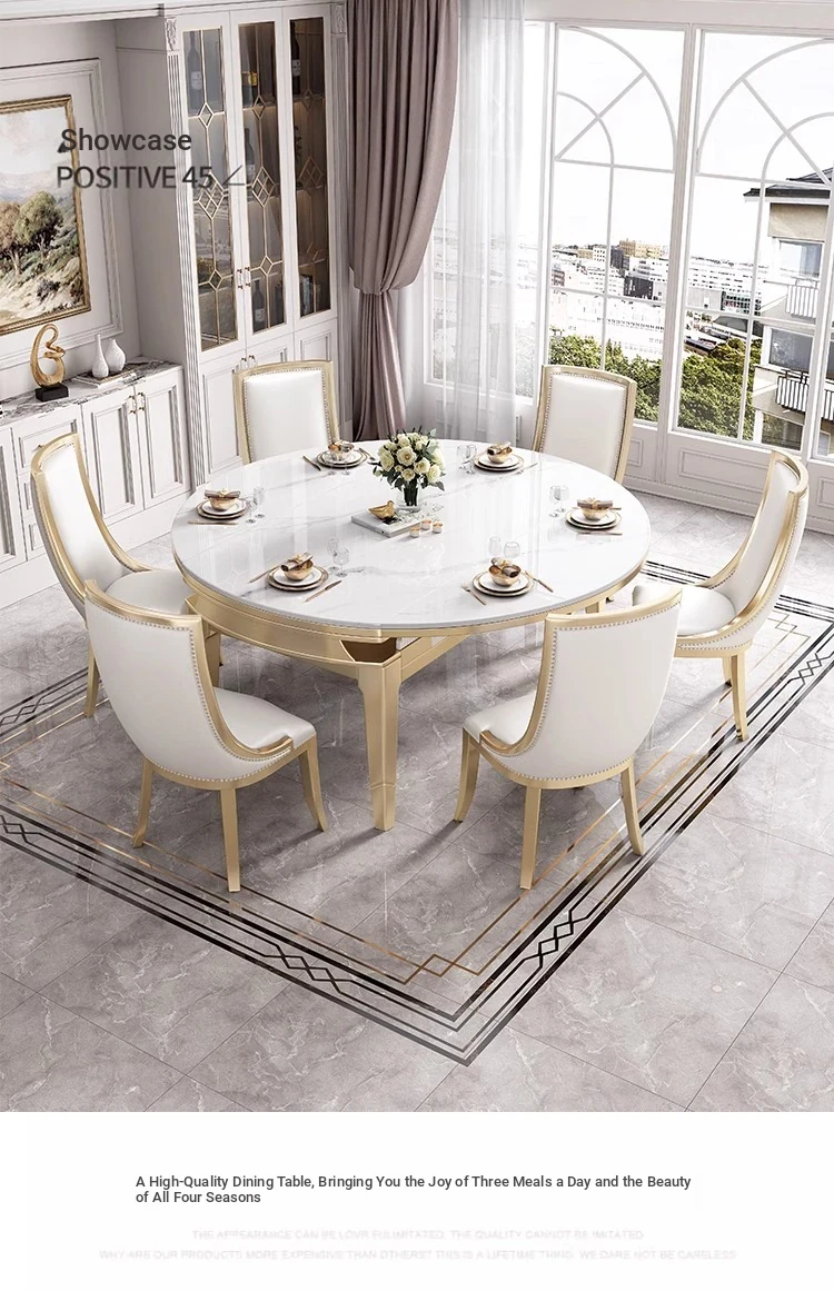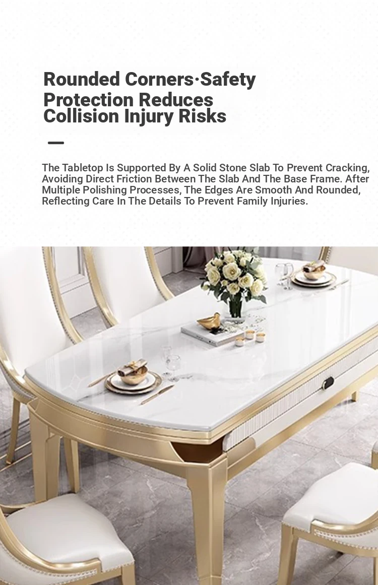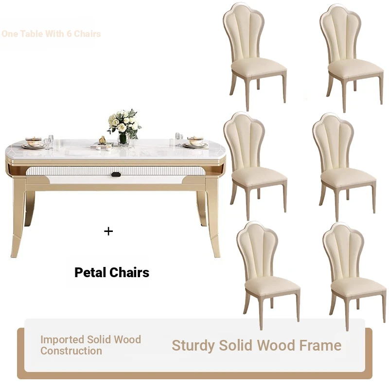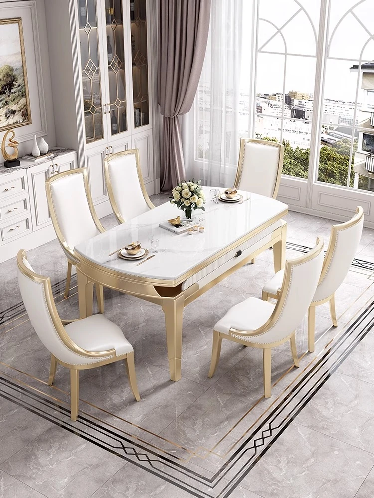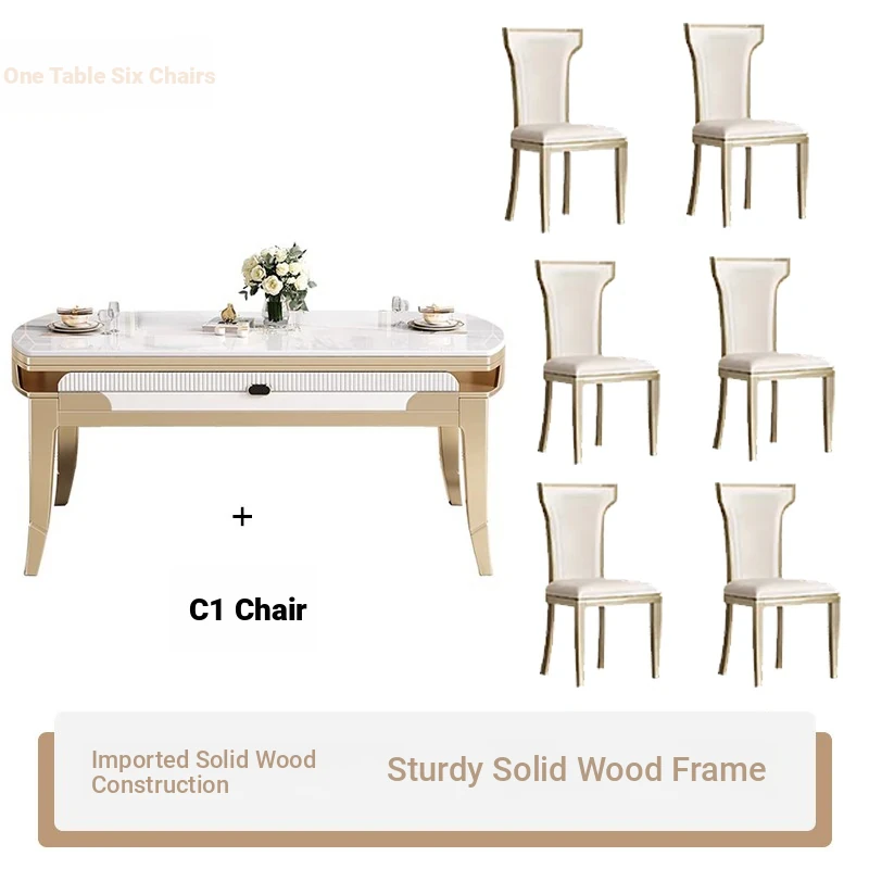 Modern American Luxury Solid Wood Folding Dining Table with Stone Top - Chic French Style Dining Set for a Minimalist Restaurant - Perfect for Small Spaces