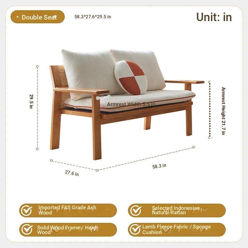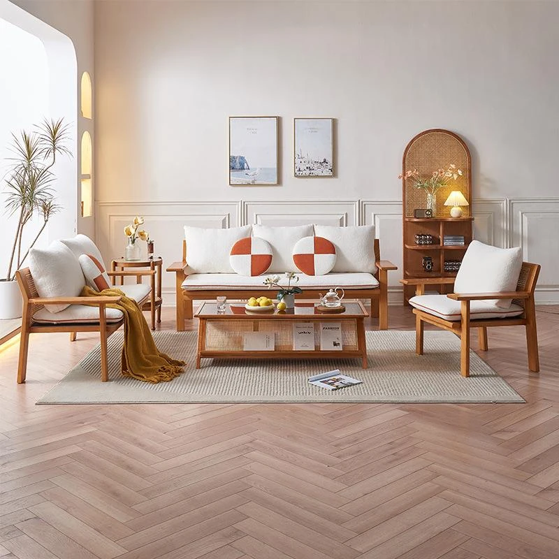 Modern Chinese Style Solid Wood Sofa Set - Versatile Winter/Summer Use - Minimalist Ash Wood and Rattan Sofa with Coffee Table - Perfect for Hotels and Guesthouses