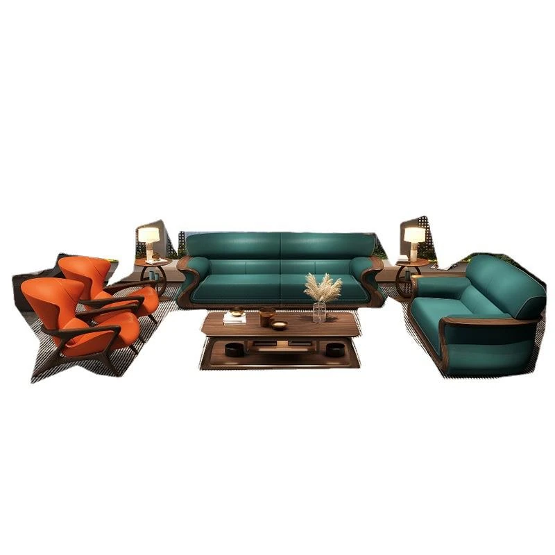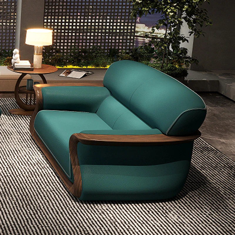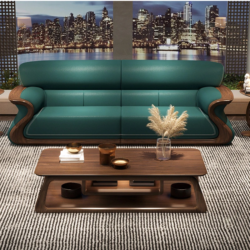 Modern Ebony Wood Combination Sofa - Luxurious Leather Living Room Furniture with Solid Wood Frame and Soft Seating. Perfect for Elevating Your Home Decor!