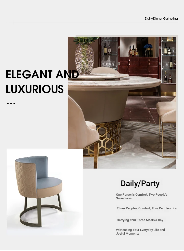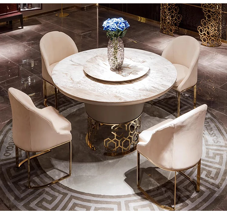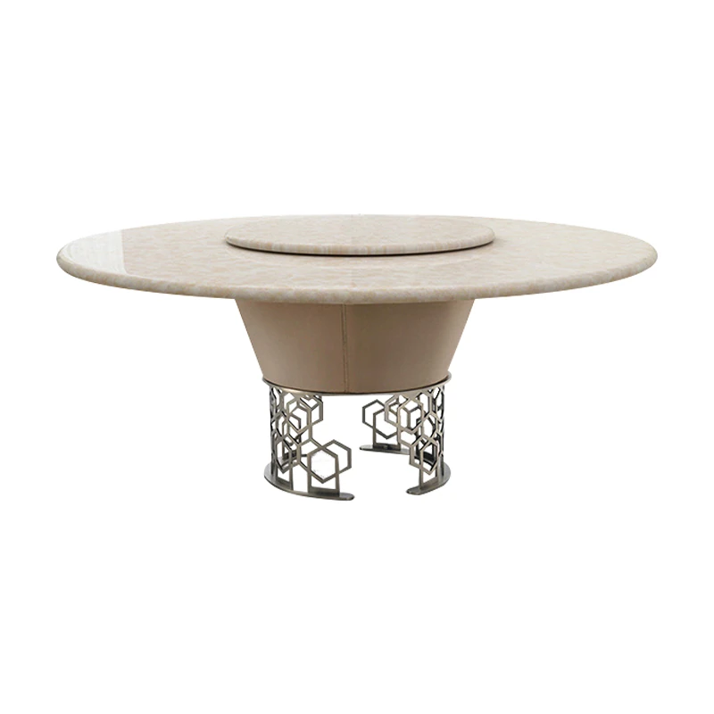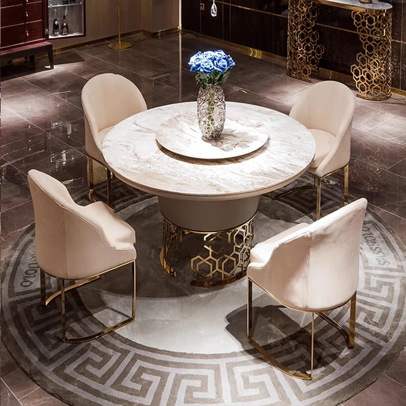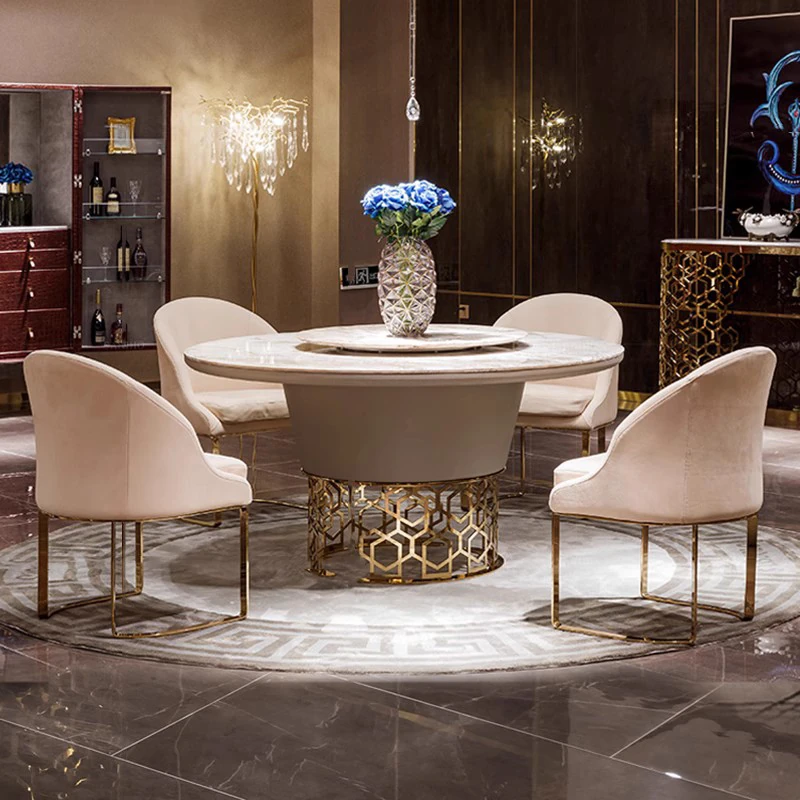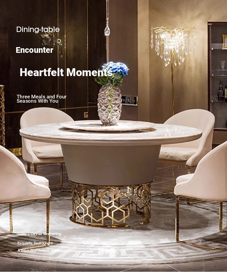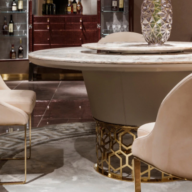 Modern Italian Luxury Round Marble Dining Table with Stainless Steel Base - Longhi Style Elegant Furniture for Dining Room