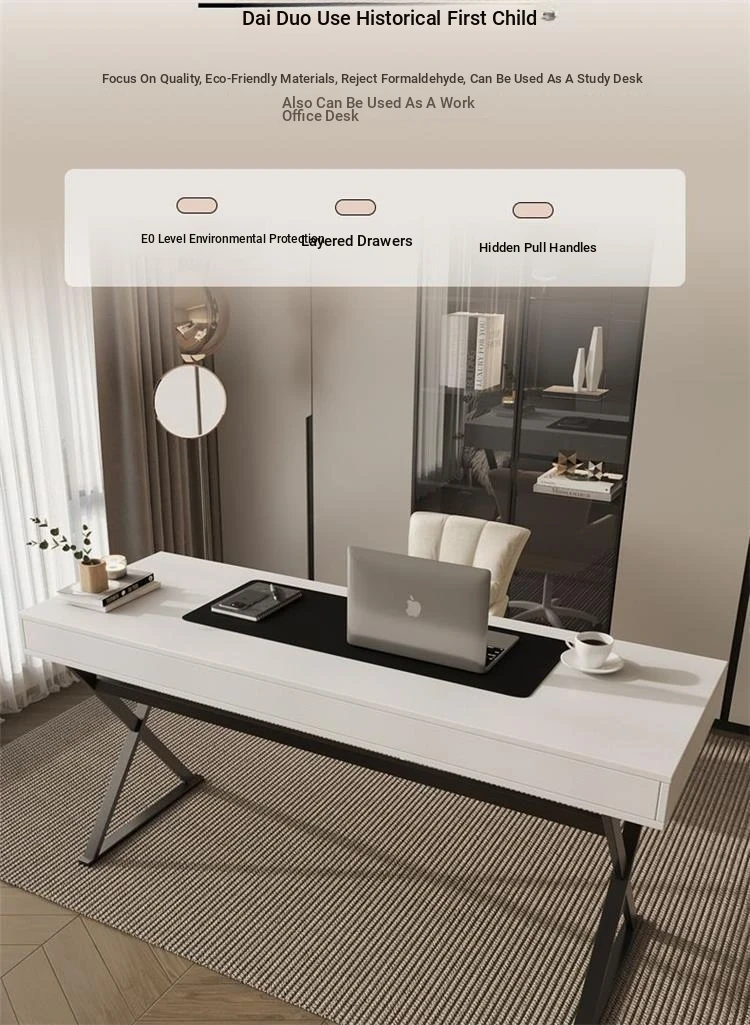Modern Italian Style Writing Desk - Scandinavian Minimalist Home Office Table for Bedroom and Study - Simple Computer Desk for Work and Learning