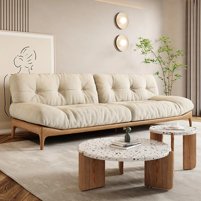 Modern Minimalist Cloud Sofa for Small Living Rooms - Removable and Washable, Cozy Fabric with a Stylish Wood Frame, Perfect for Contemporary Interiors