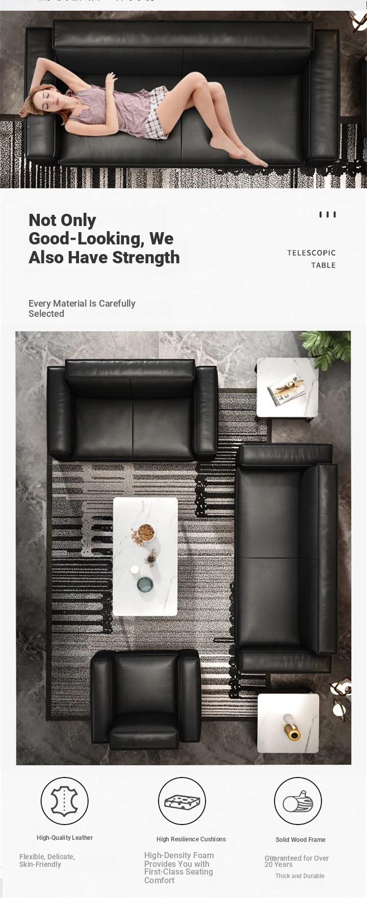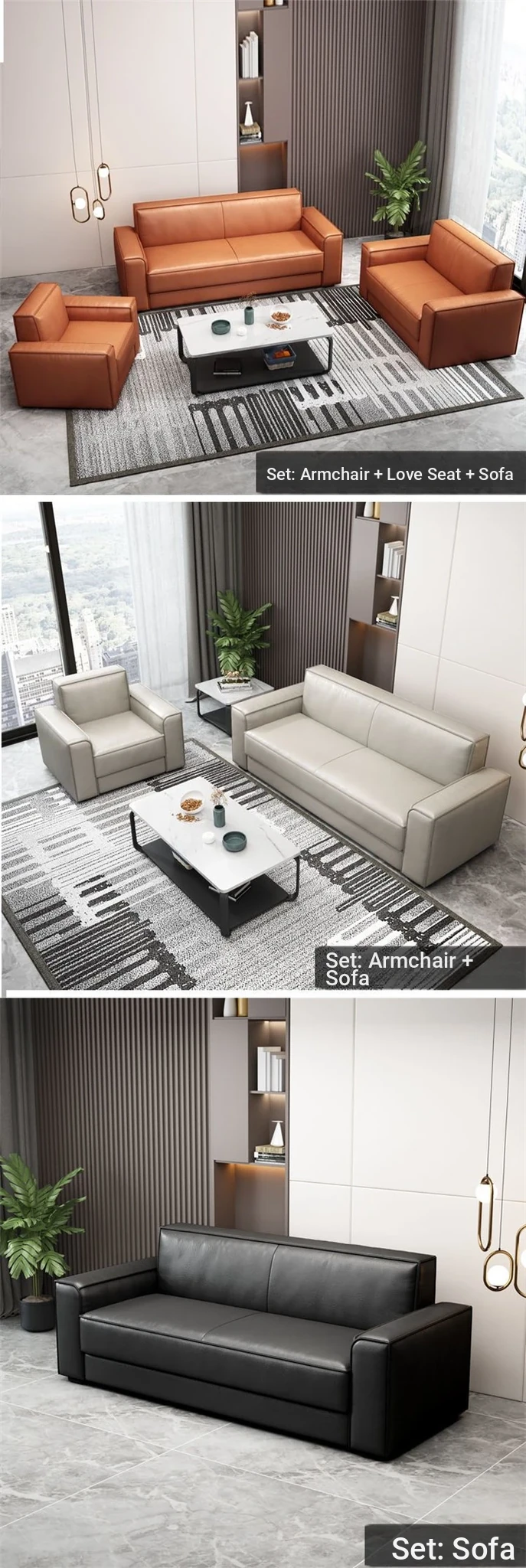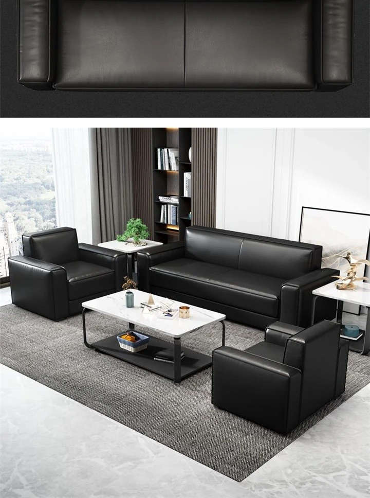 Modern Minimalist Leather Sofa Set for Office - Stylish Reception Seating for Business Meetings - Comfortable Two and Three-Seater Options