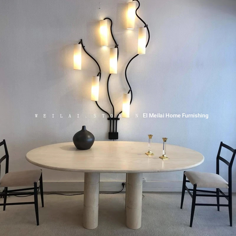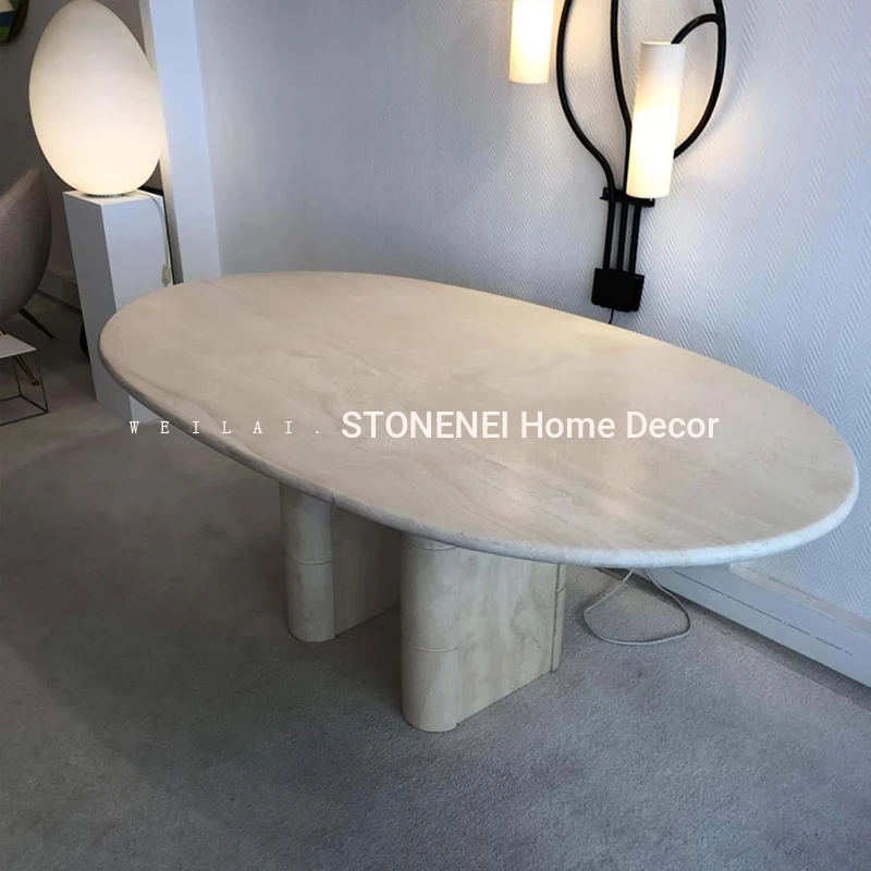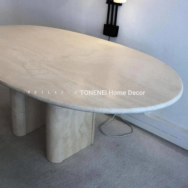 Modern Minimalist Natural Stone Oval Dining Table - Elegant Design for Home, Spacious and Stylish for Family Gatherings, Perfect for Multiple Diners