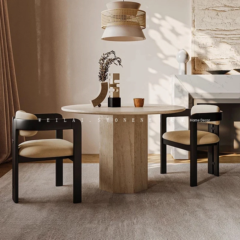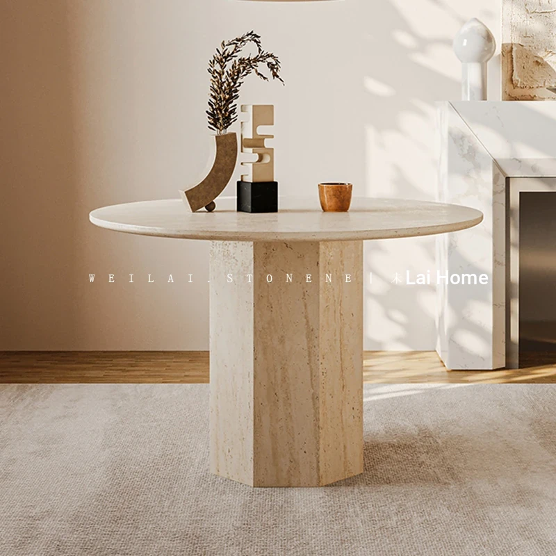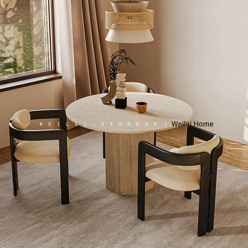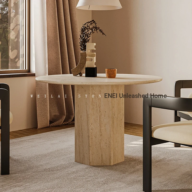 Modern Minimalist Natural Stone Round Dining Table for Small Spaces - Elegant Wabi-Sabi Style for Your Living Room or Home Dining Room