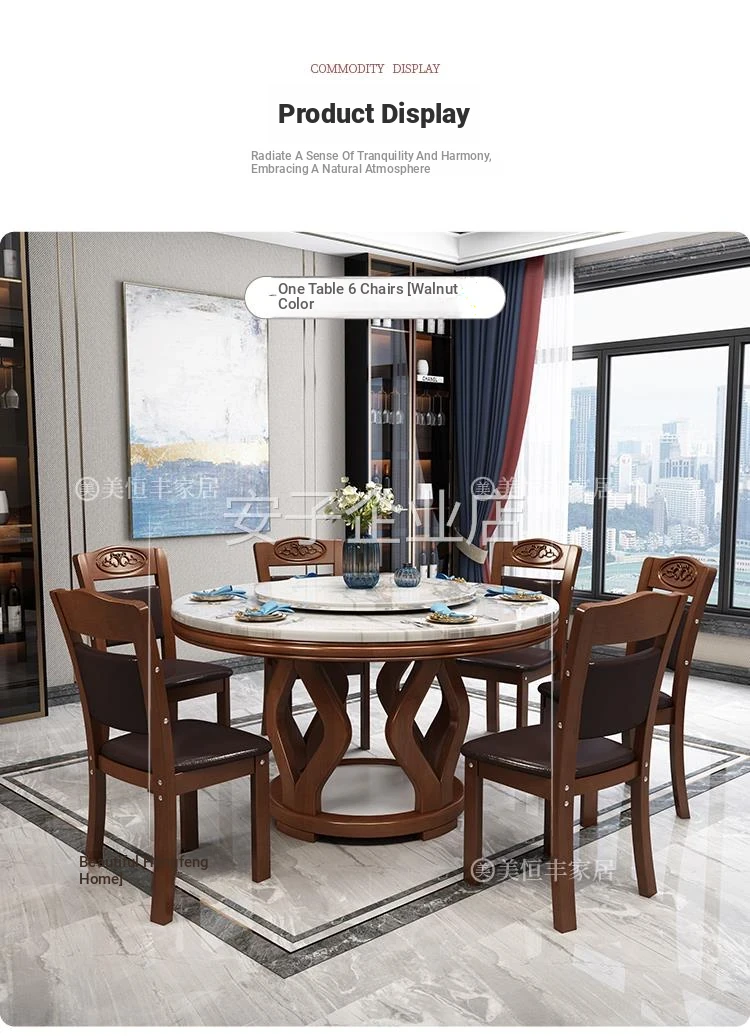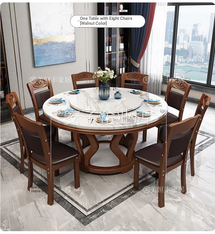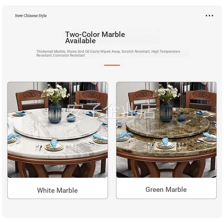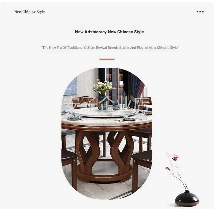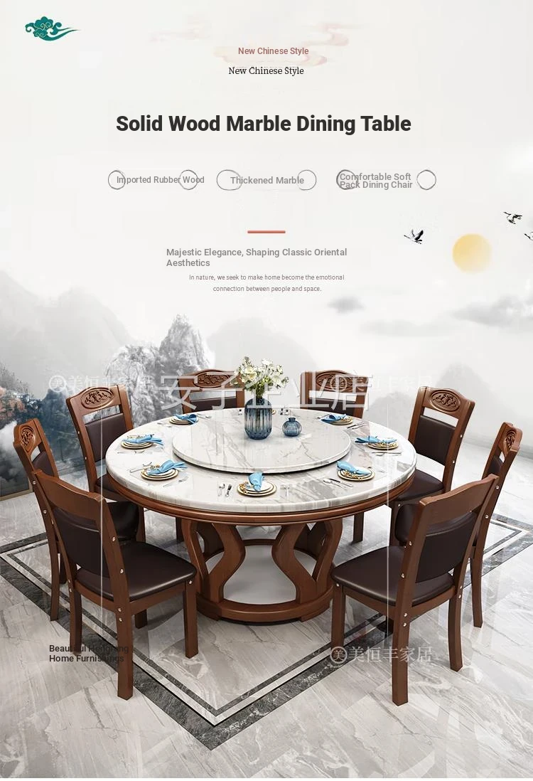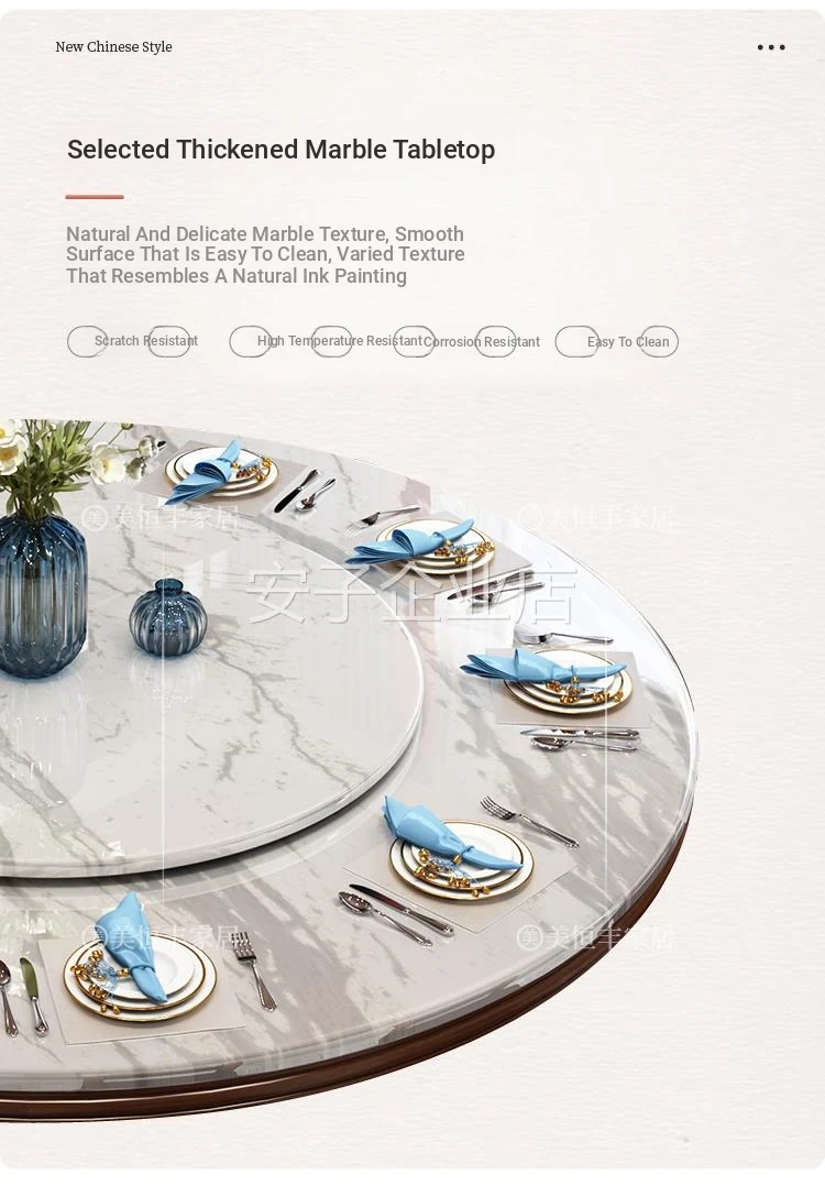 Modern Minimalist New Chinese Style Solid Wood Marble Dining Table and Chair Set for Small Homes - Round Dining Table with Rock Slab Top