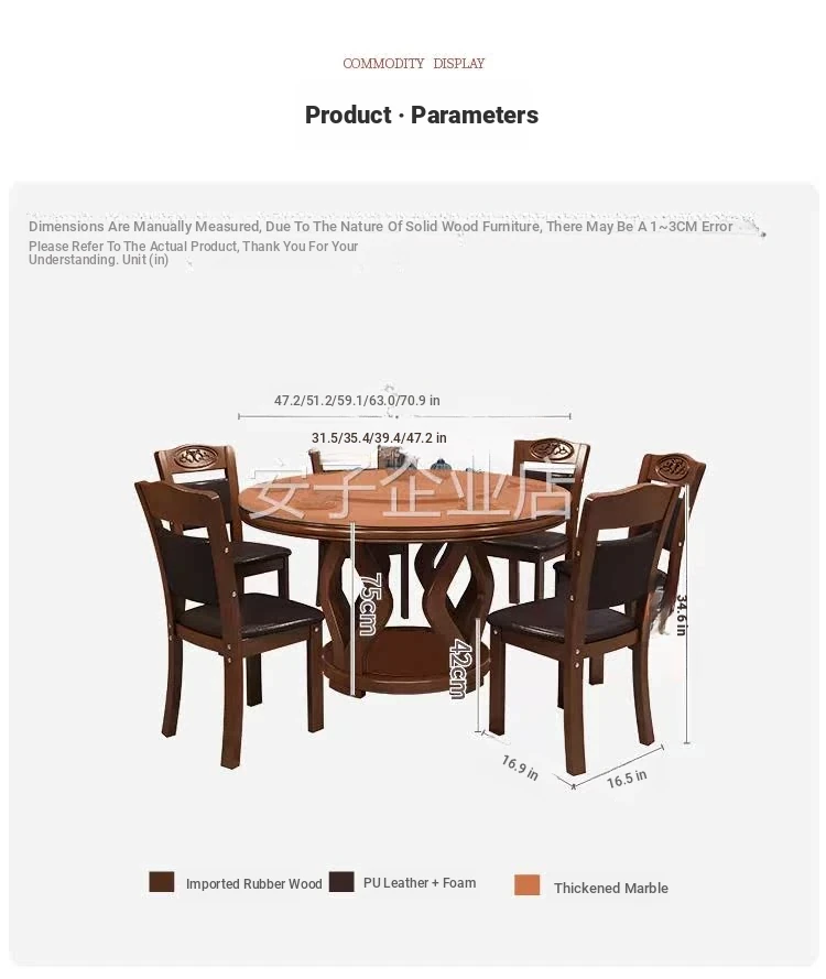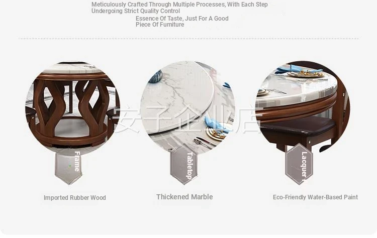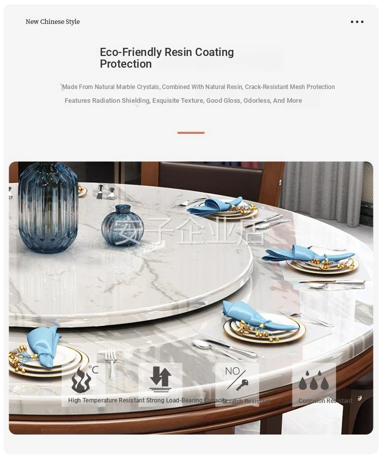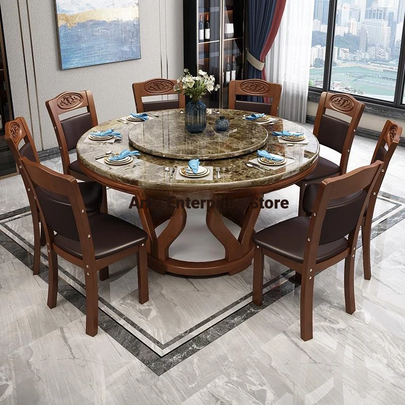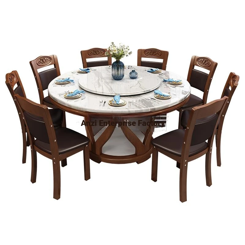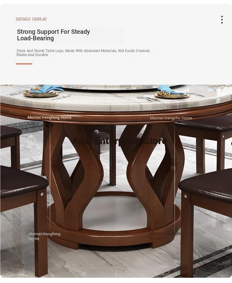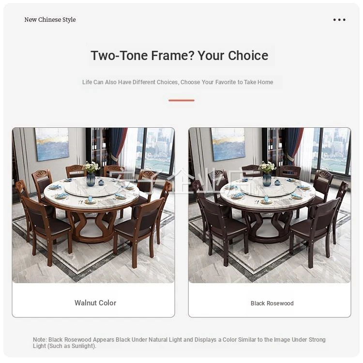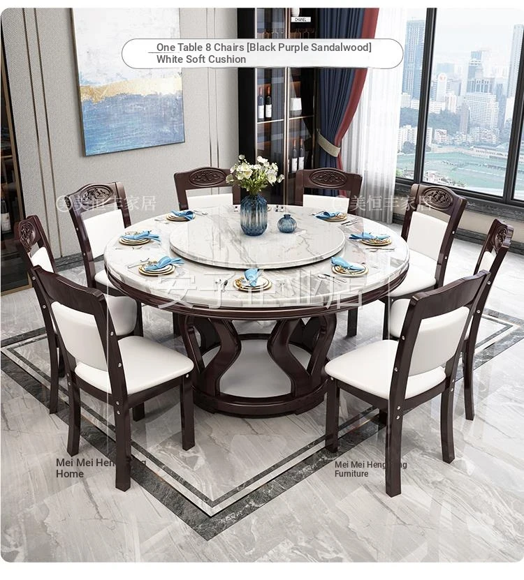 Modern Minimalist New Chinese Style Solid Wood Marble Dining Table and Chair Set for Small Homes - Round Dining Table with Rock Slab Top